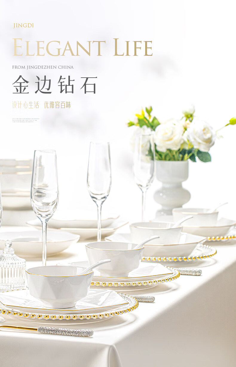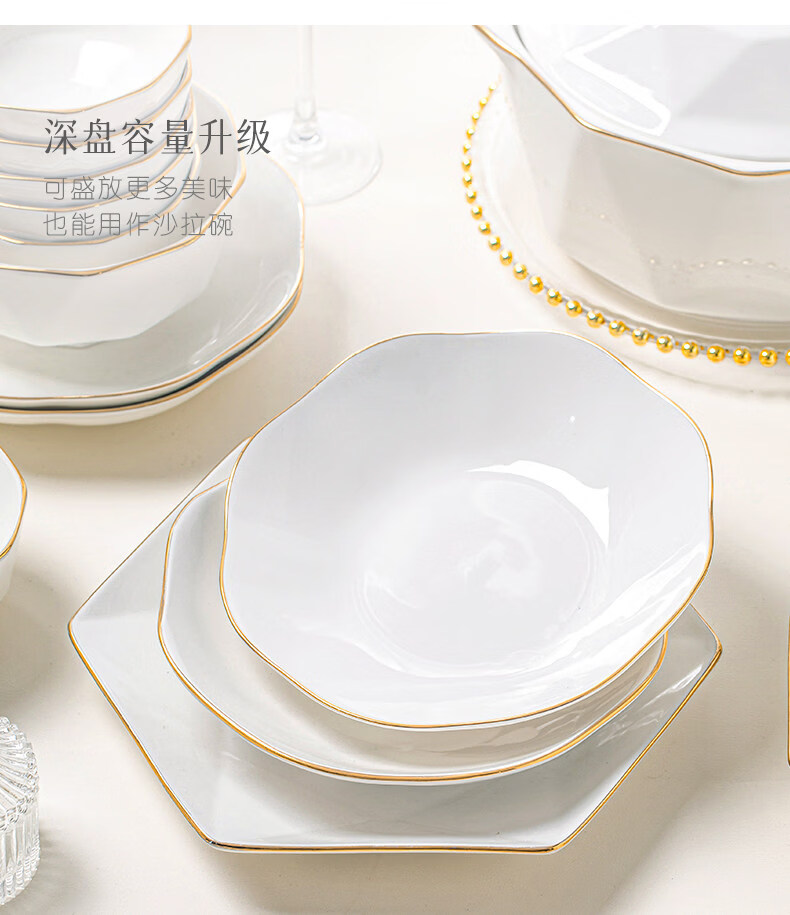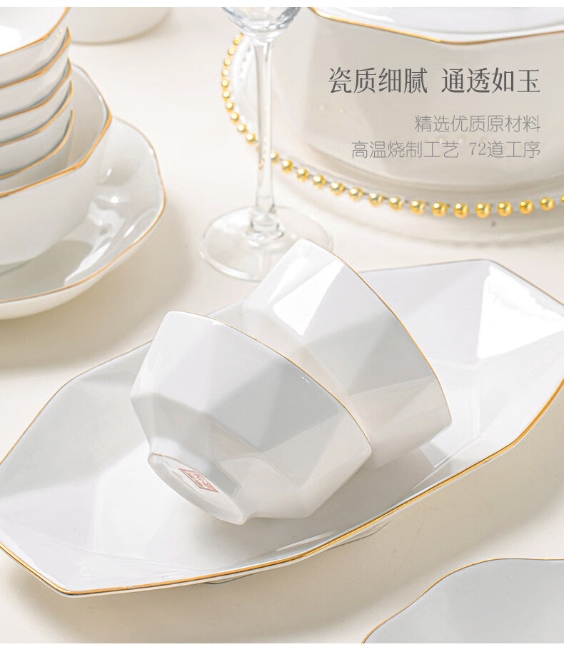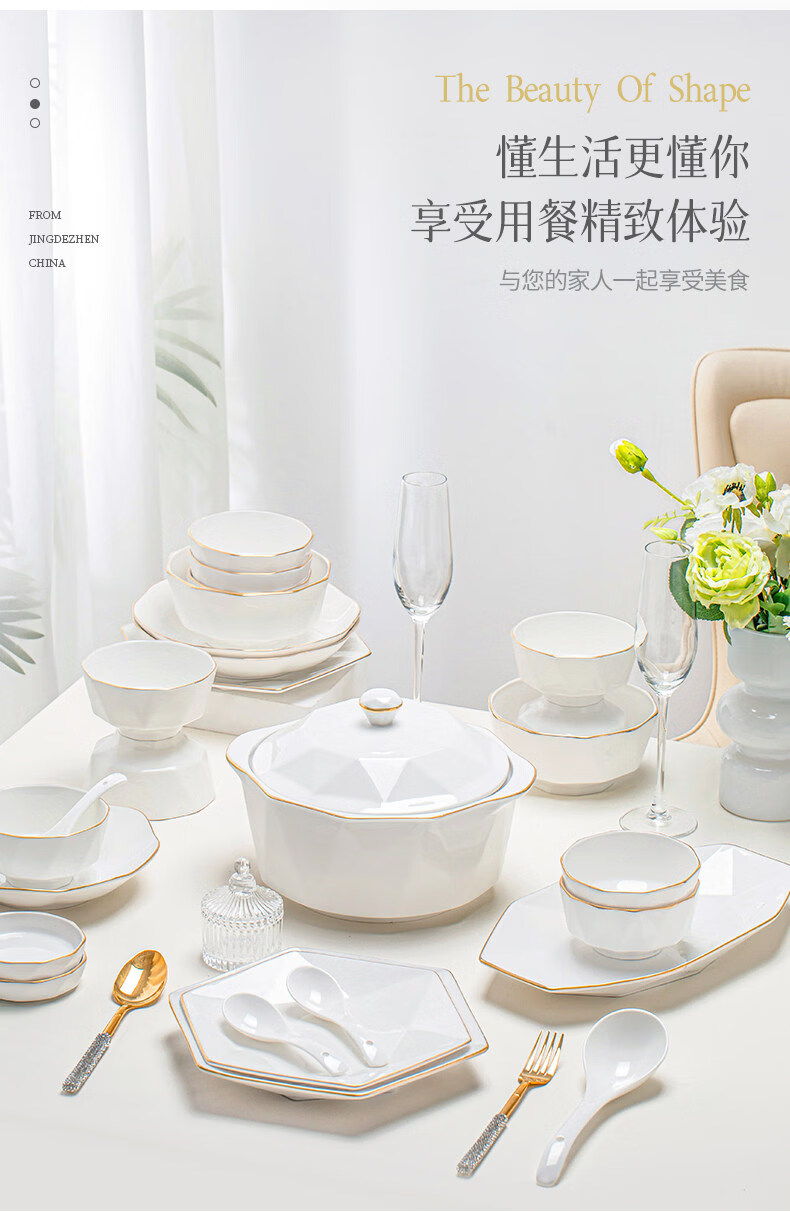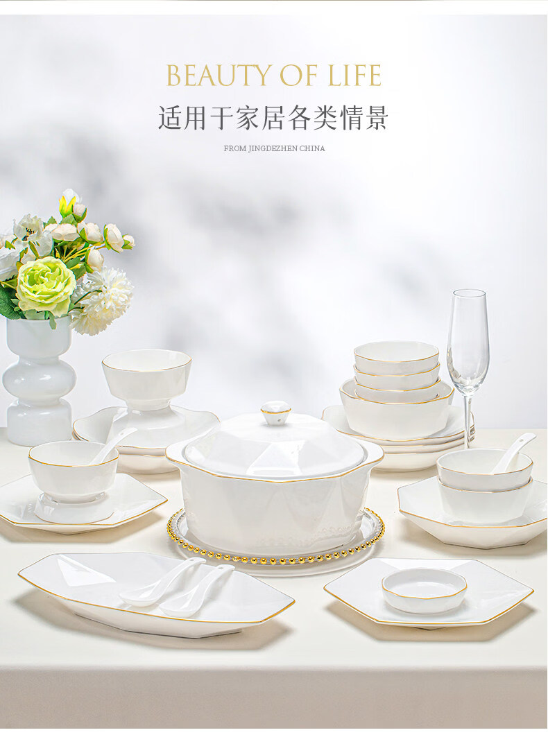 精缔陶瓷JINGDI2025新款碗碟套装家用碗筷乔迁高温骨瓷餐具套装景德镇陶瓷碗盘子 【店长推荐】66件升级配大汤碗 66件套