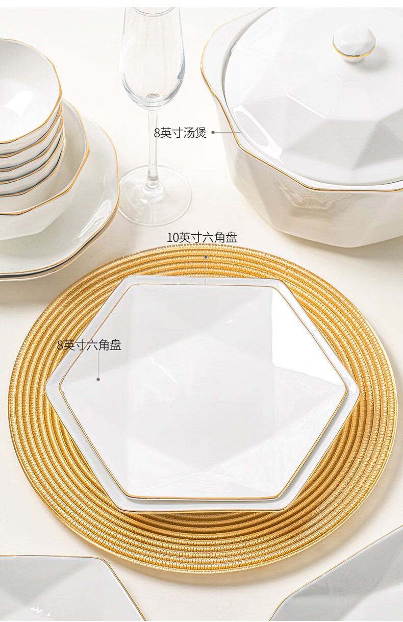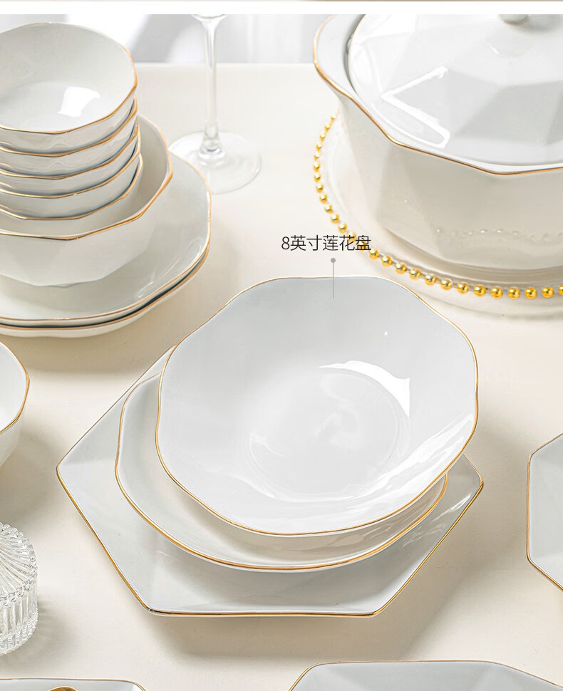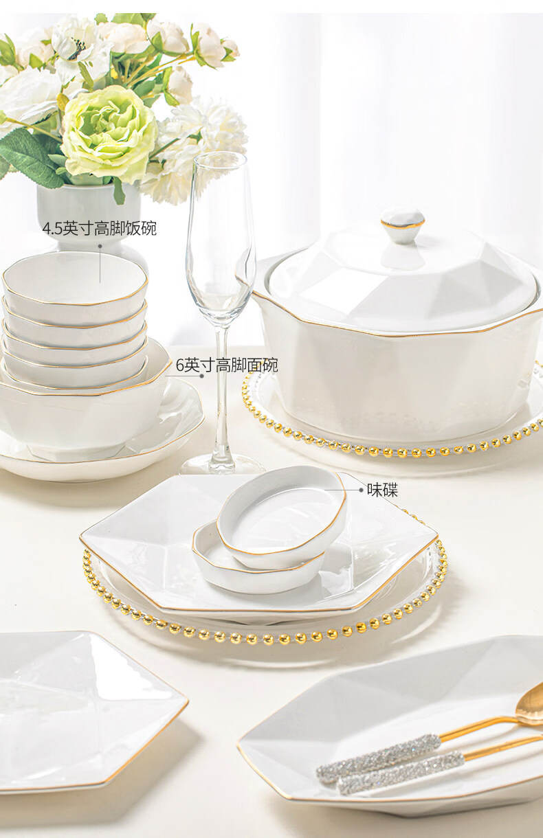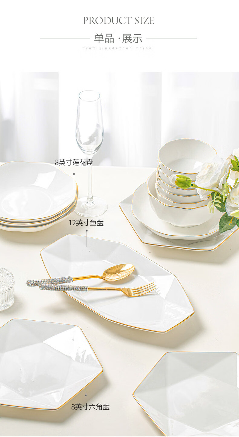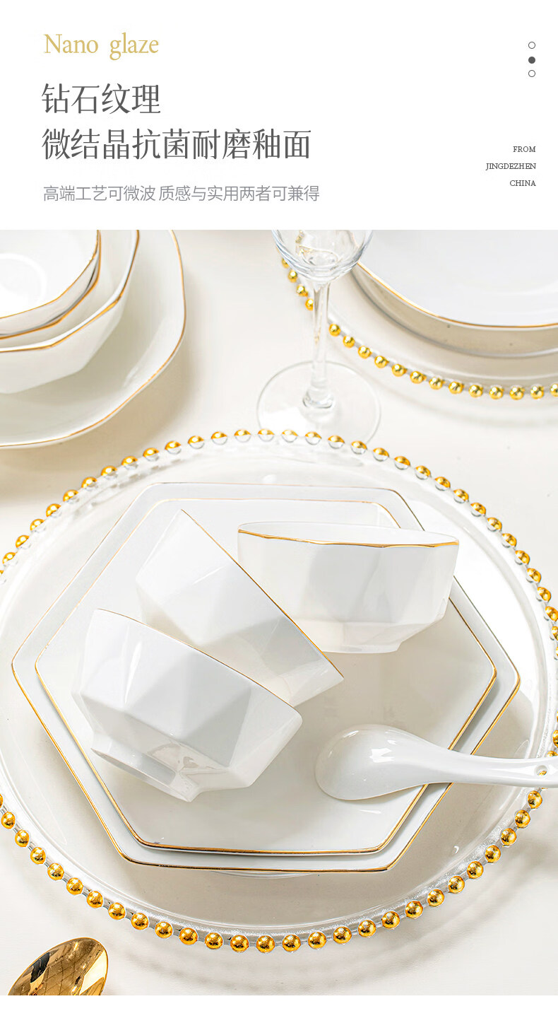 精缔陶瓷JINGDI2025新款碗碟套装家用碗筷乔迁高温骨瓷餐具套装景德镇陶瓷碗盘子 【店长推荐】66件升级配大汤碗 66件套