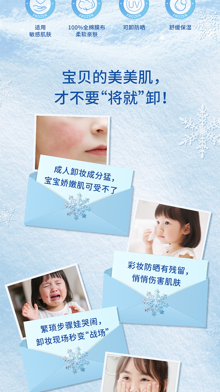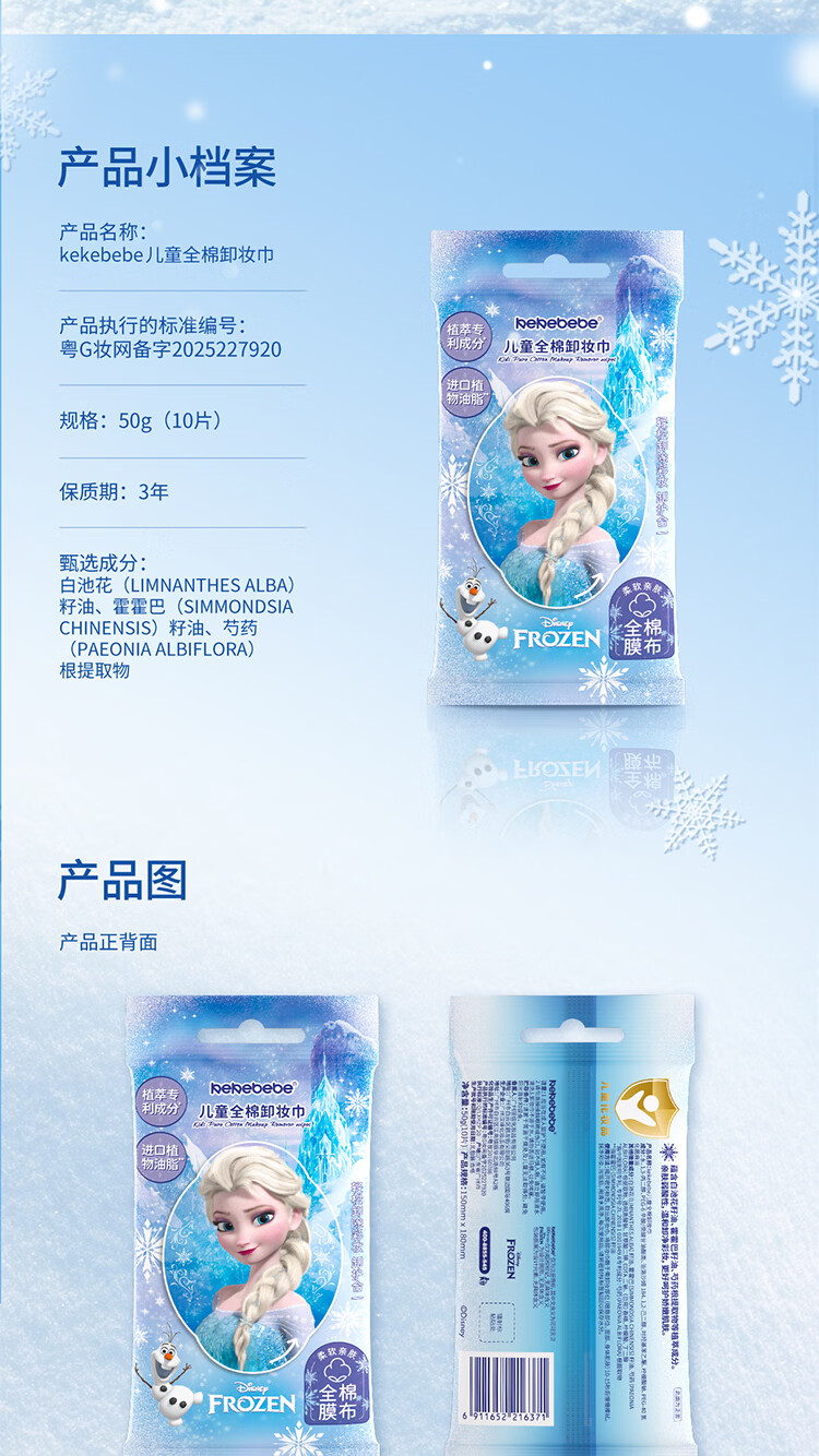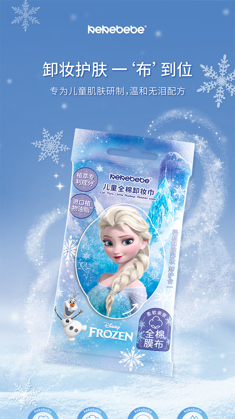 屈臣氏kekebebe儿童全棉卸妆巾_冰雪女王 50g 10片