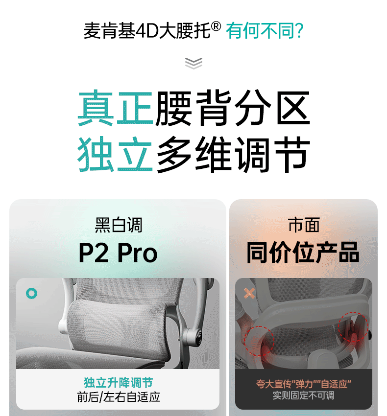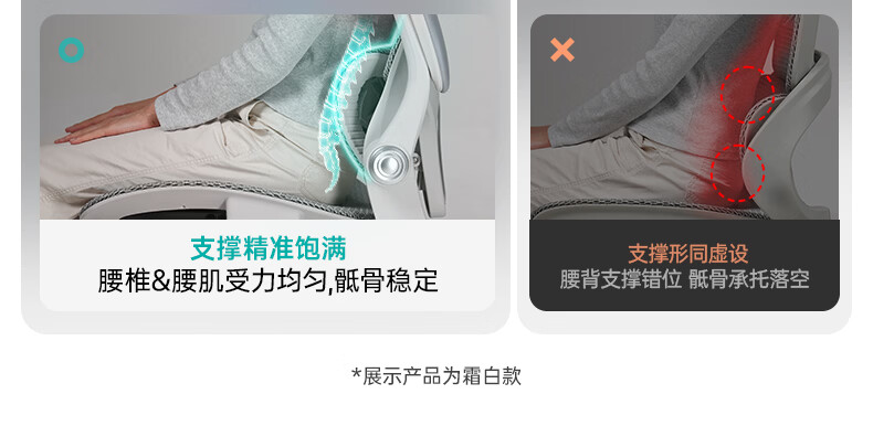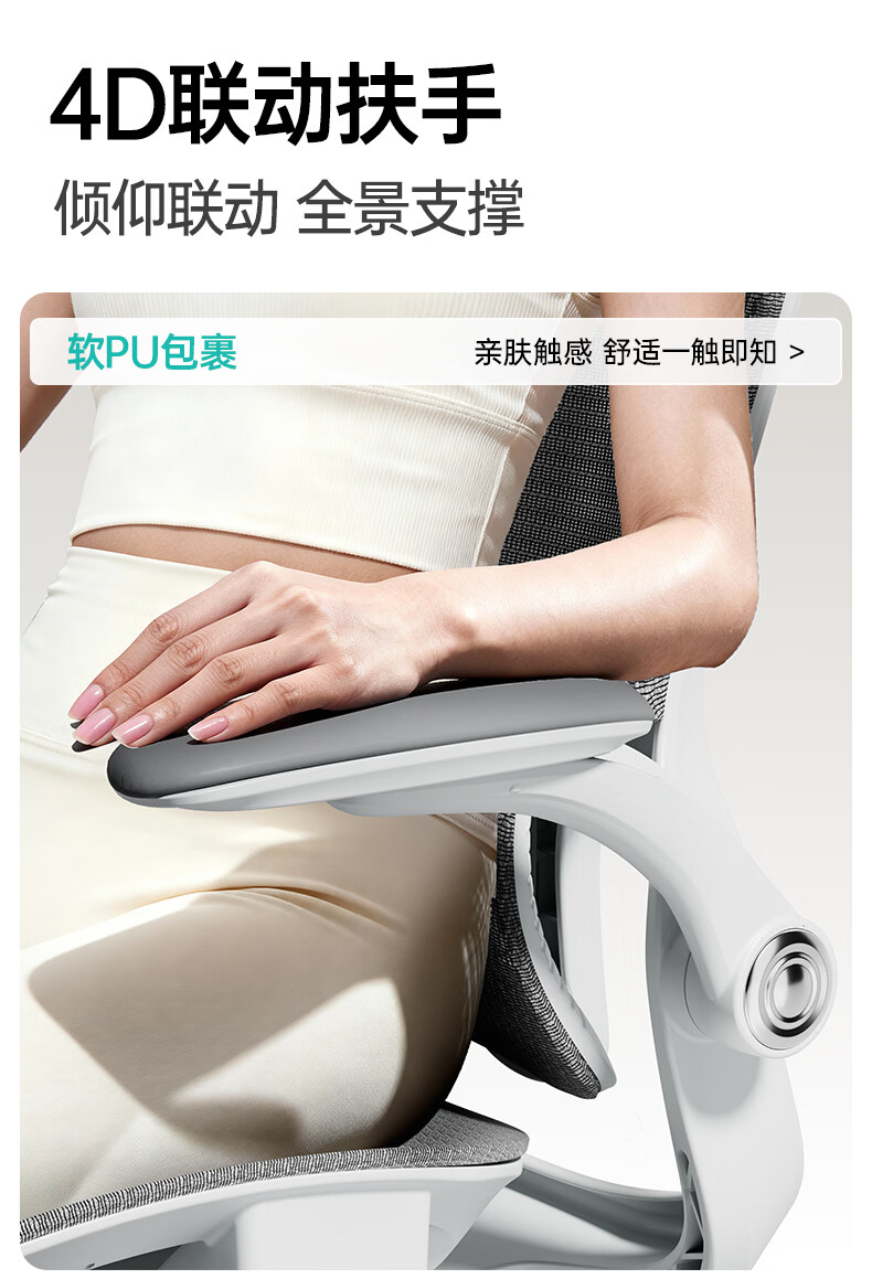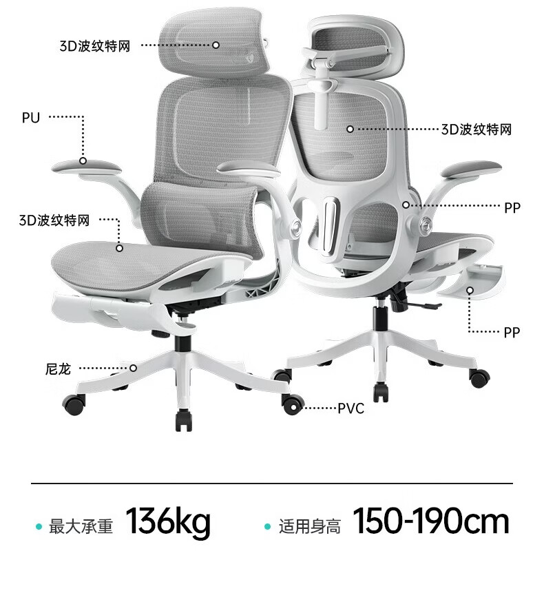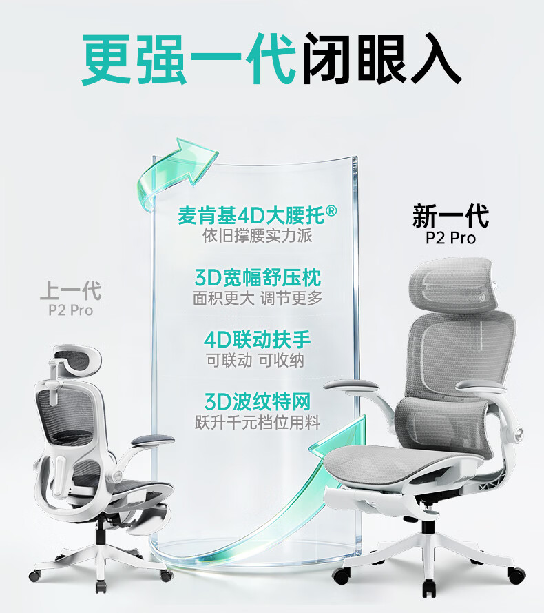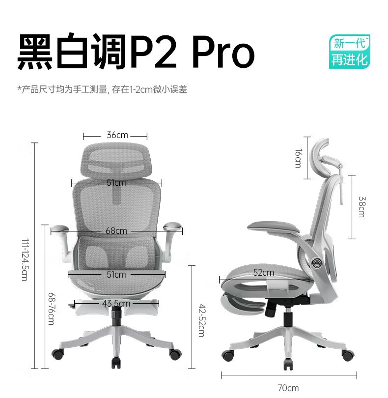 黑白调P2Pro人体工学椅电脑椅办公椅学习椅久坐电竞椅子人工力学座椅 P2 Pro二代霜白 【麦肯基4D腰托 4D联动扶手 3D颈枕 波纹特网】 无脚托