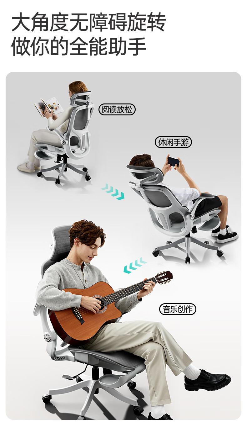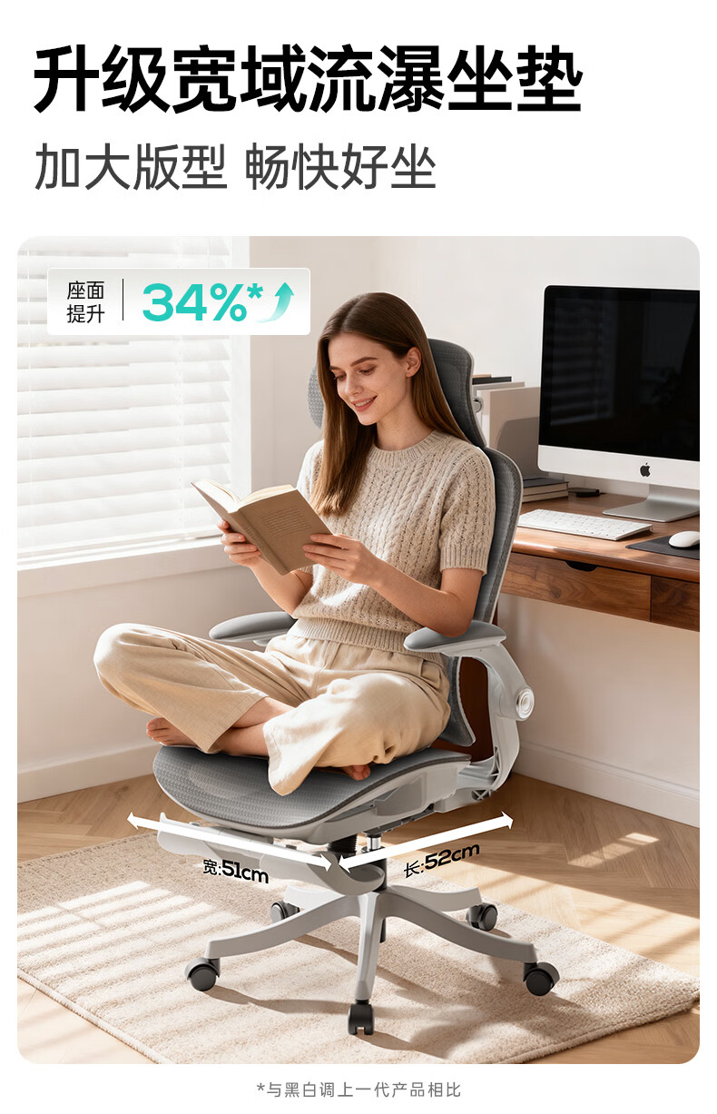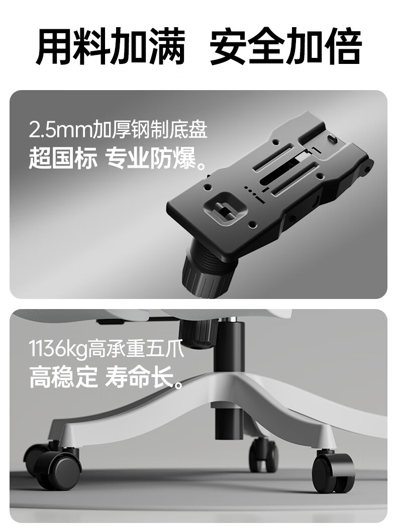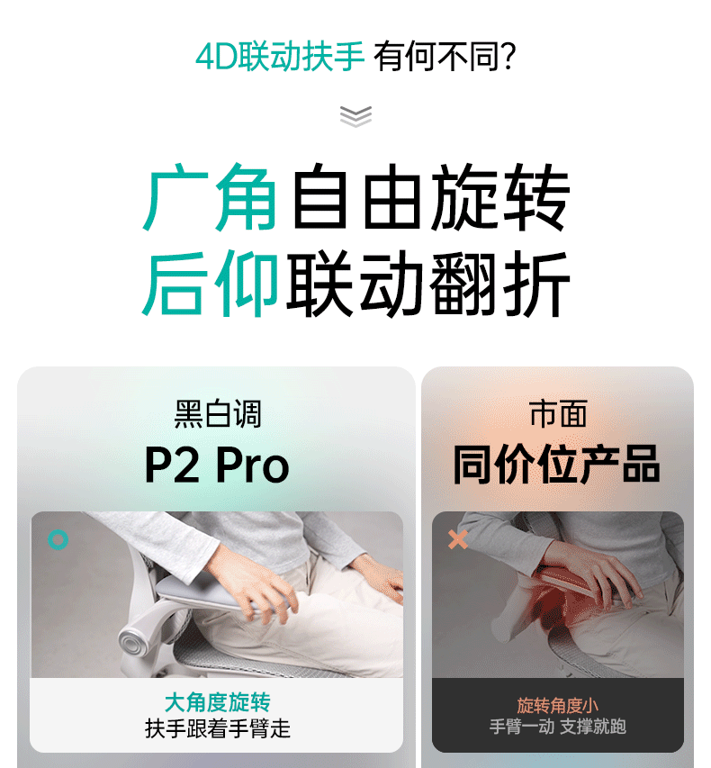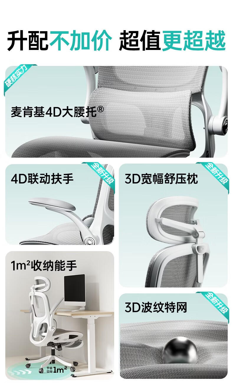 黑白调P2Pro人体工学椅电脑椅办公椅学习椅久坐电竞椅子人工力学座椅 P2 Pro二代霜白 【麦肯基4D腰托 4D联动扶手 3D颈枕 波纹特网】 无脚托