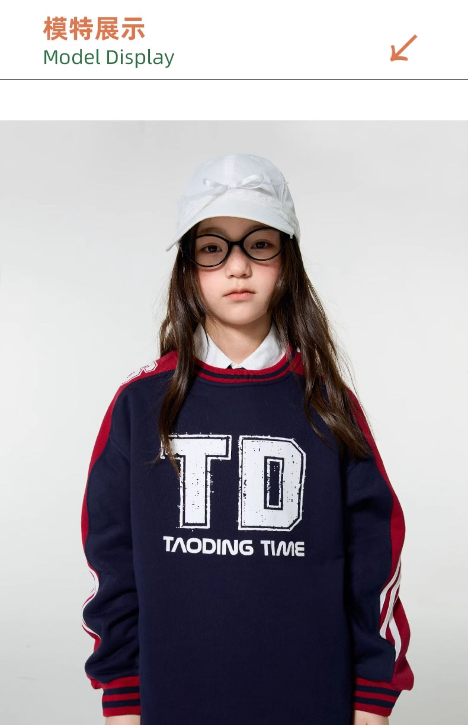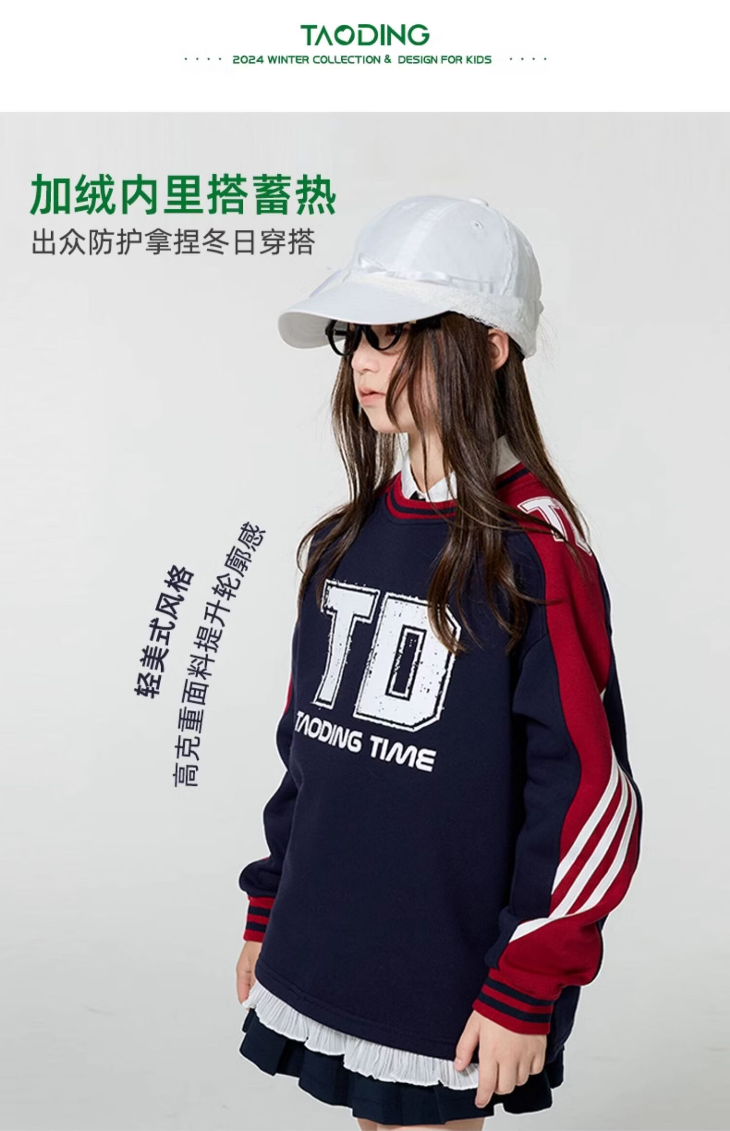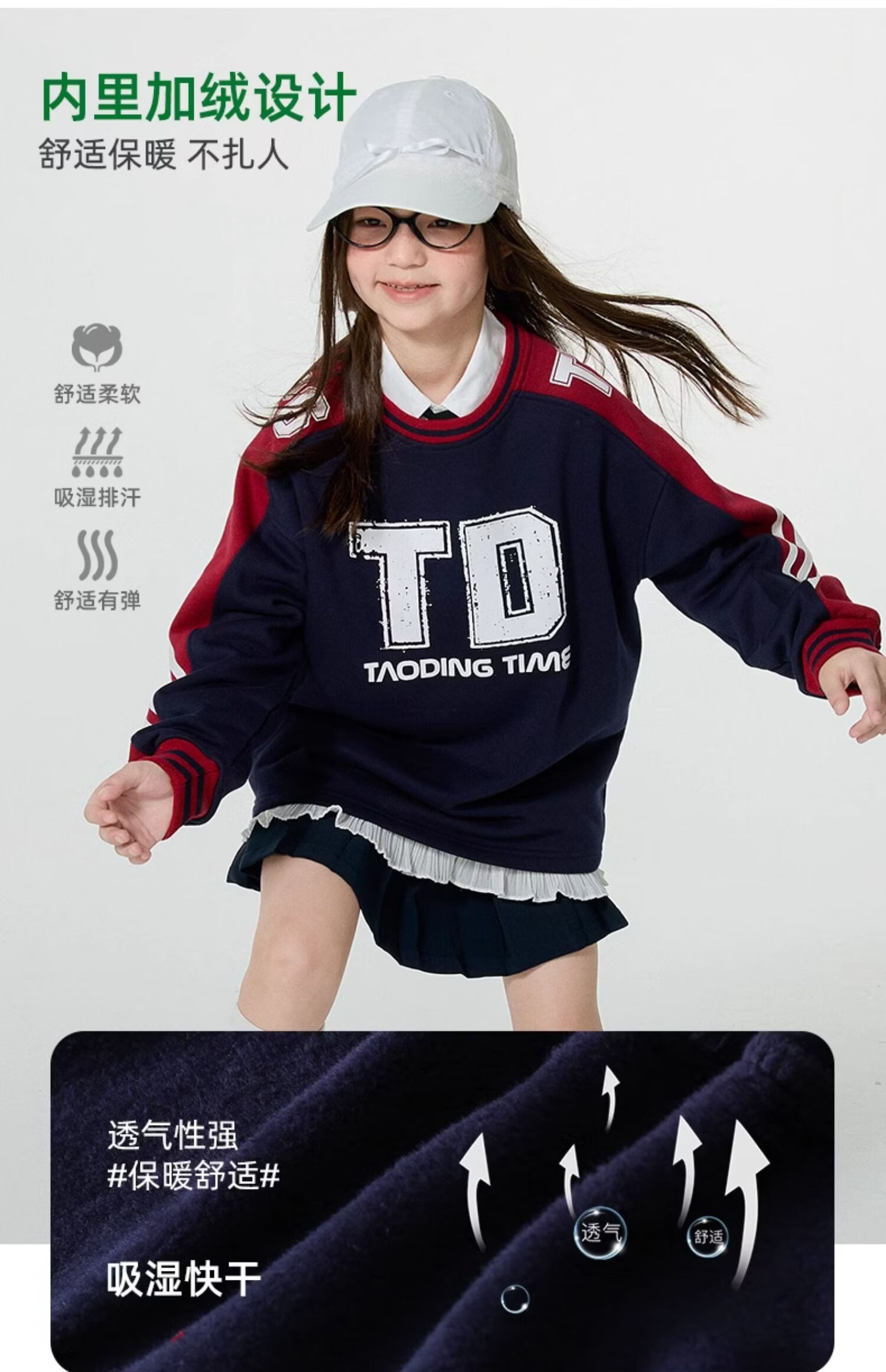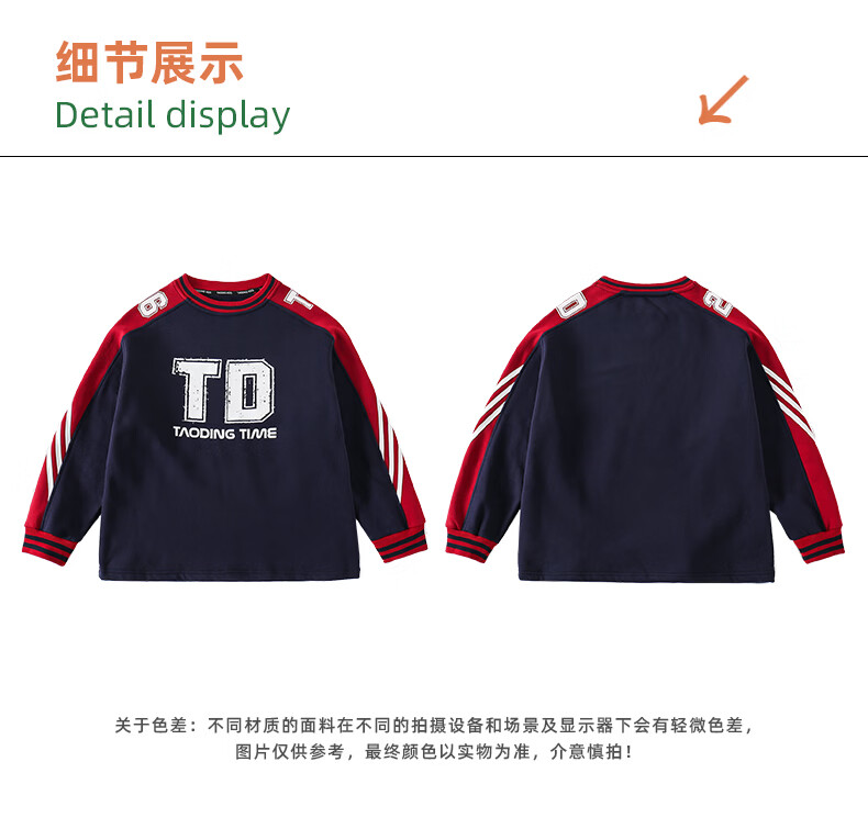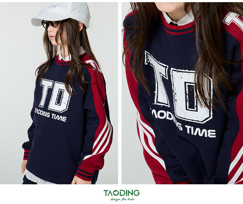 淘町女童卫衣一体绒圆领秋冬新款中大童美式运动加绒数字撞色印花 藏青色 120