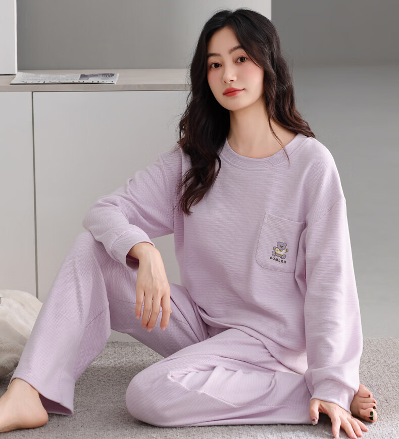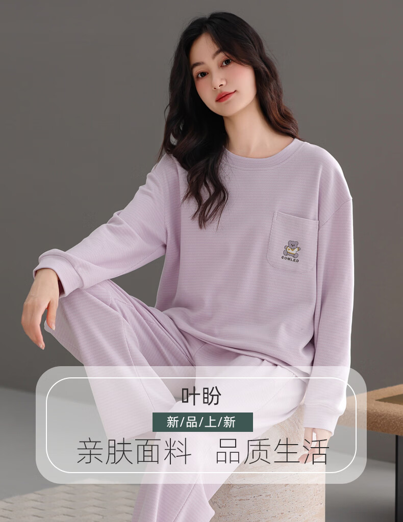 叶盼(yepan)【保暖】海岛绒睡衣女冬季套头女款宽松大码可外穿女士家居服套装 81836-奶雾紫 M (160) :建议90-110斤穿着