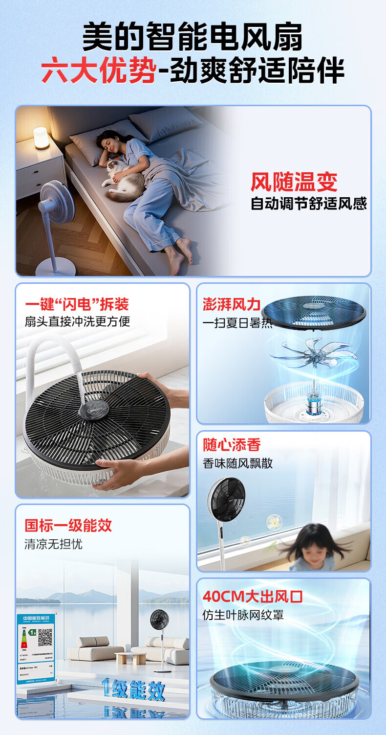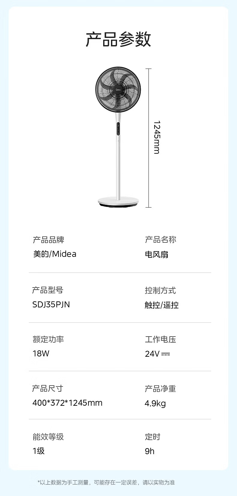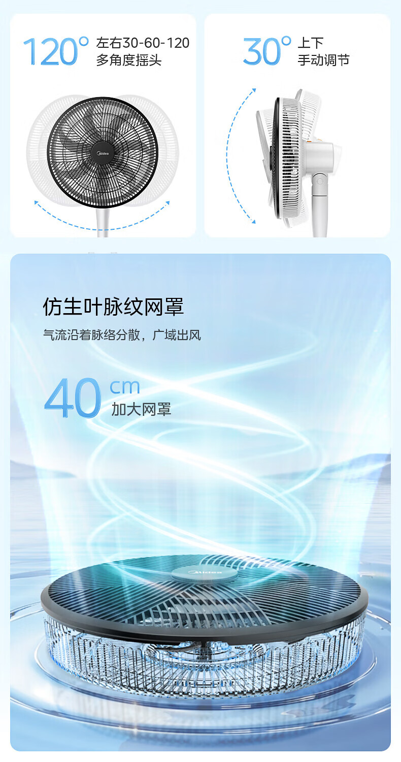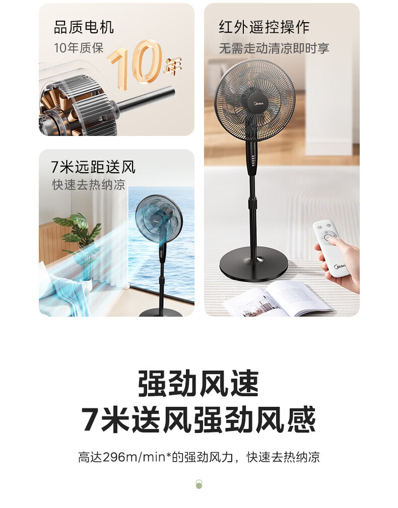 美的(Midea)落地扇家用电风扇大风量立式七叶节能强风电扇卧室降温柔风轻音台地两用摇头风扇 【直流变频 40CM加大网罩】SDJ35PJN