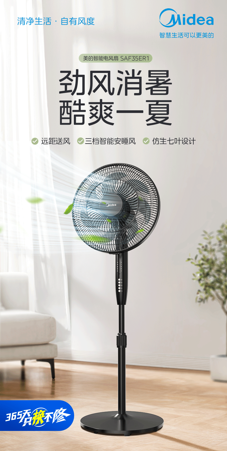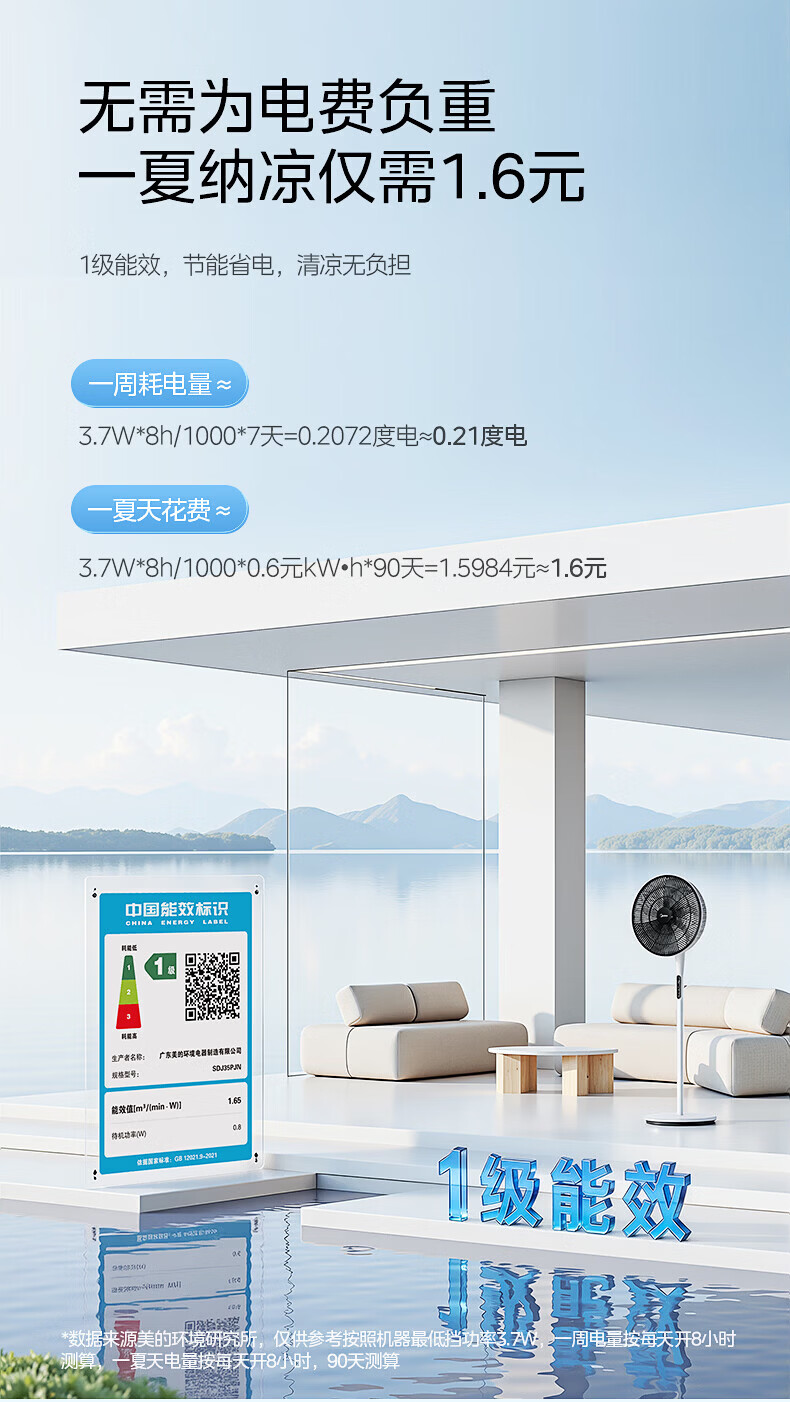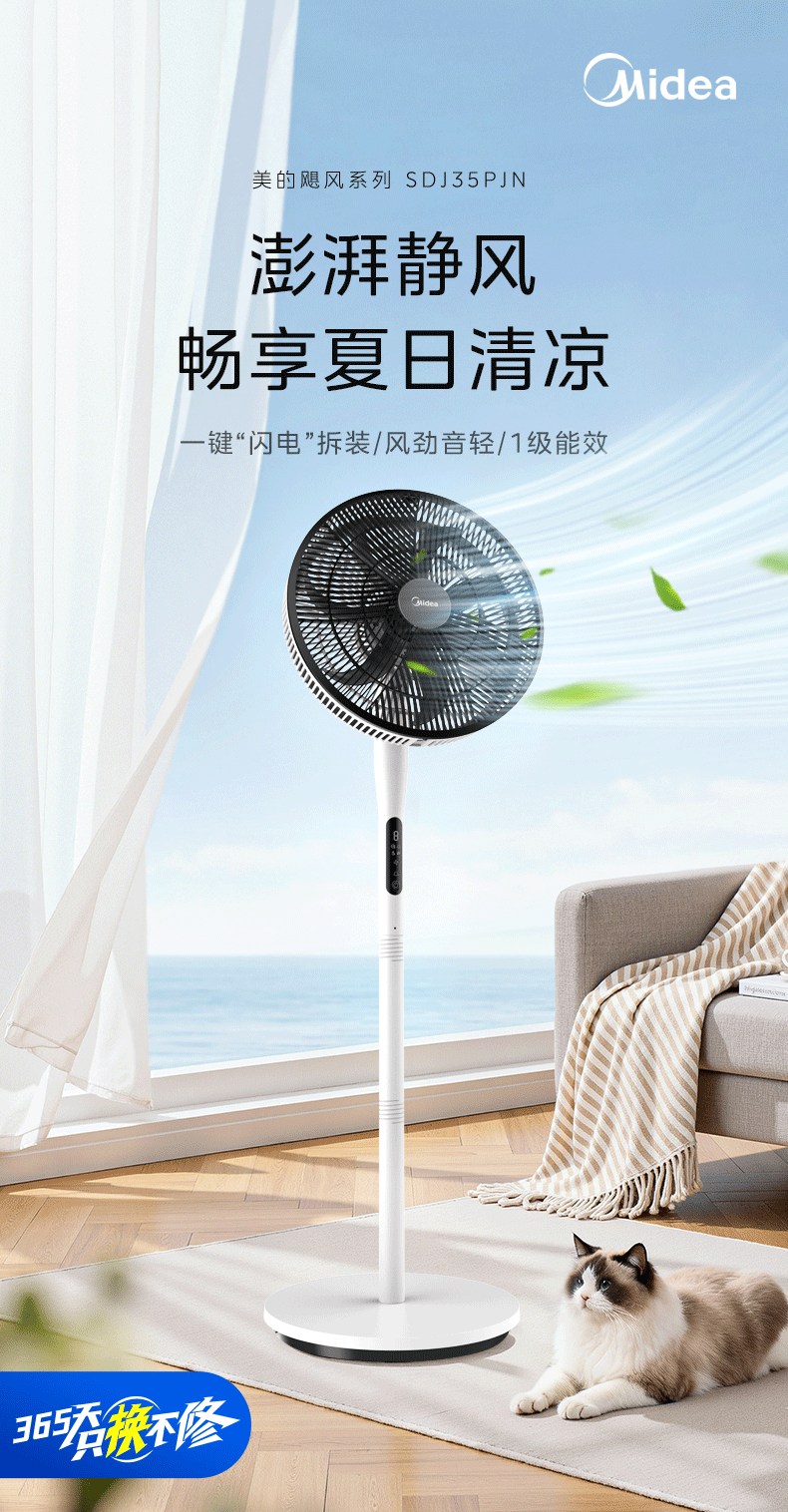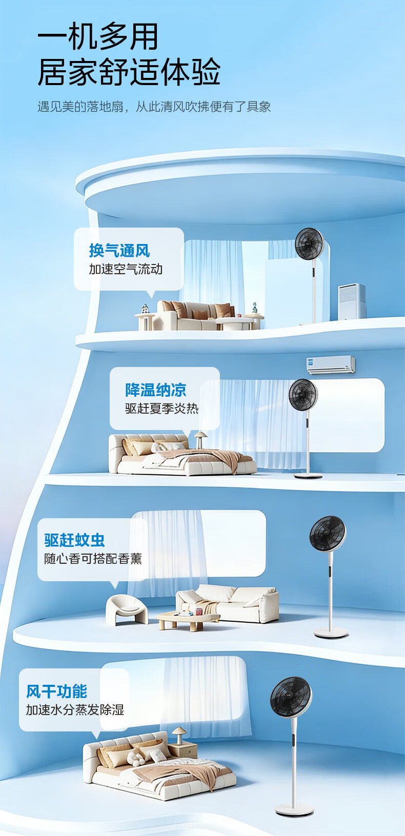 美的(Midea)落地扇家用电风扇大风量立式七叶节能强风电扇卧室降温柔风轻音台地两用摇头风扇 【直流变频 40CM加大网罩】SDJ35PJN