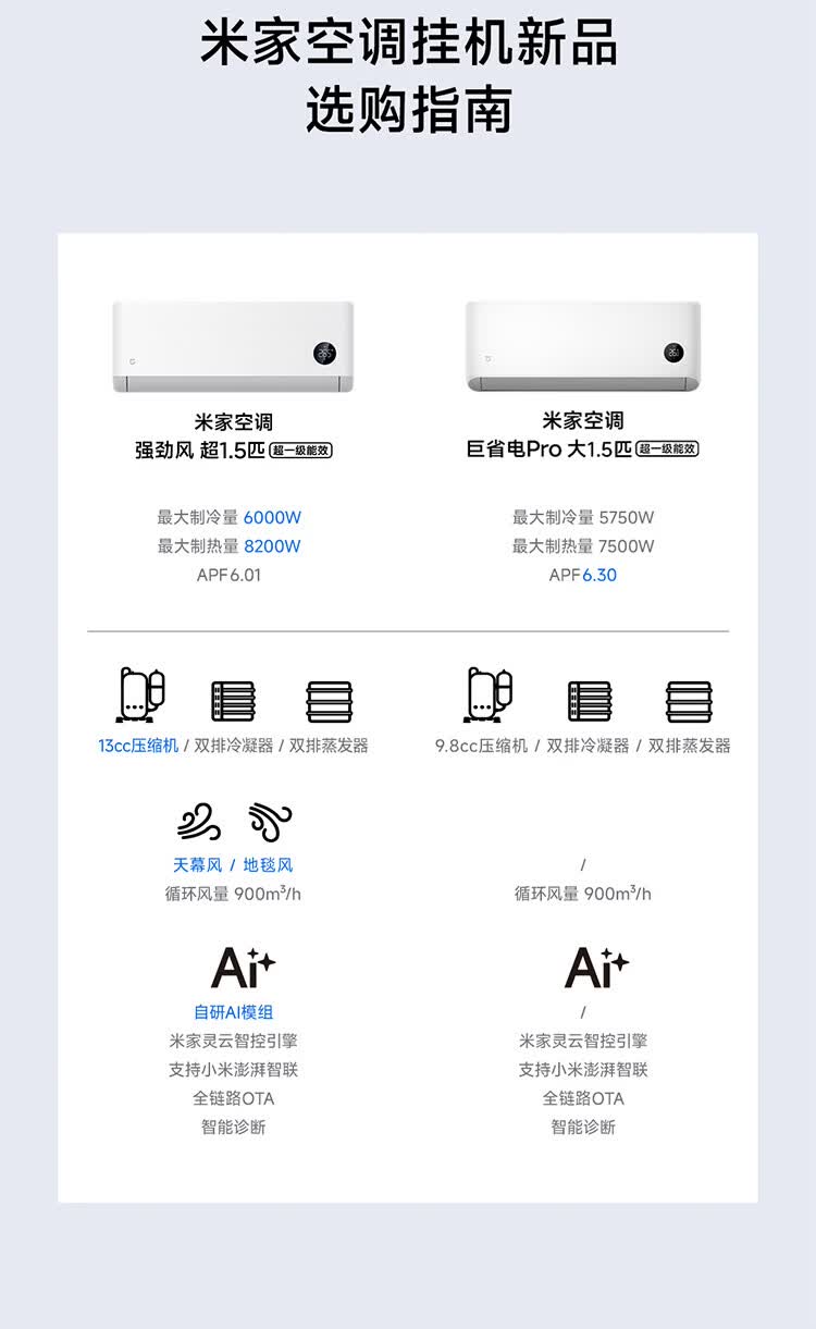 小米空调 米家 强劲风 【超1.5匹】 一级能效 13cc大排量双缸压缩机 空调挂机 35GW-PG15/X1A1国家补贴