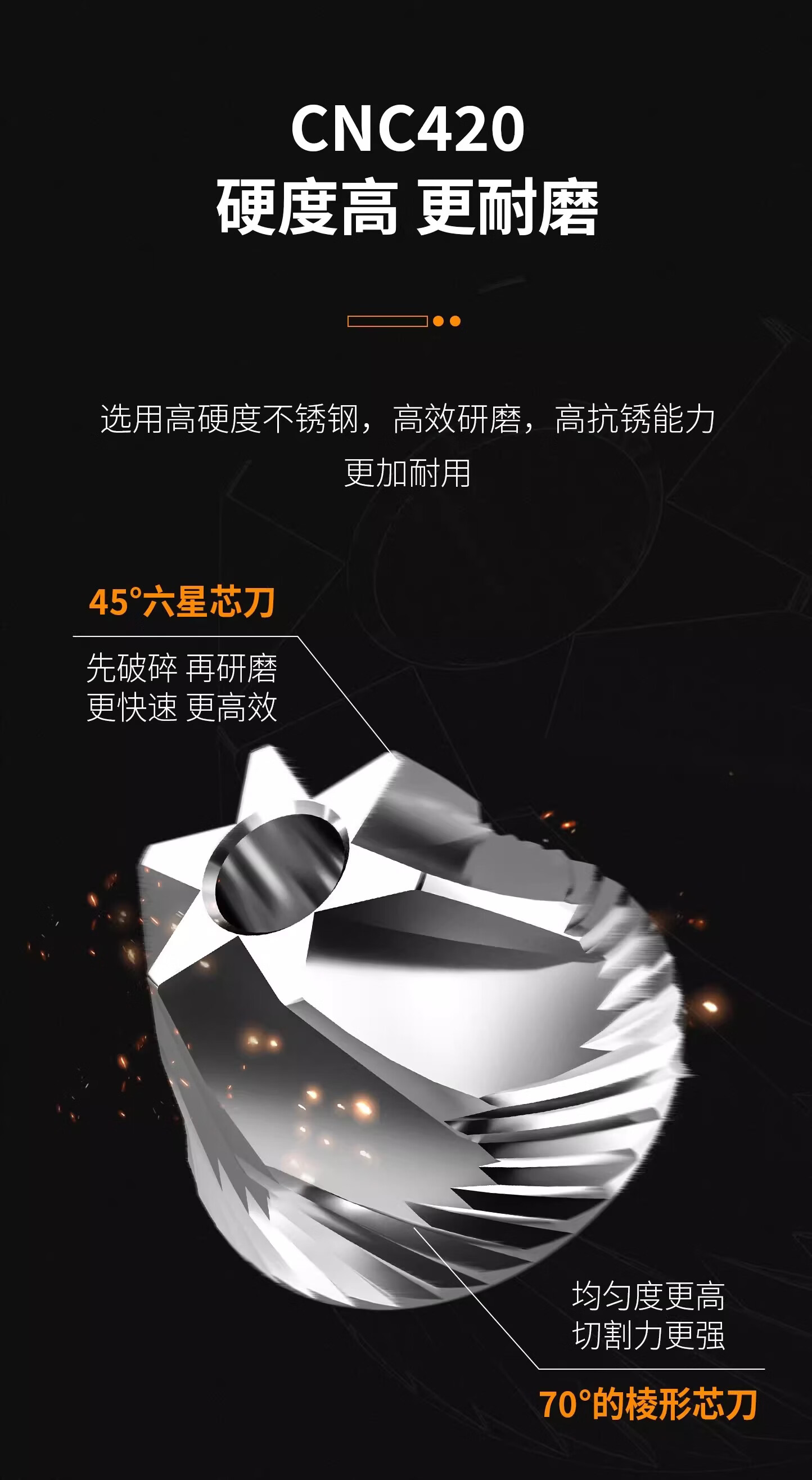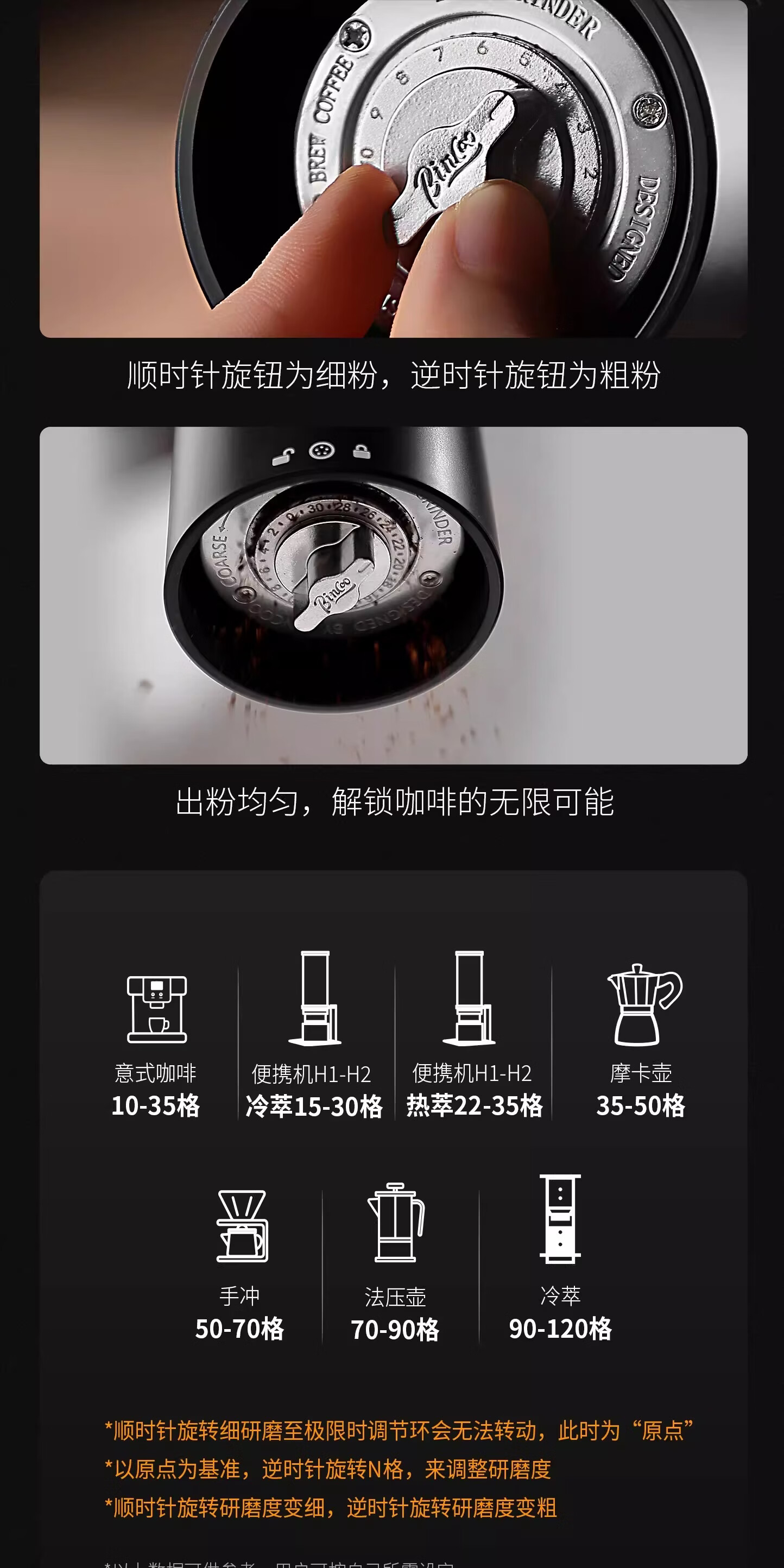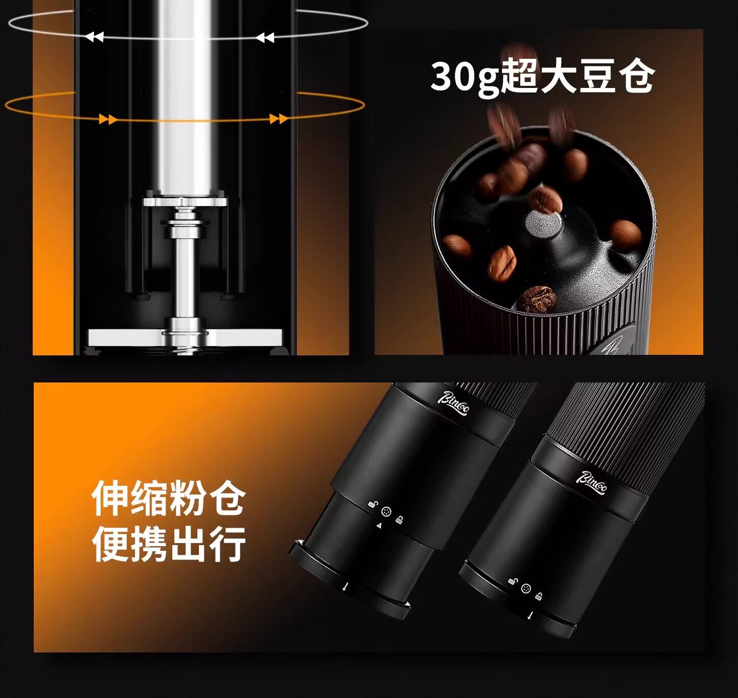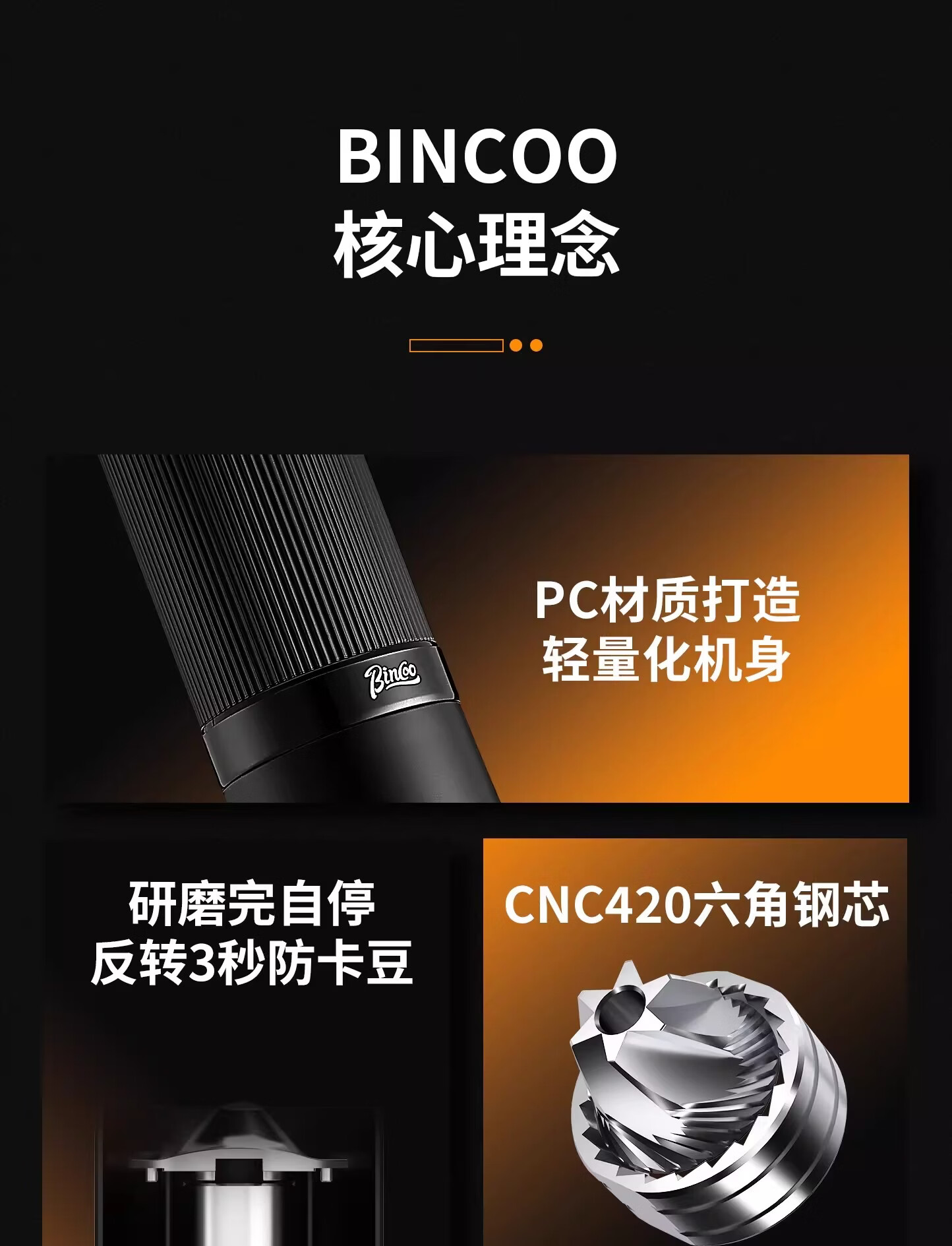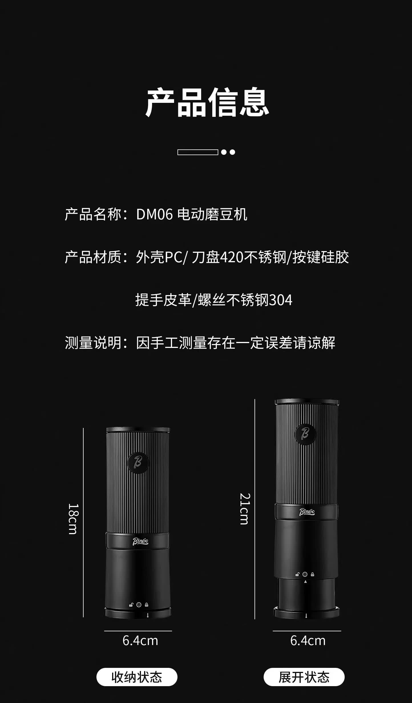 Bincoo便携电动DM06咖啡豆研磨家用小型手冲意式磨粉内调磨豆机 粉色-420六星钢芯【0.5轴距精细调节】