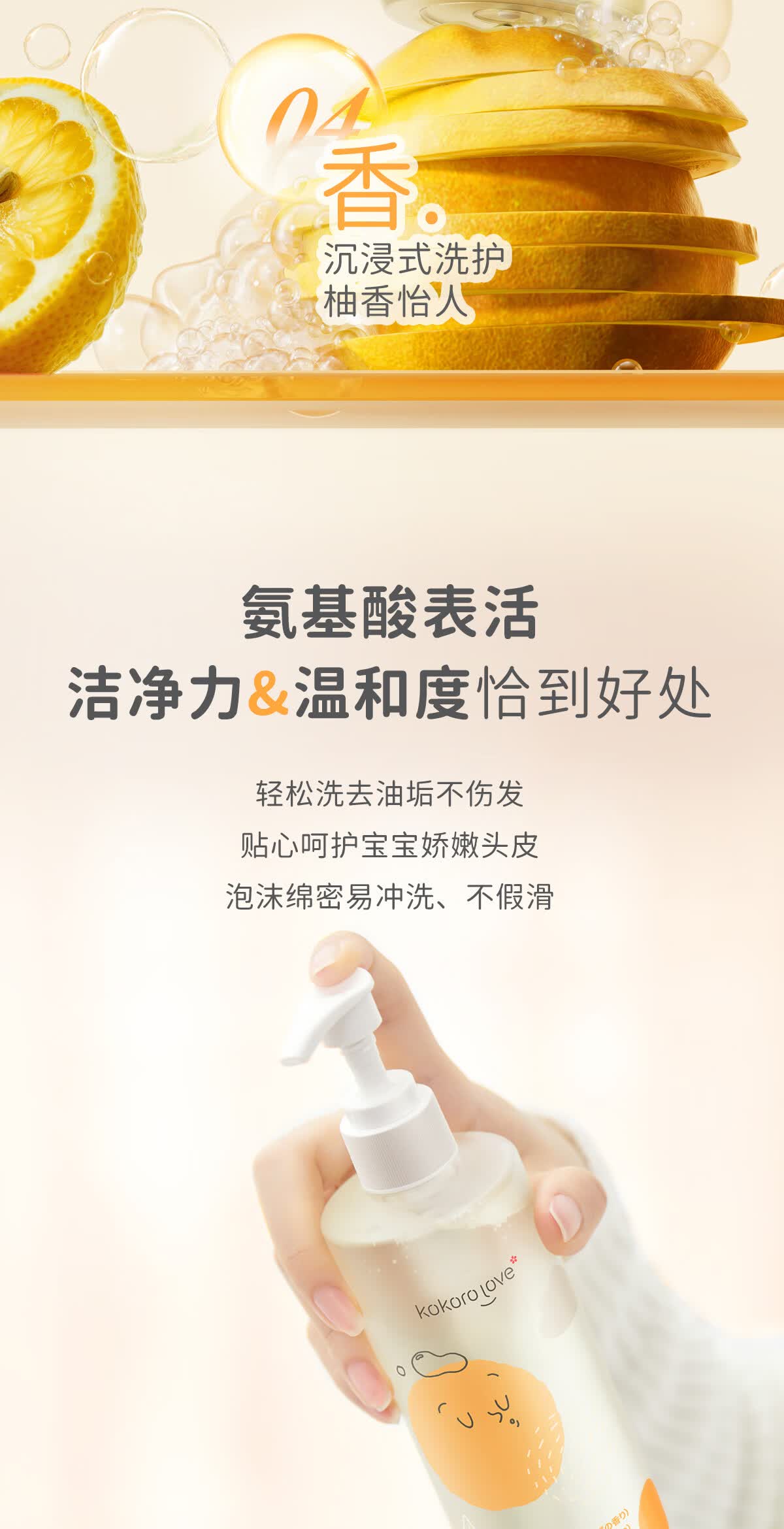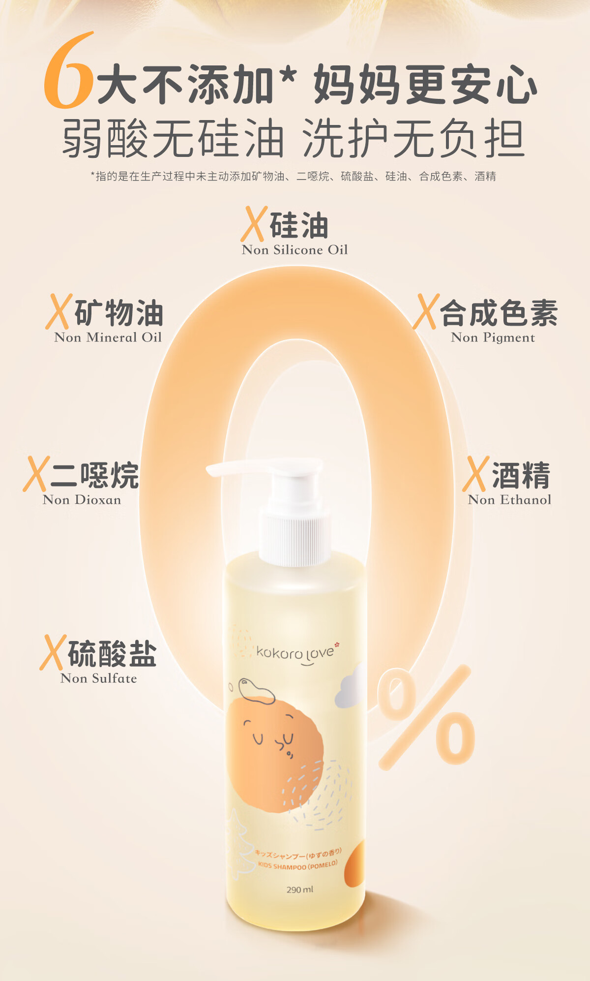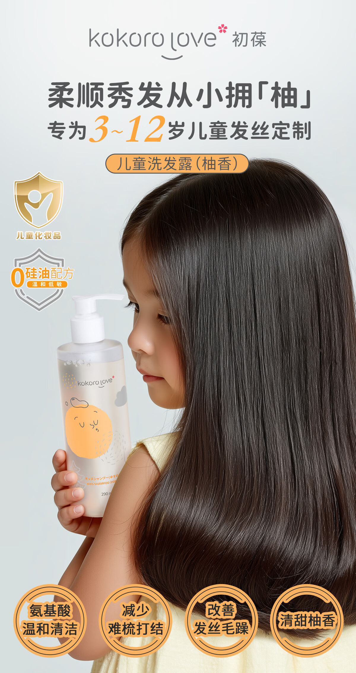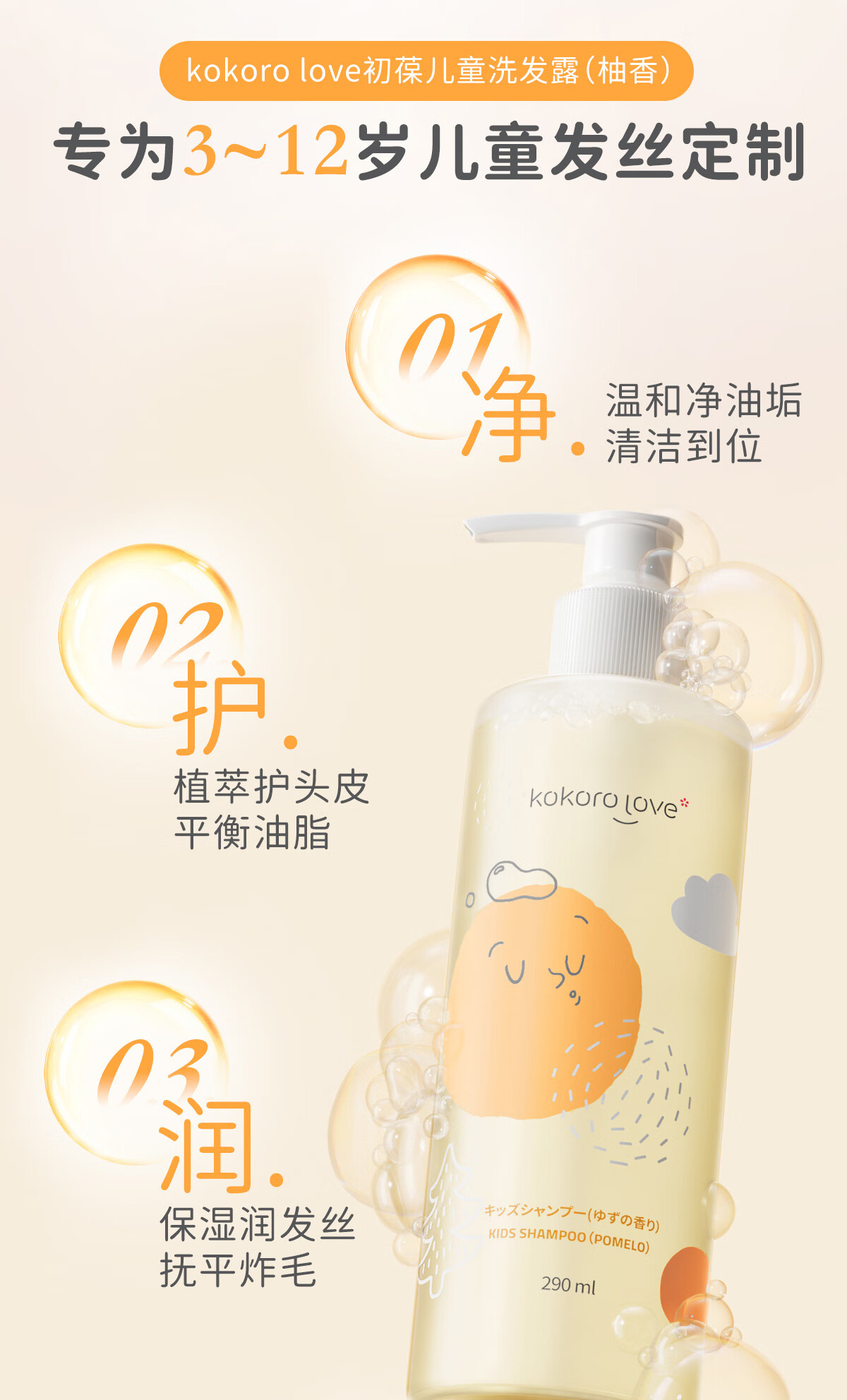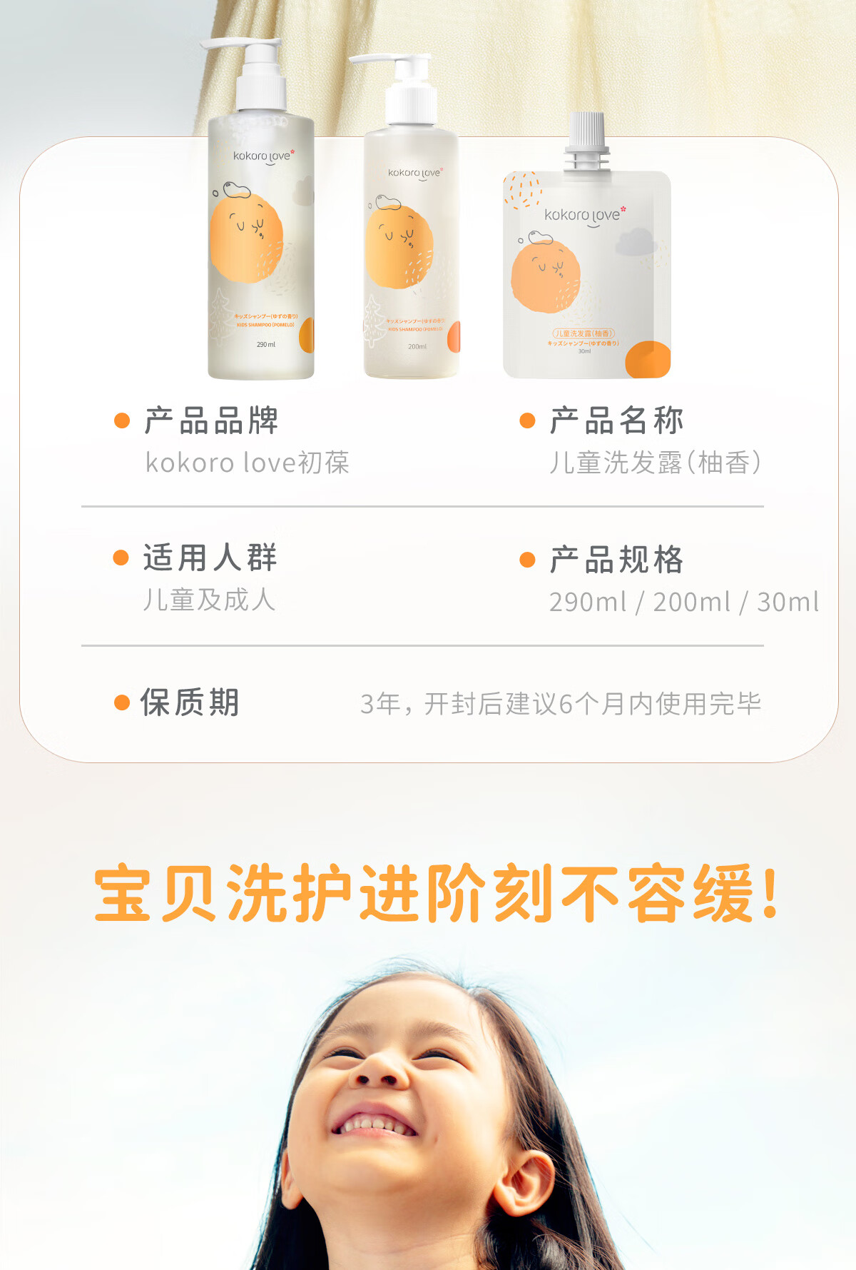 KOKORO LOVE初葆儿童洗发水200ml女宝专用3-6-12岁柚香女孩女童洗发露膏