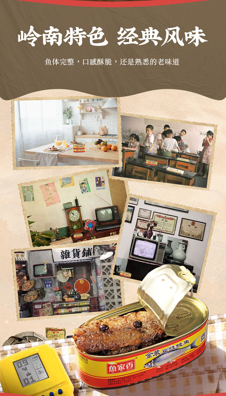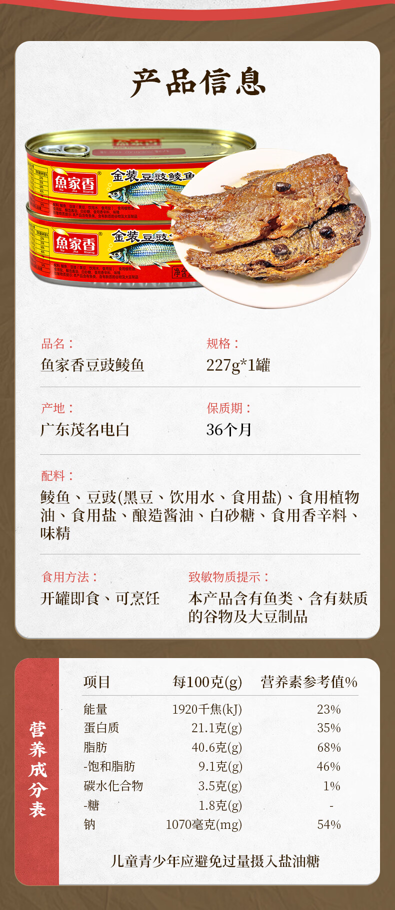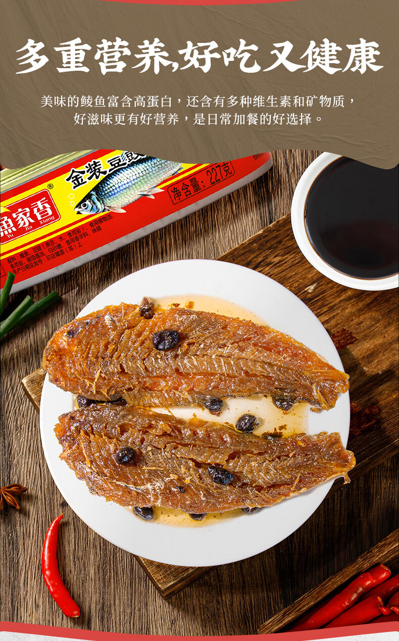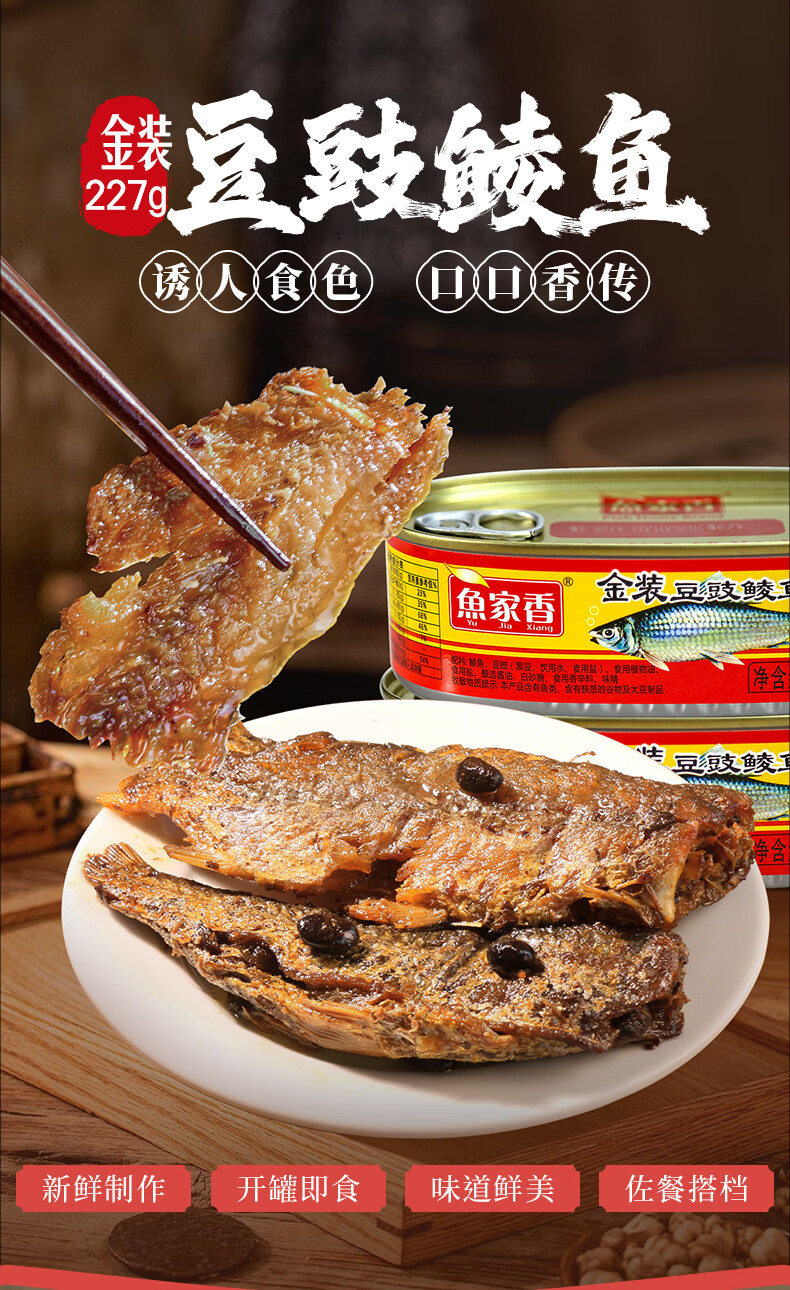 鱼家香金装豆豉鲮鱼罐头227g 广东特产 海鲜罐头即食下饭酒菜炒饭佐料