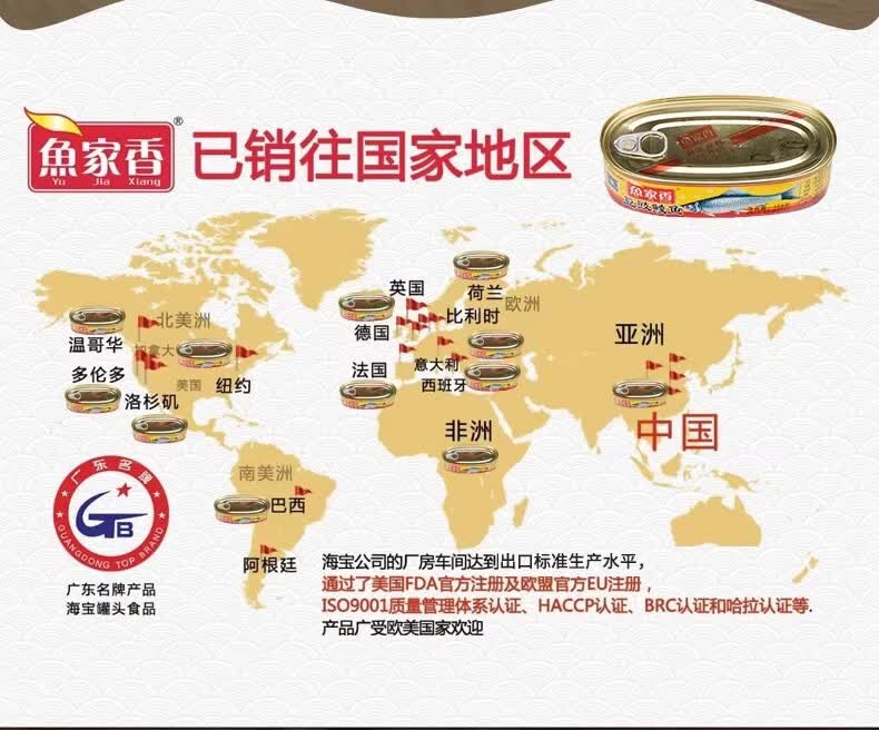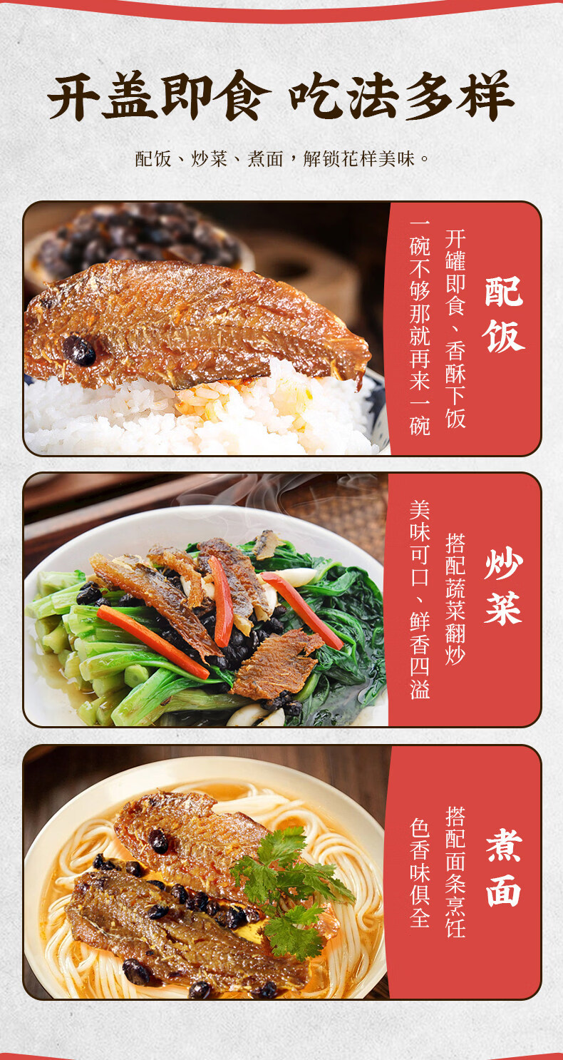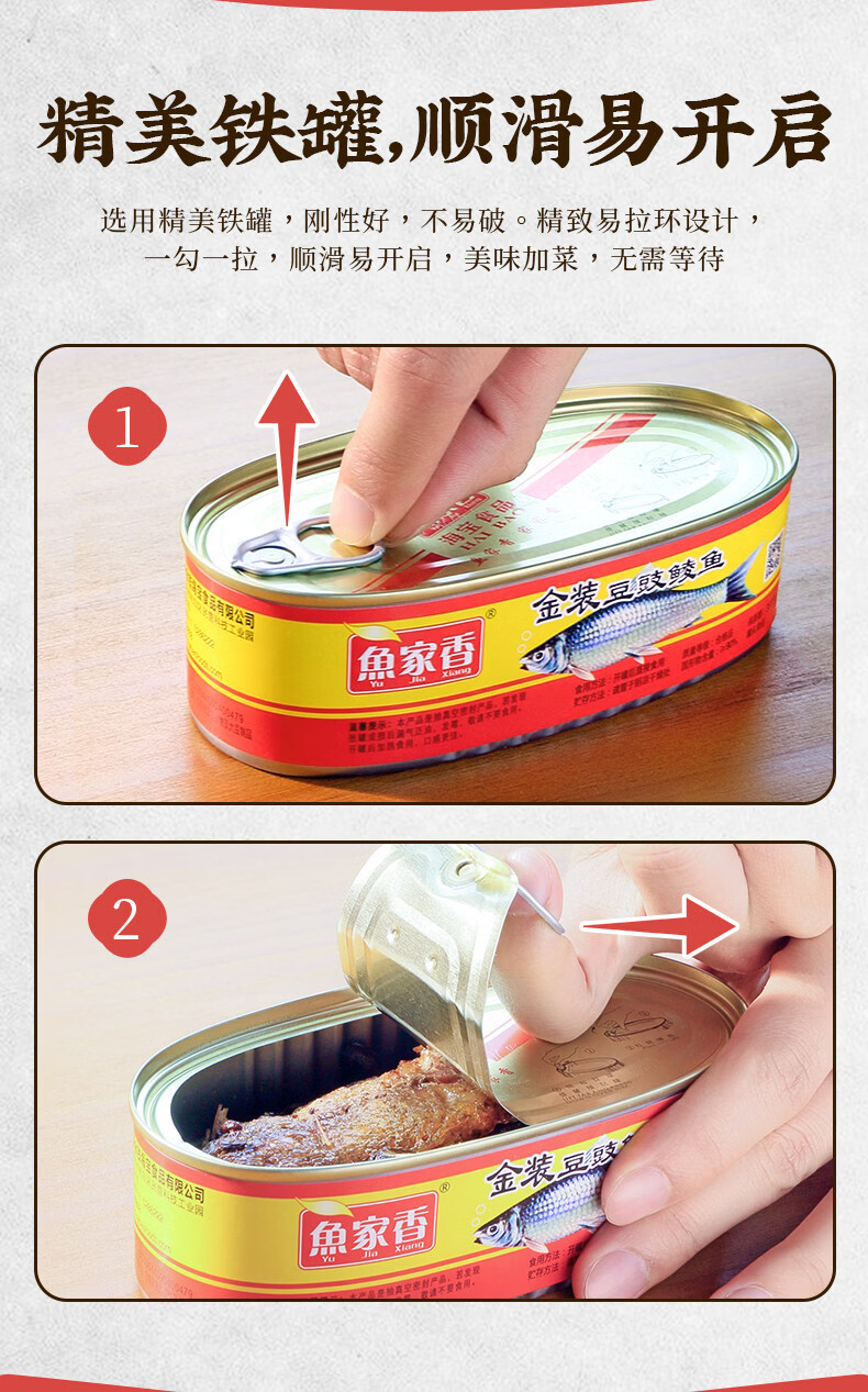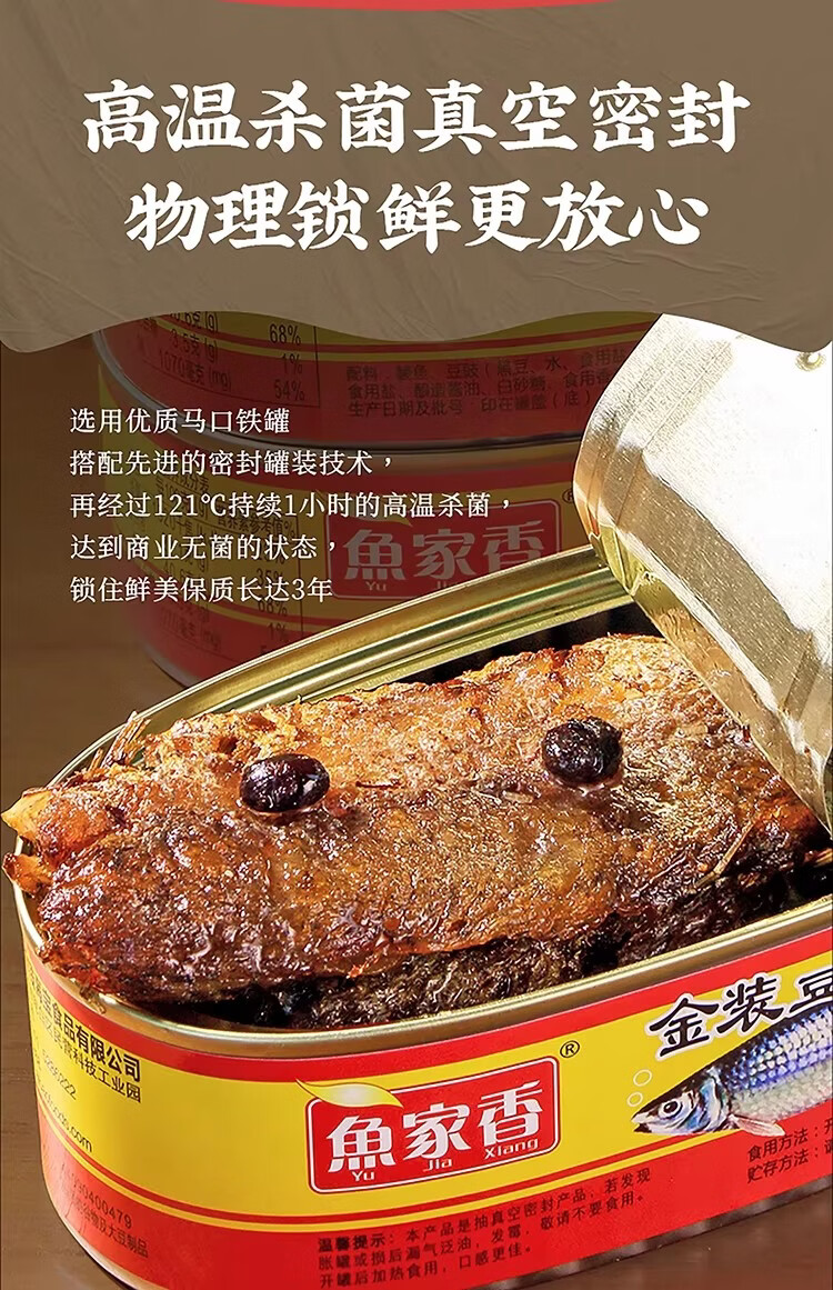 鱼家香金装豆豉鲮鱼罐头227g 广东特产 海鲜罐头即食下饭酒菜炒饭佐料