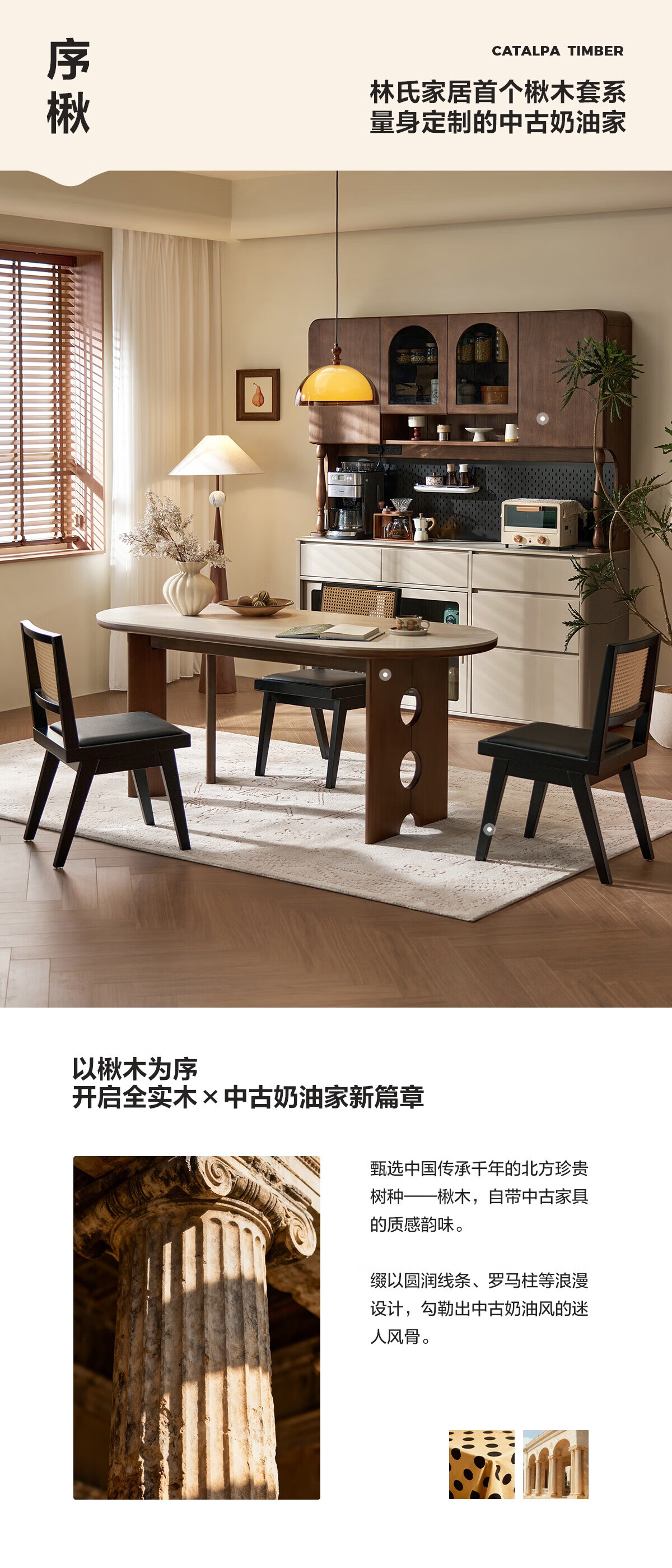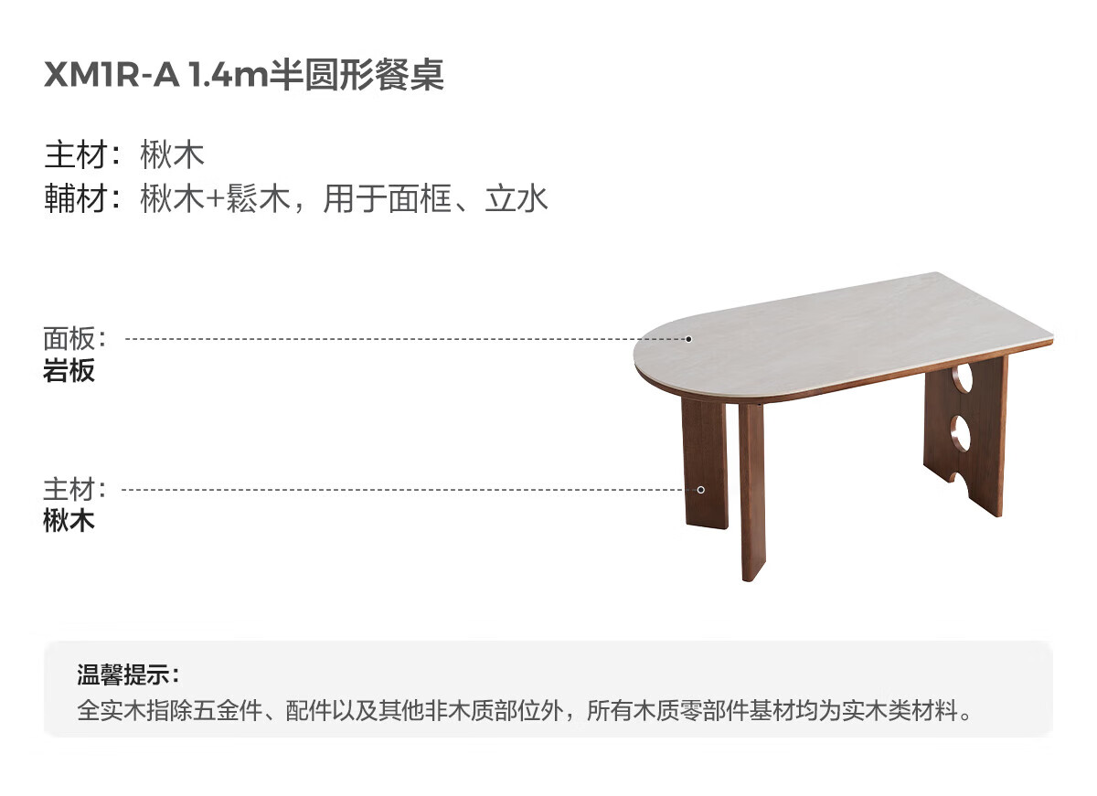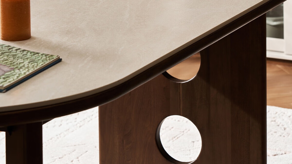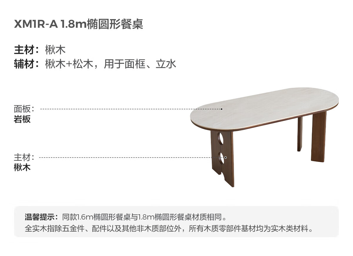 林氏家居中古风实木餐桌胡桃木色椭圆形饭桌子序楸系列岩板餐桌椅全套XM1R 【楸木|1.4m】岩板实木餐桌