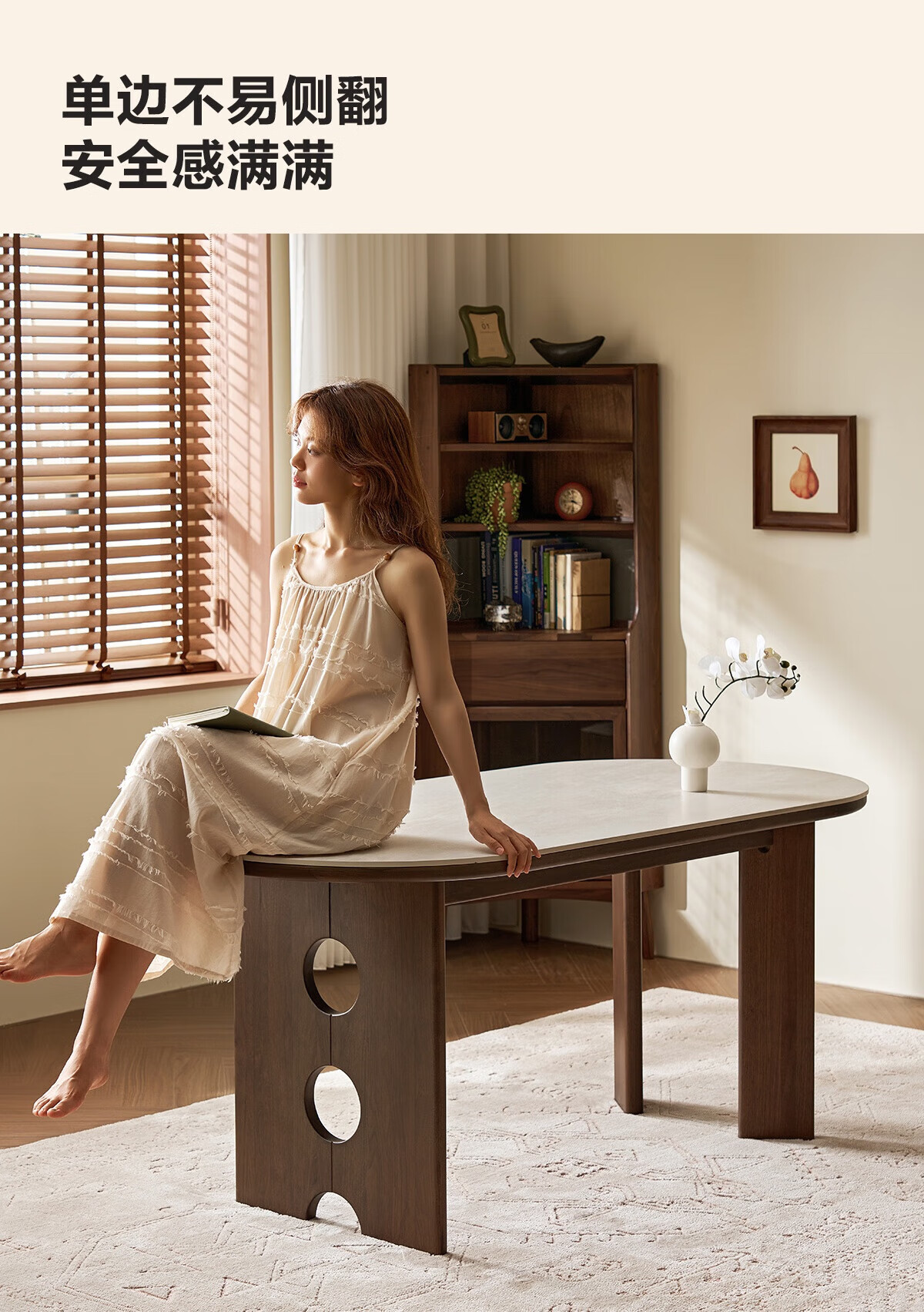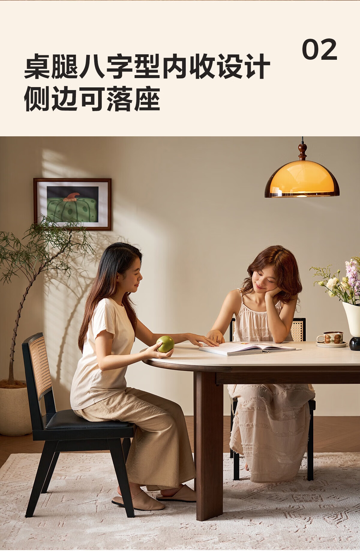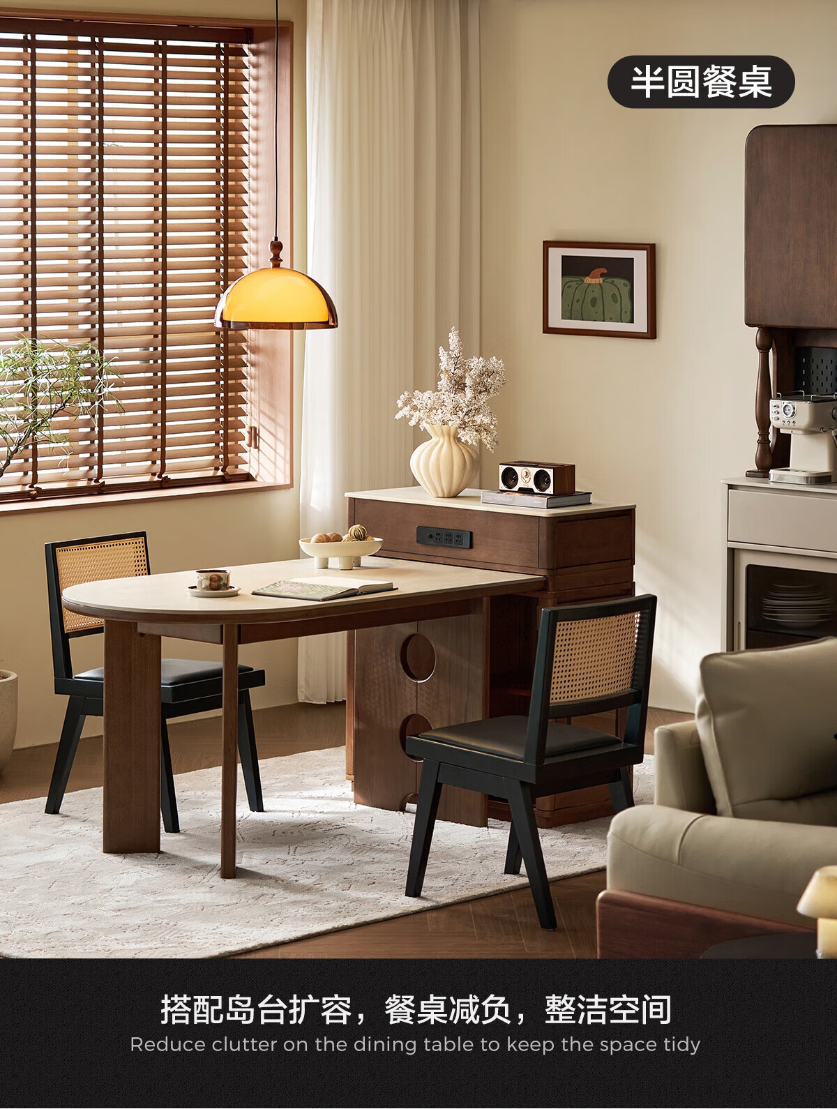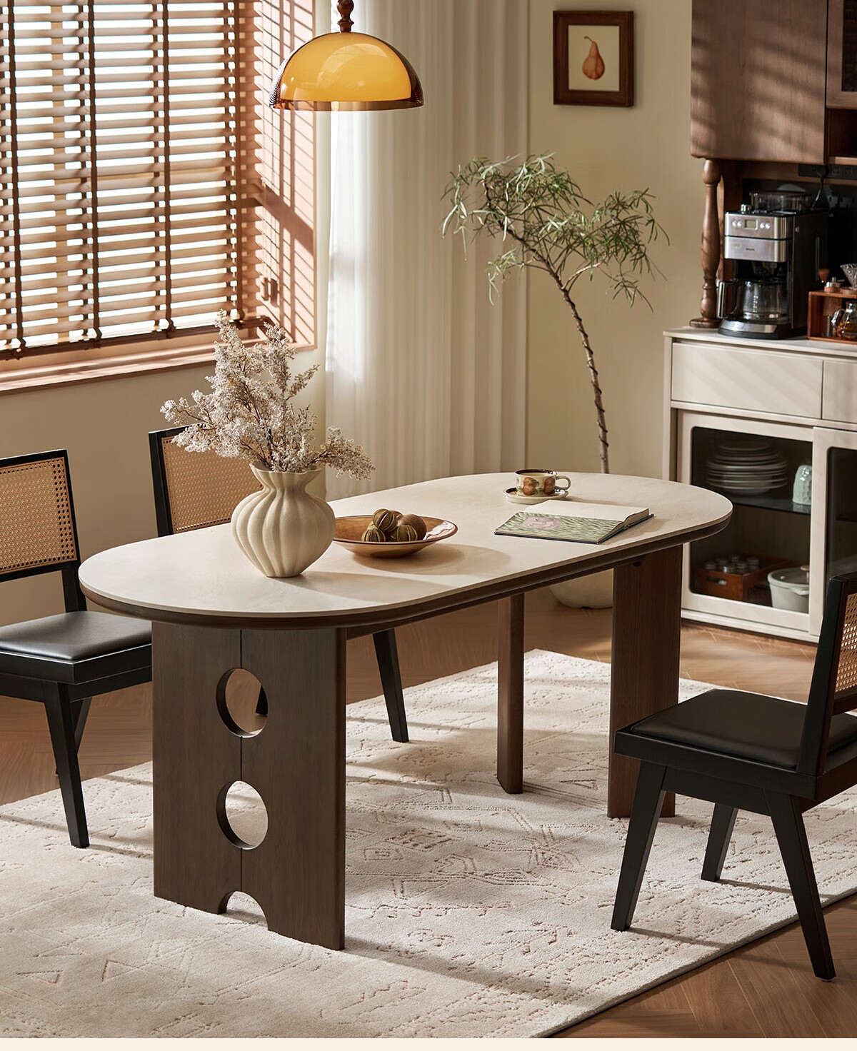 林氏家居中古风实木餐桌胡桃木色椭圆形饭桌子序楸系列岩板餐桌椅全套XM1R 【楸木|1.4m】岩板实木餐桌