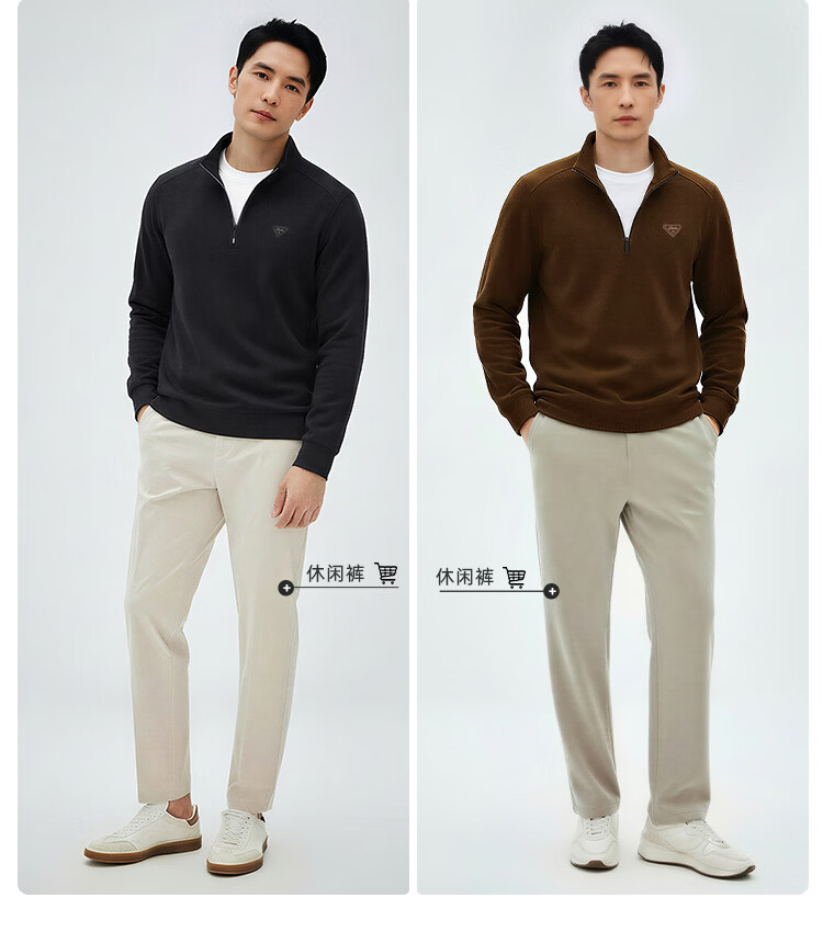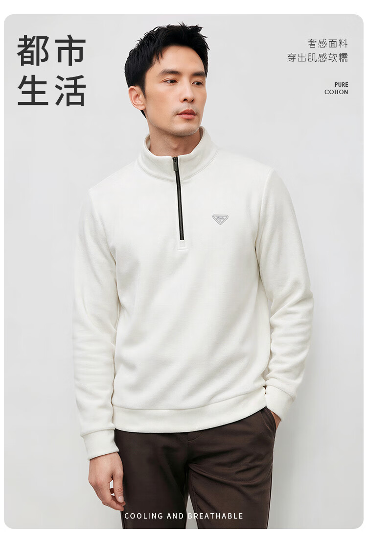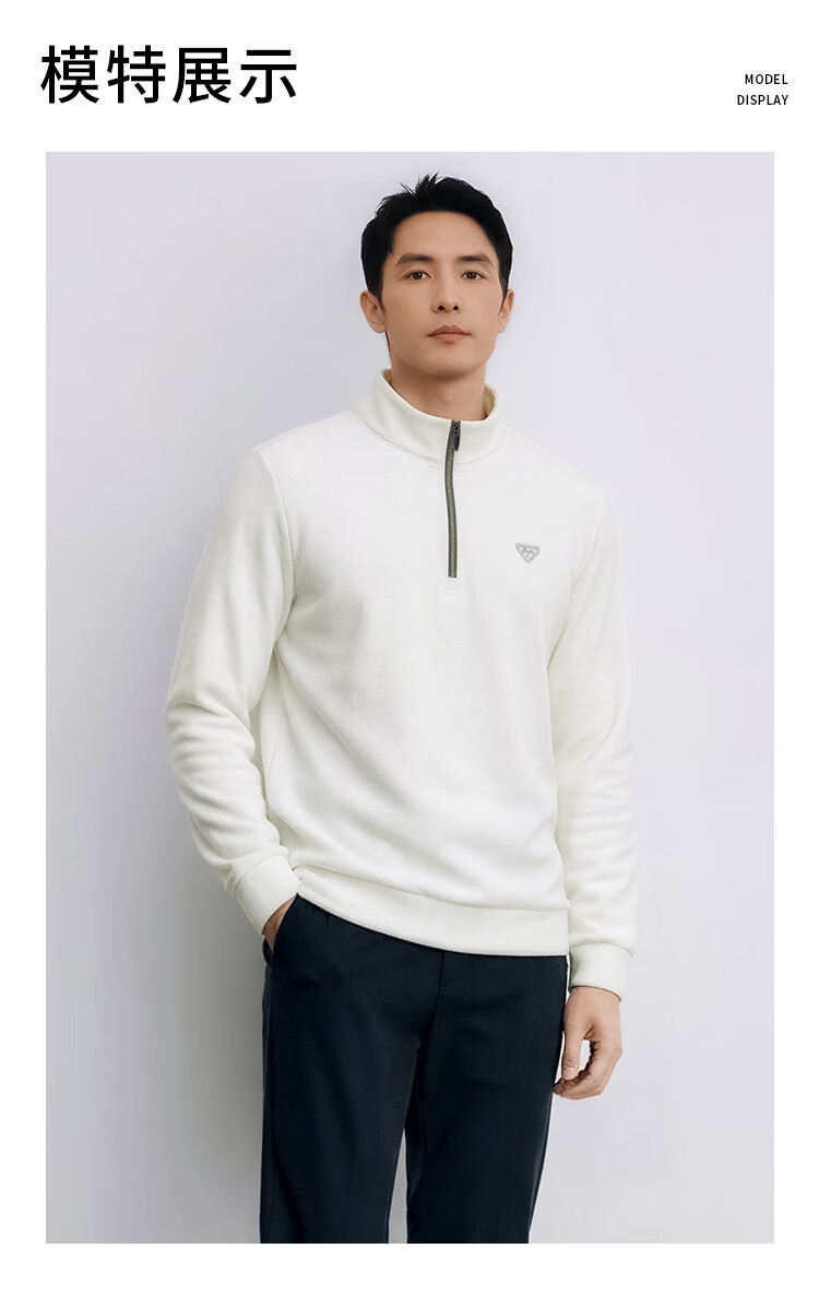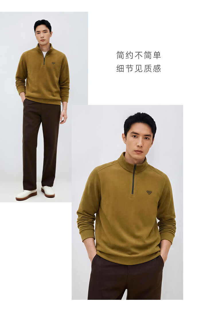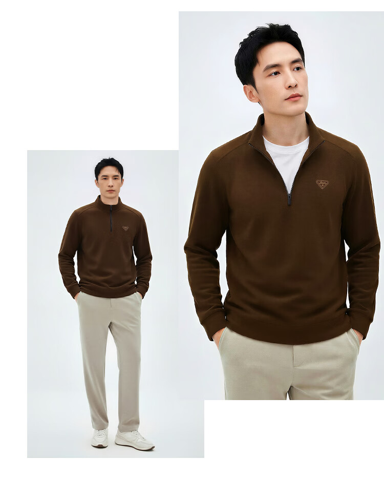 莱克斯顿(laxdn)卫衣男秋冬新款半拉链立领保暖零压高弹休闲半长袖套头衫3 深咖啡 XL