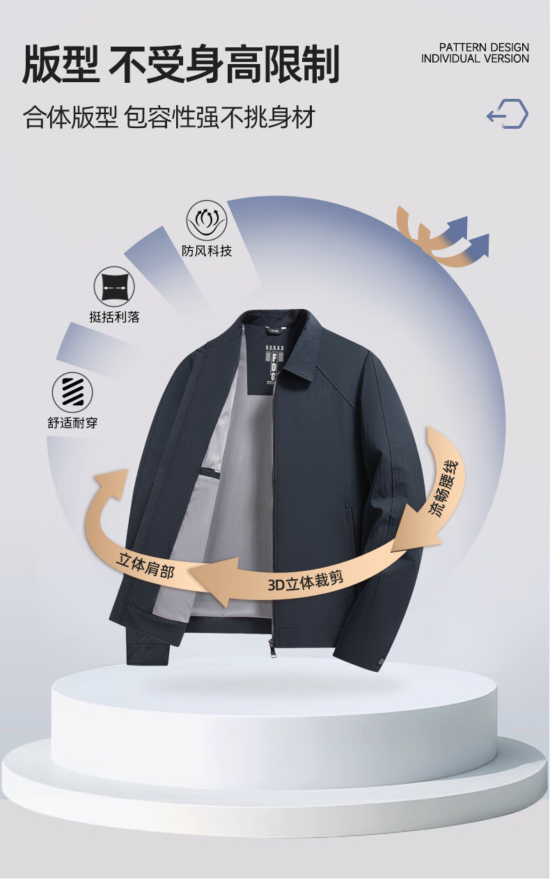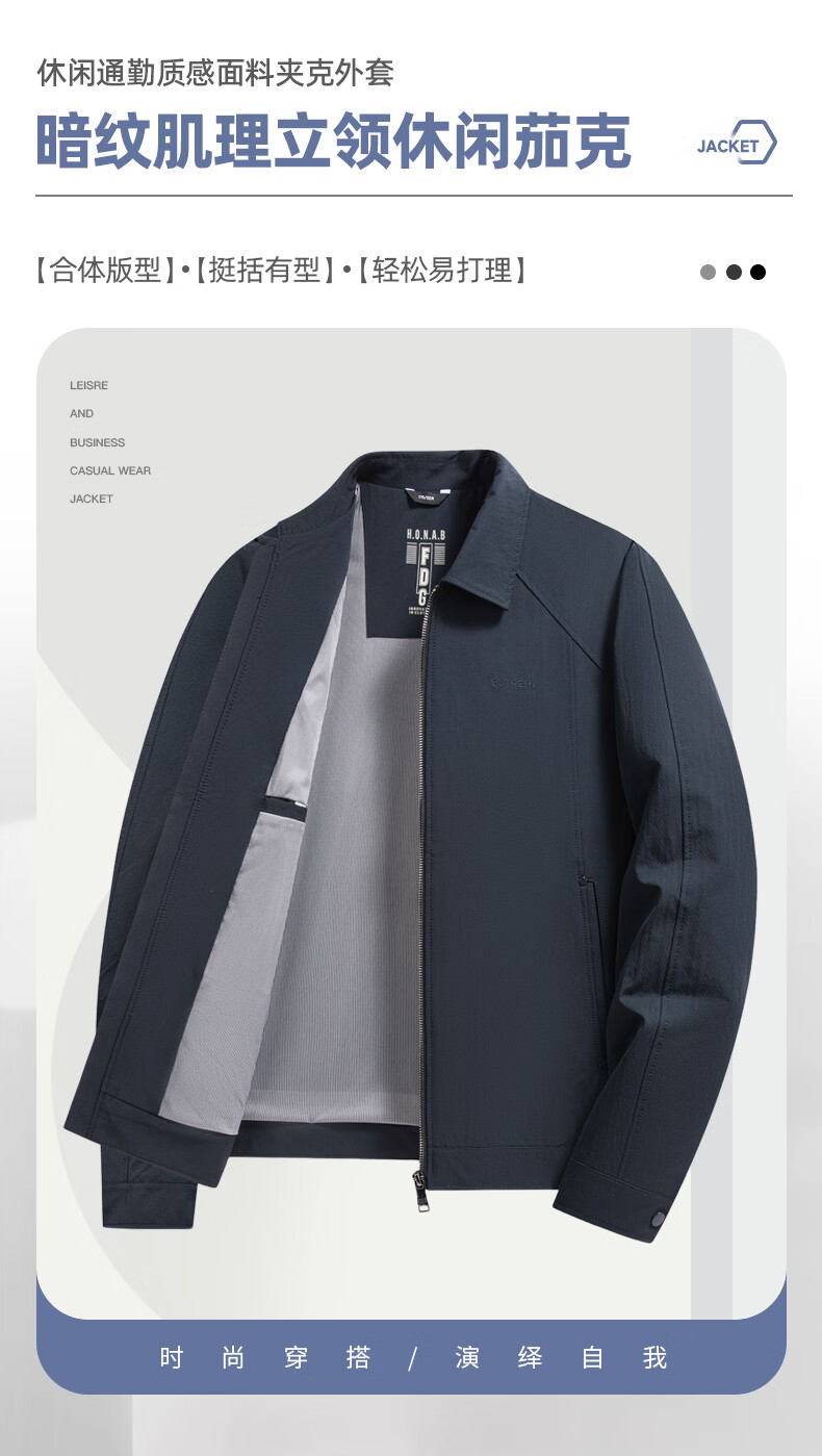 SHANSHAN杉杉休闲夹克男士商务通勤百搭外套时尚翻领上衣春季新款长袖衣服 藏青色 L /175