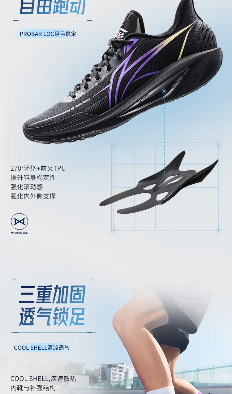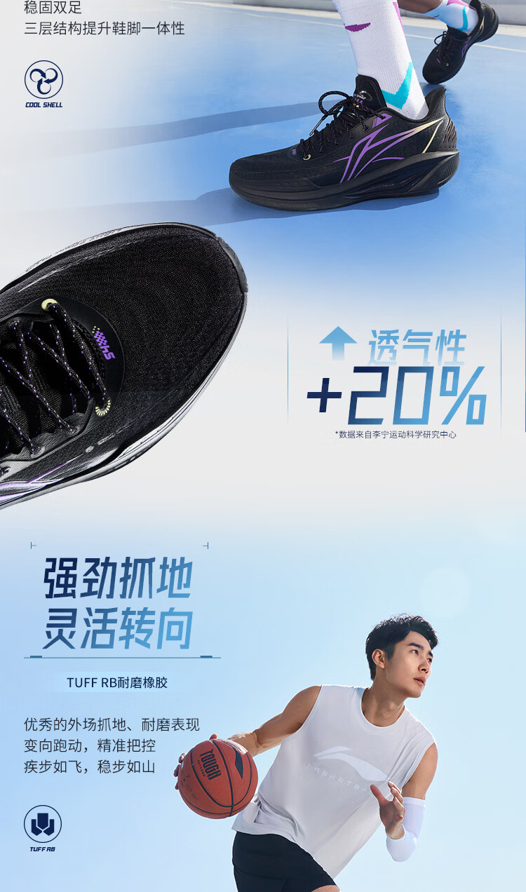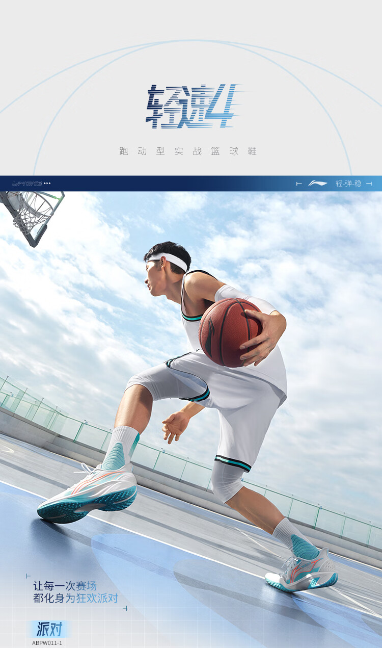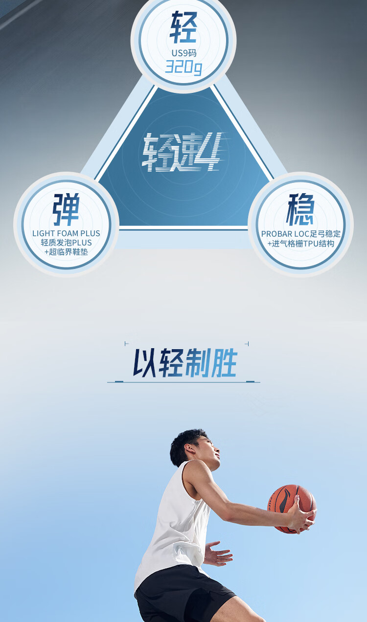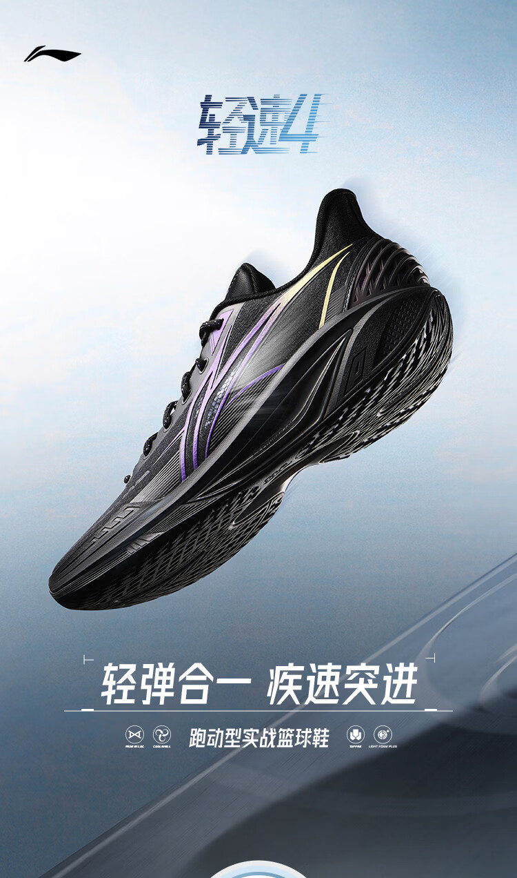 李宁轻速4 头盔丨男子26新款春夏季支撑稳定篮球场地鞋ABPW011