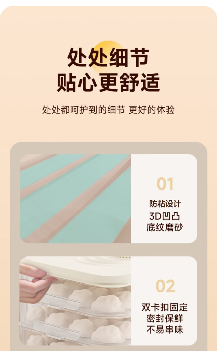 佳帮手饺子盒冰箱收纳盒食品级保鲜水饺馄饨冷冻存放分装盒专用托盘-3层