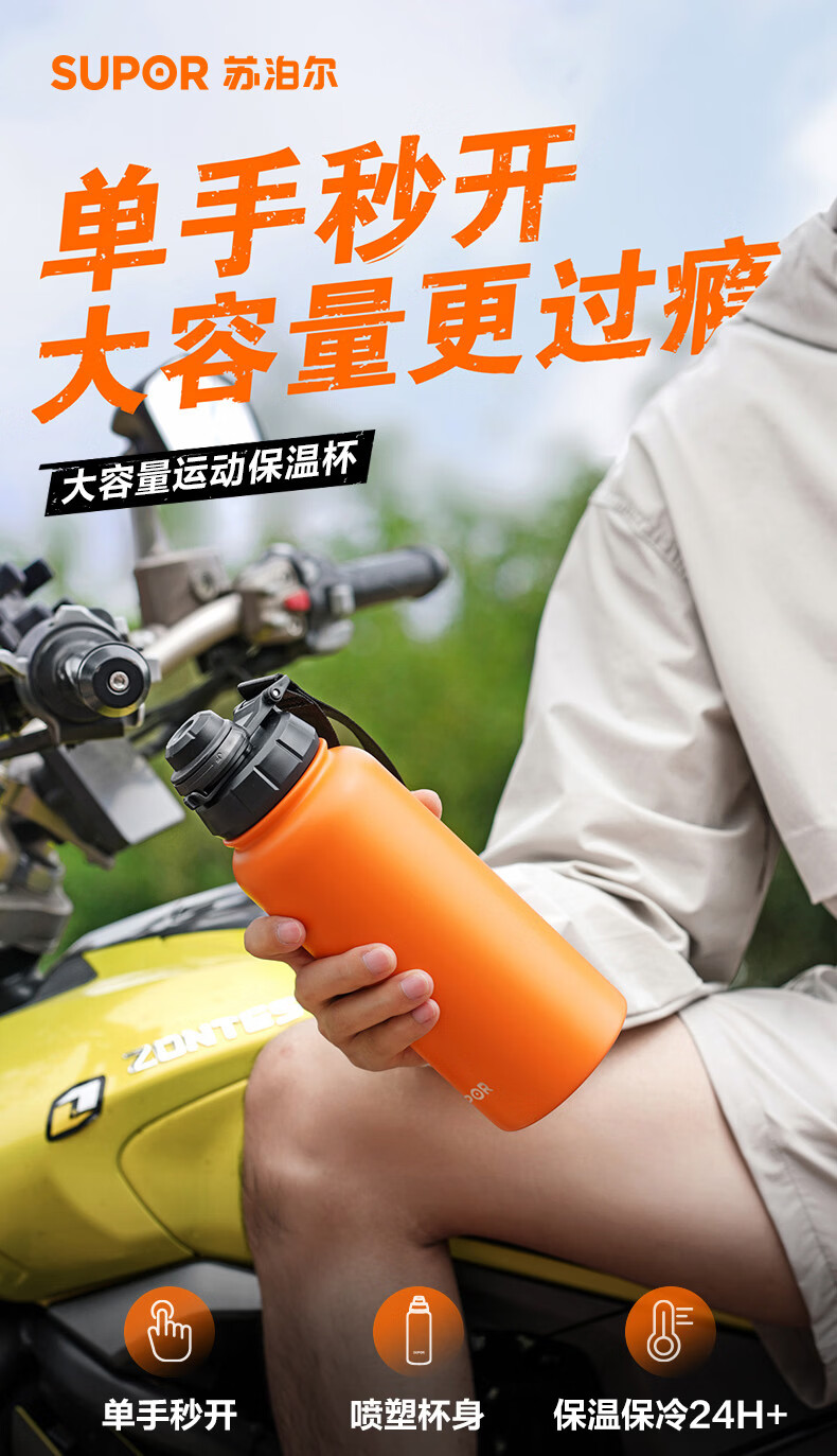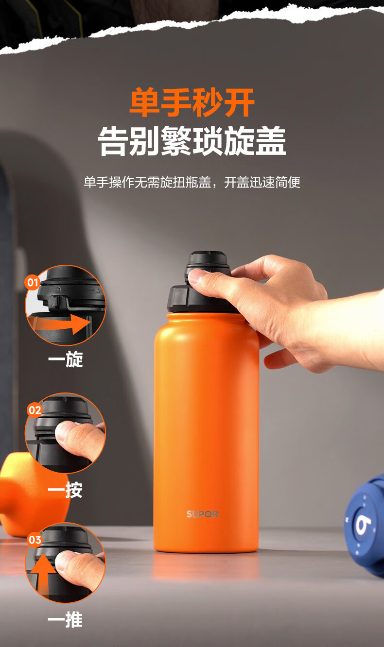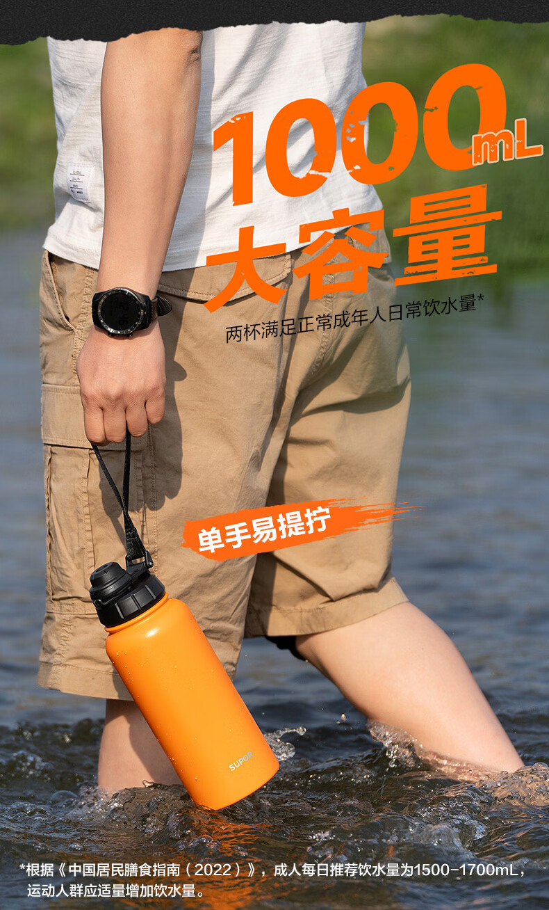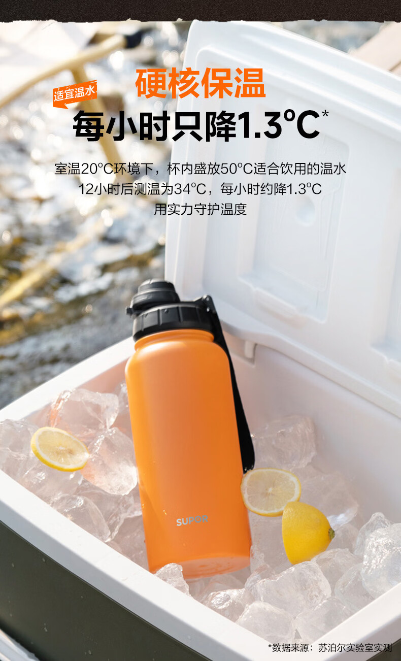 苏泊尔(SUPOR)大号保温杯超大容量男女士1000ml便携水杯子运动水杯316不锈钢 觉醒橙【保温保冷】1000ml