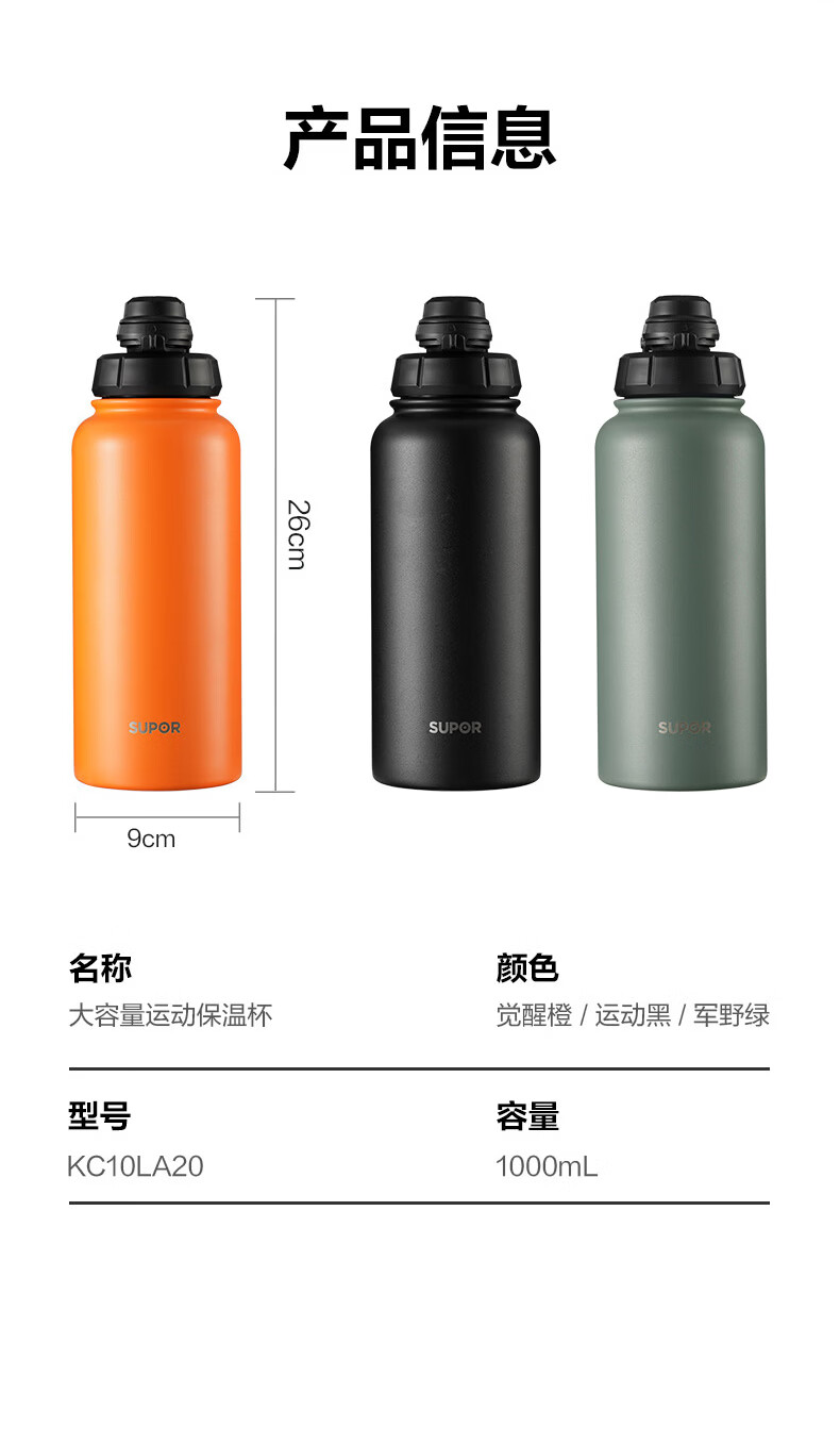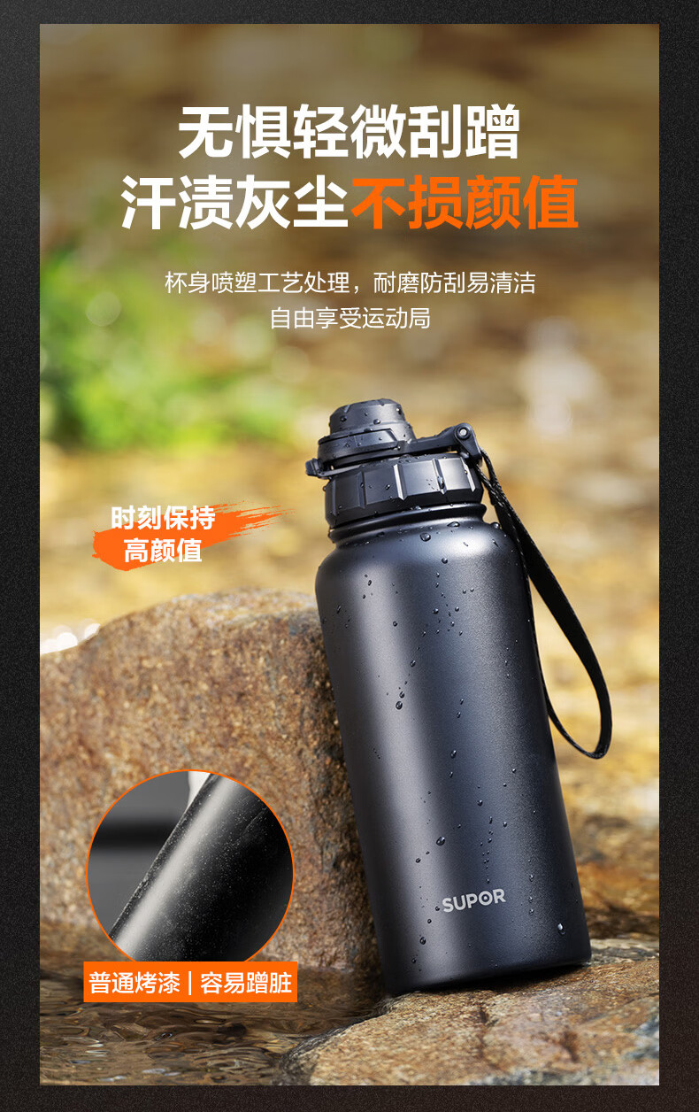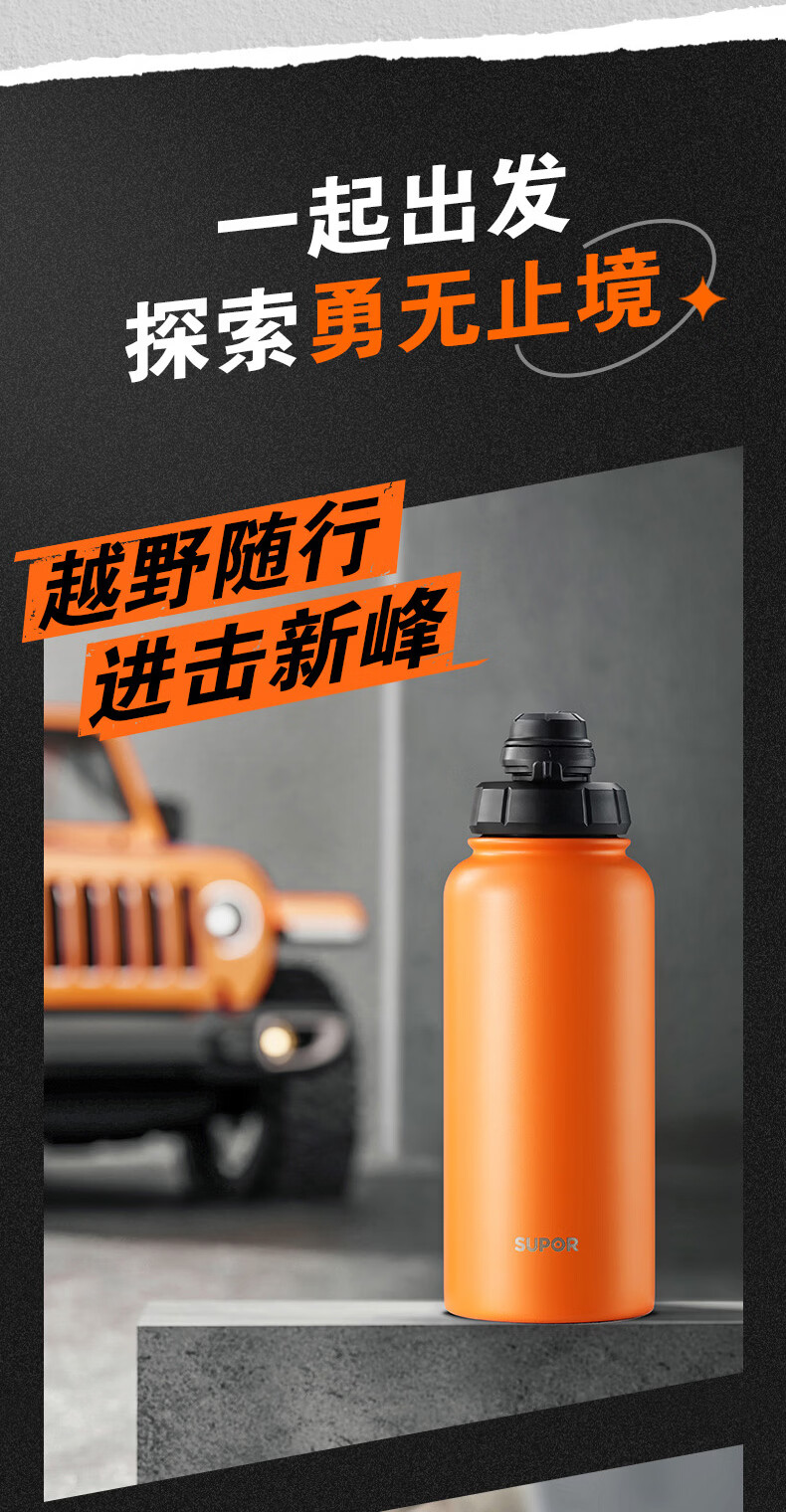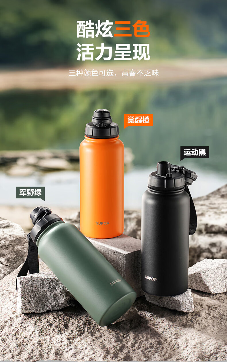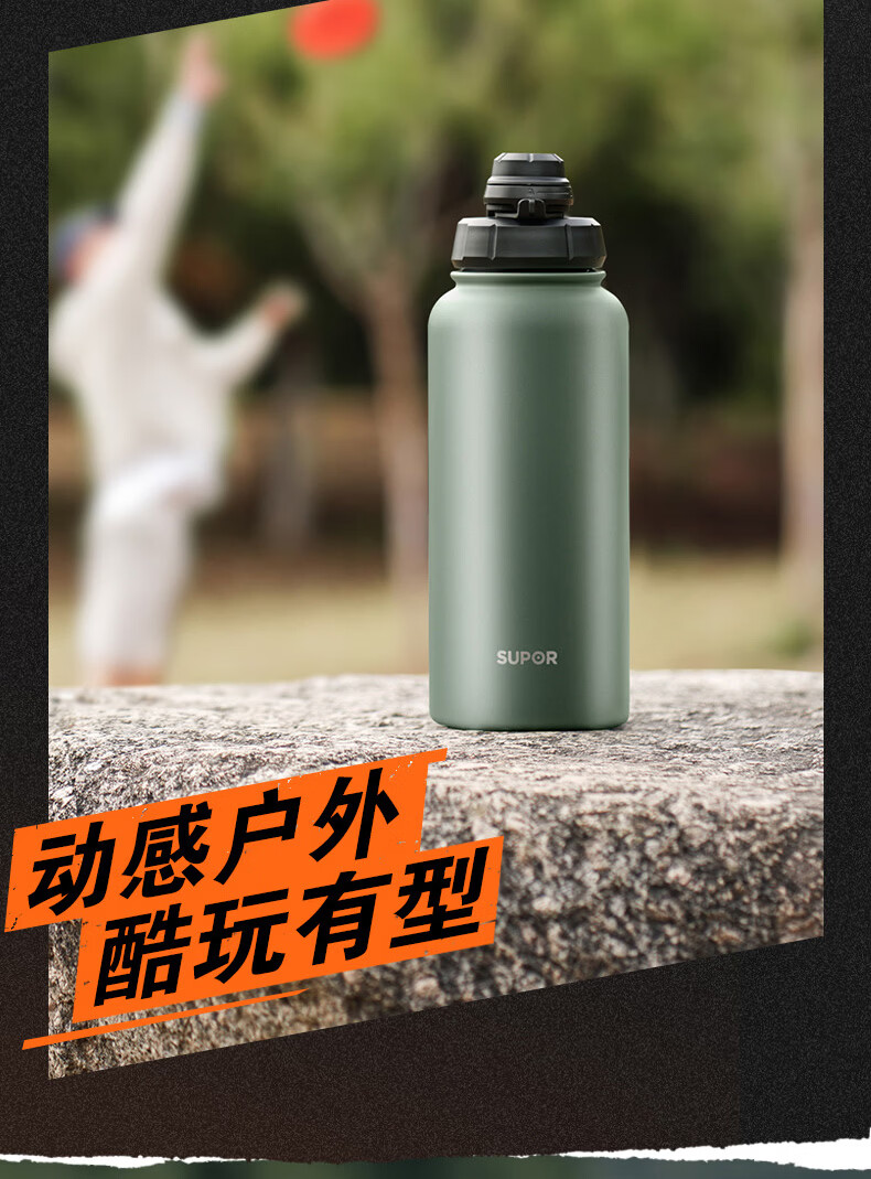 苏泊尔(SUPOR)大号保温杯超大容量男女士1000ml便携水杯子运动水杯316不锈钢 觉醒橙【保温保冷】1000ml