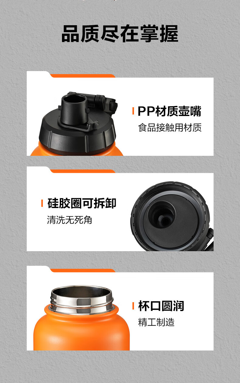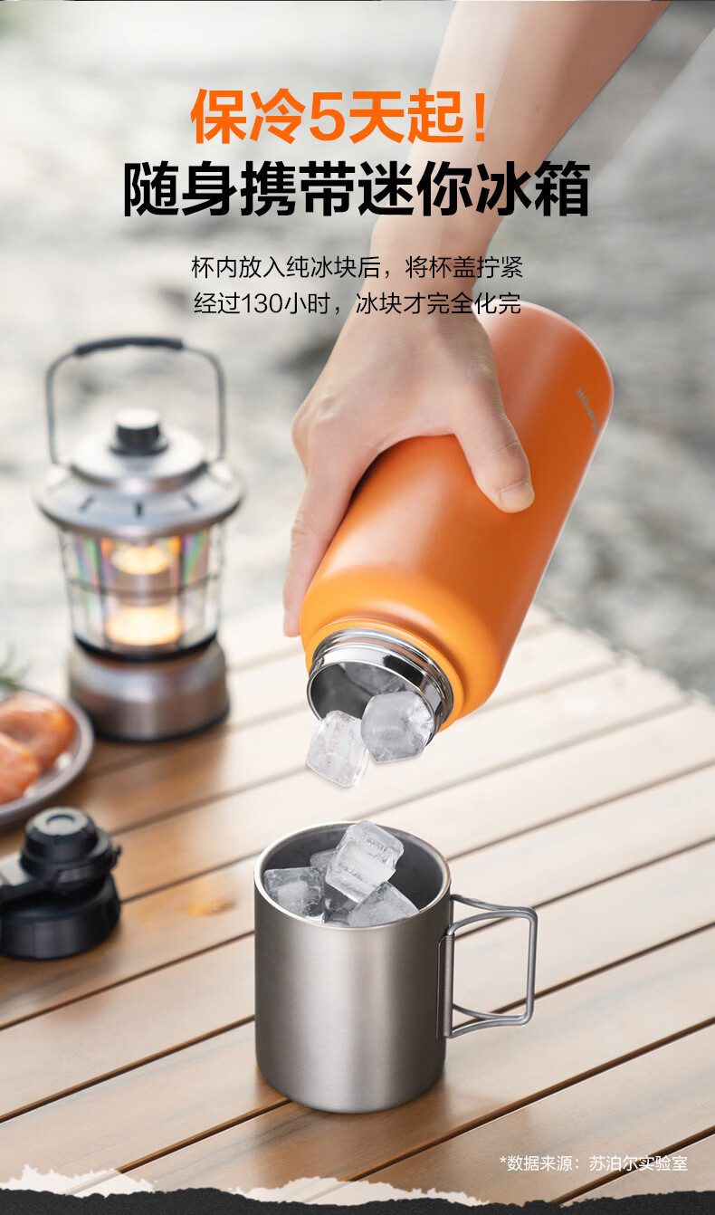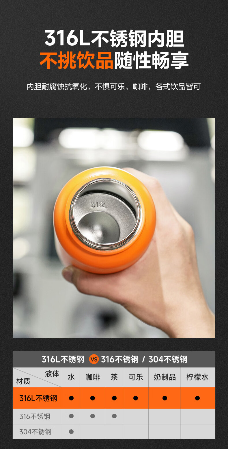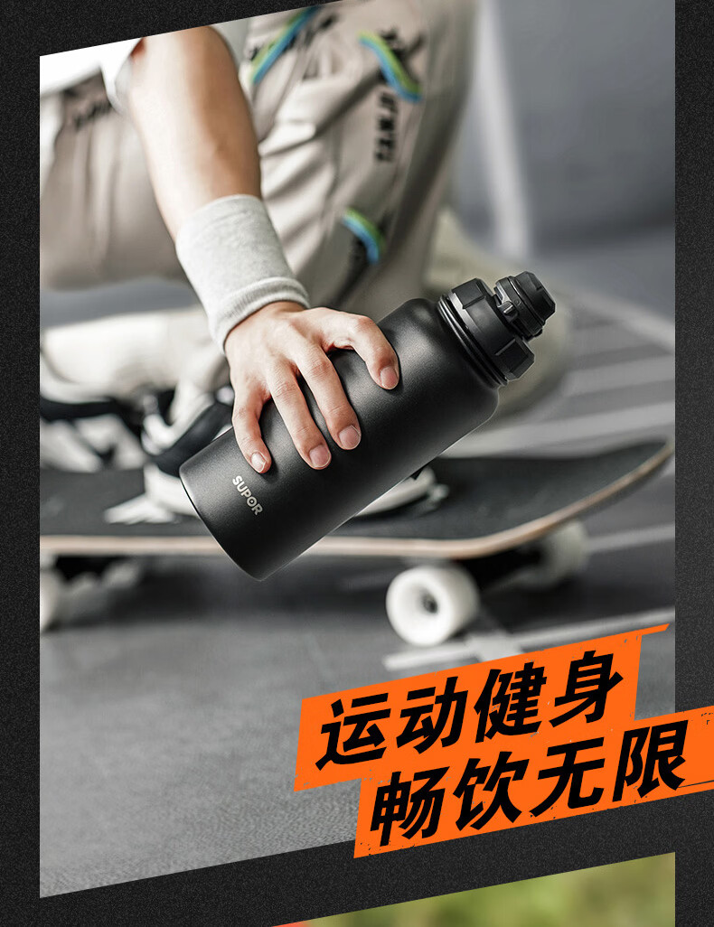 苏泊尔(SUPOR)大号保温杯超大容量男女士1000ml便携水杯子运动水杯316不锈钢 觉醒橙【保温保冷】1000ml