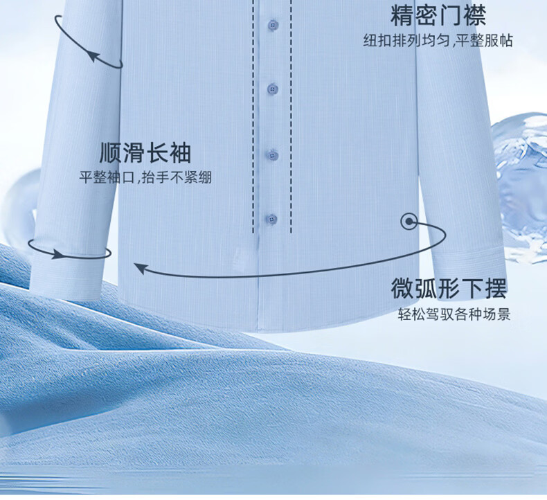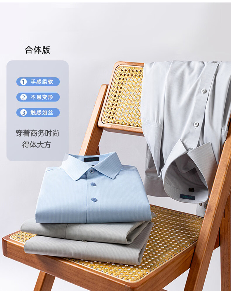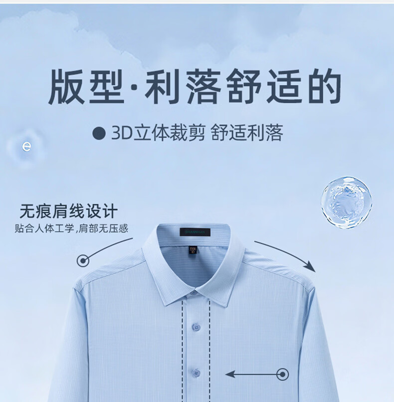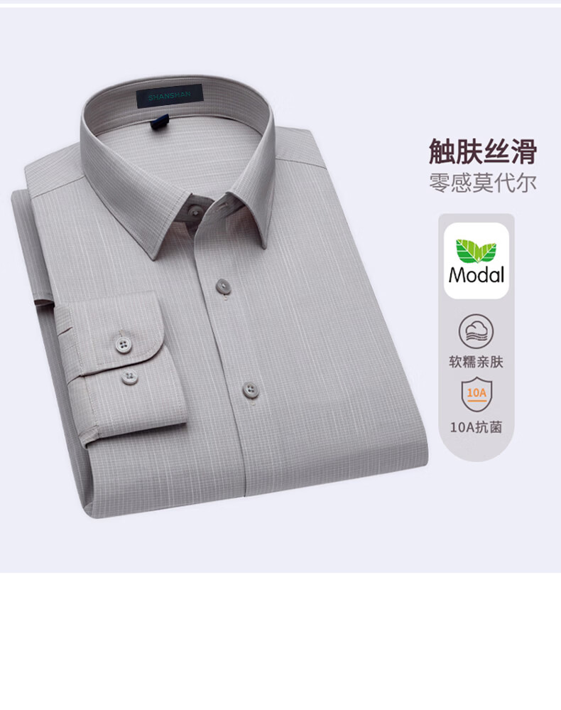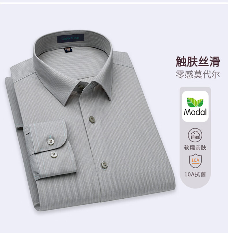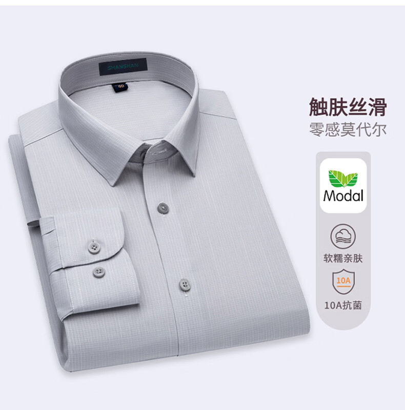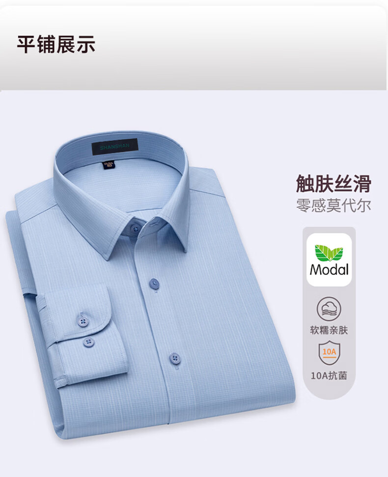 SHANSHAN杉杉【莫代尔+10A抗菌】长袖衬衫男春秋季商务时尚易打理男上衣 蓝色 38 /170