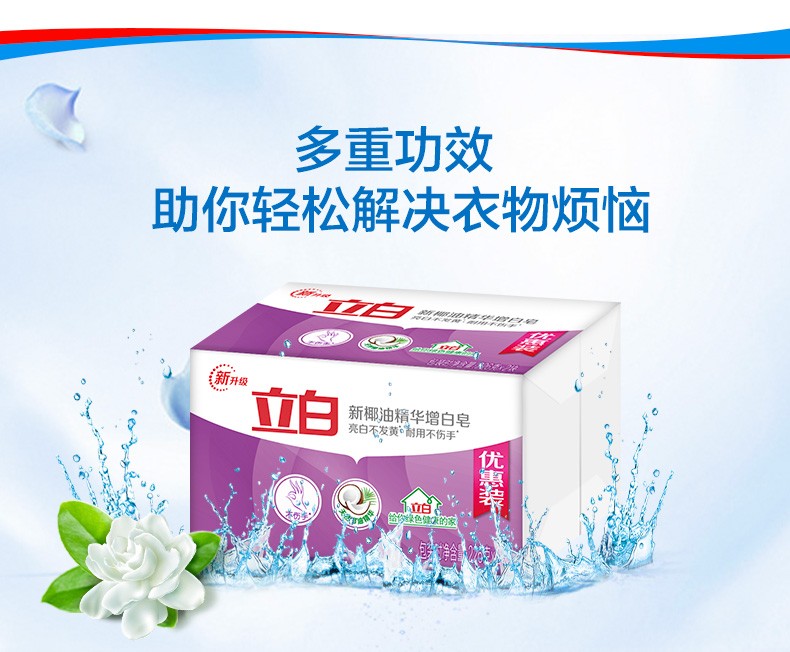 立白增白洗衣皂家用白色衬衫不发黄透明皂耐用实惠装白色袜子除菌肥皂 【10块围货装】椰油增白皂226g*10块