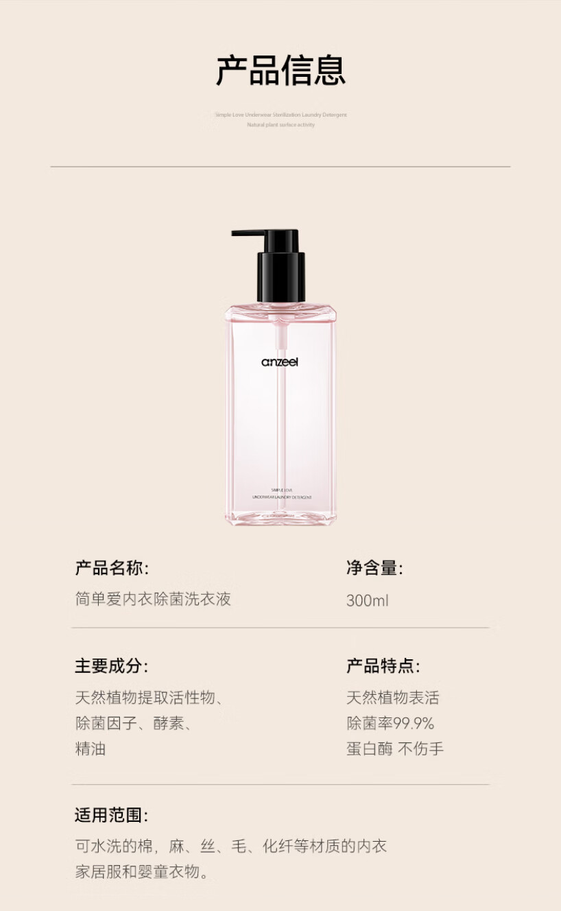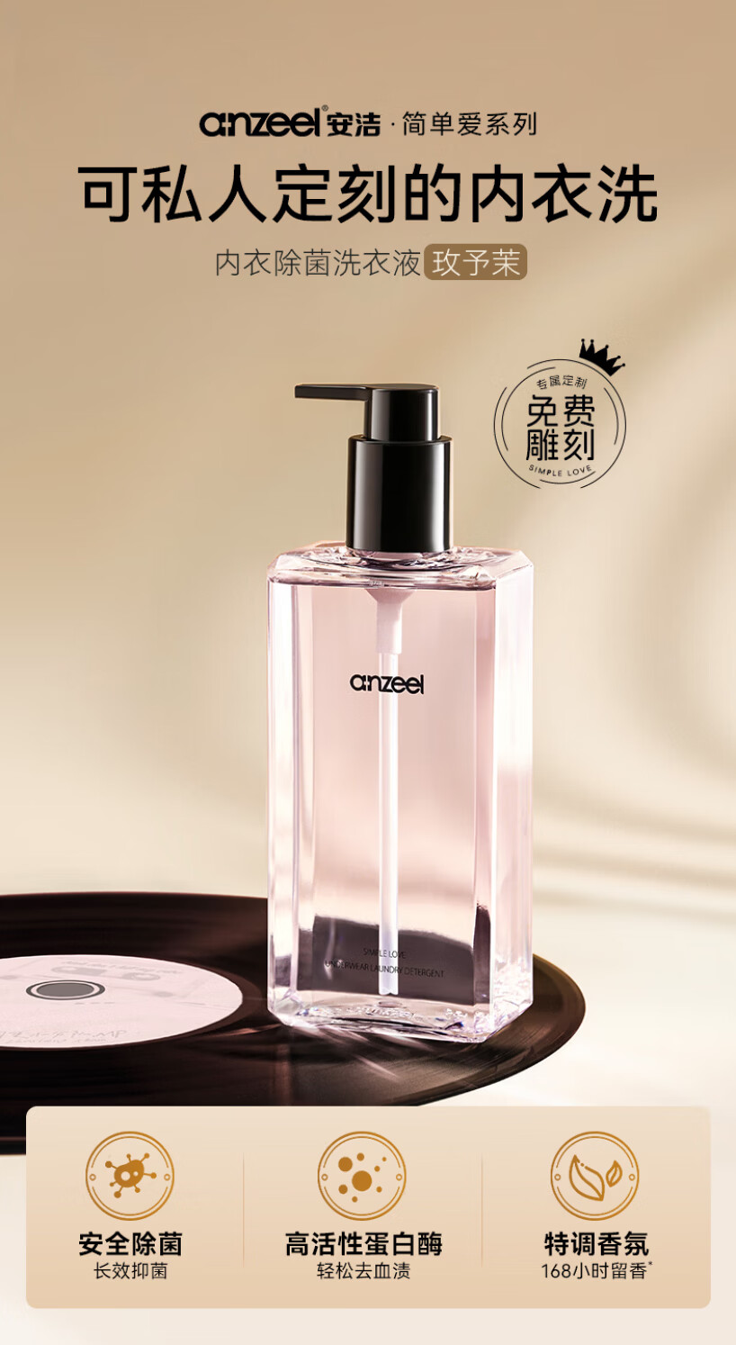安洁(Anzeel)内衣除菌洗衣液玫予茉300ml手洗内衣清洗液除菌去异味去血渍