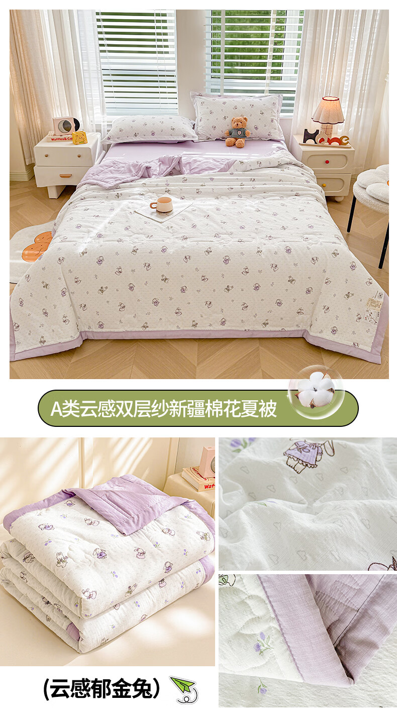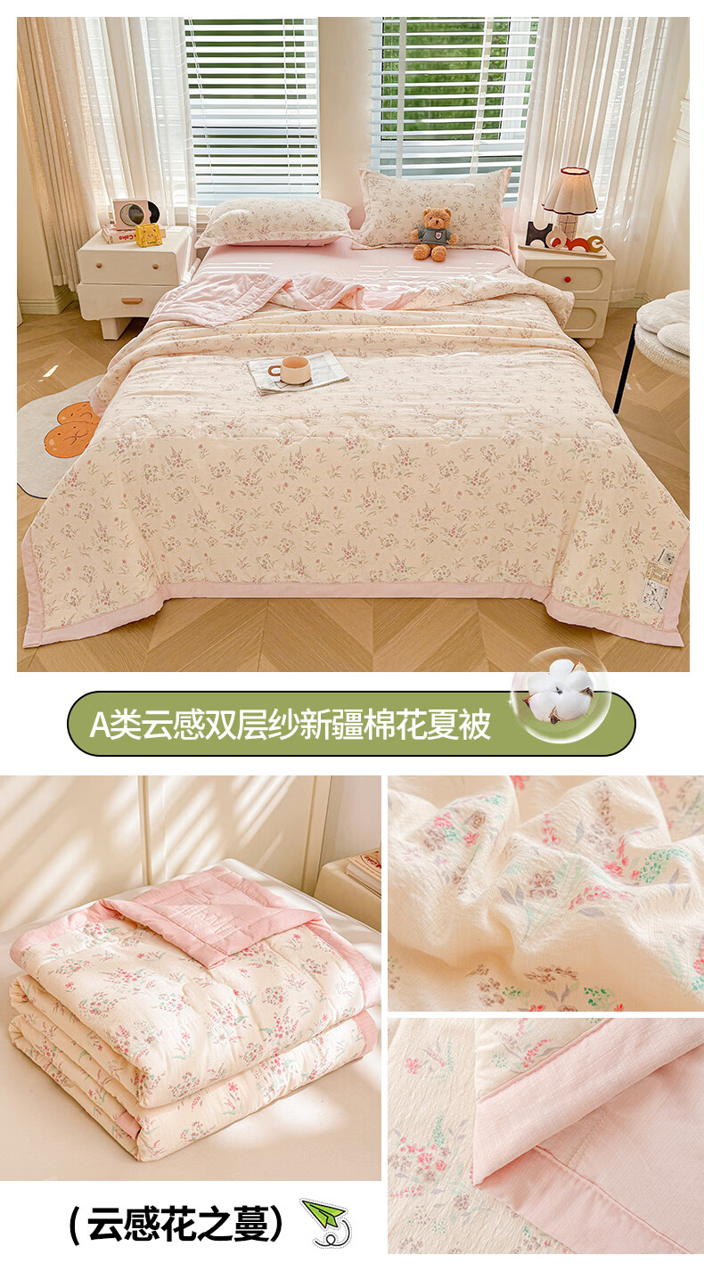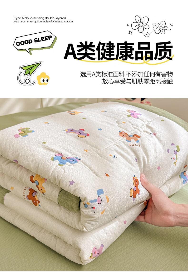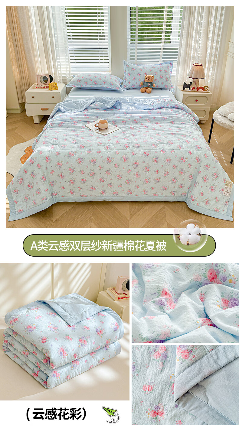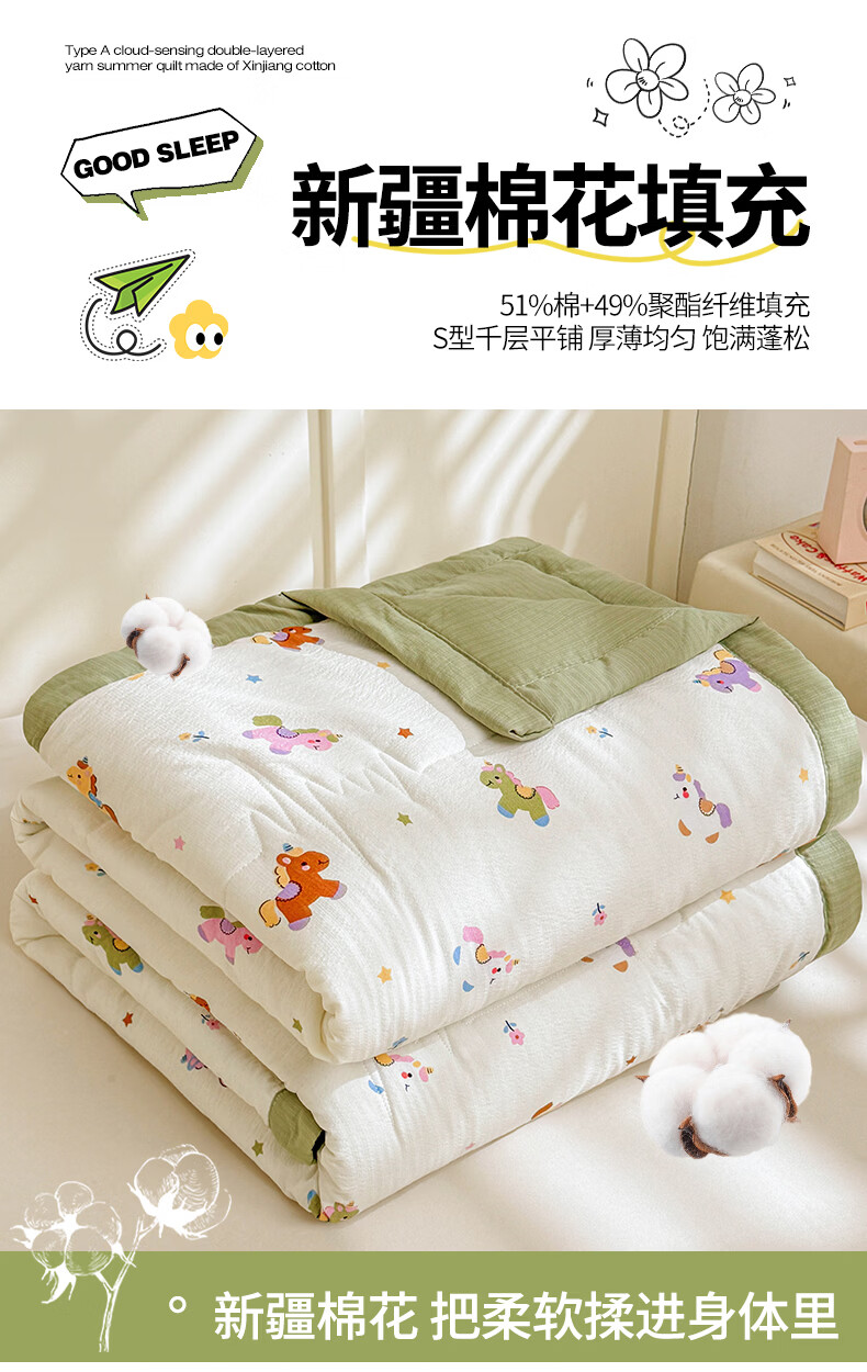 一默夏凉被空调被芯2026年A类新疆棉花夏被凉感被家纺春夏被芯薄被子 云感宝莉马 200x230cm