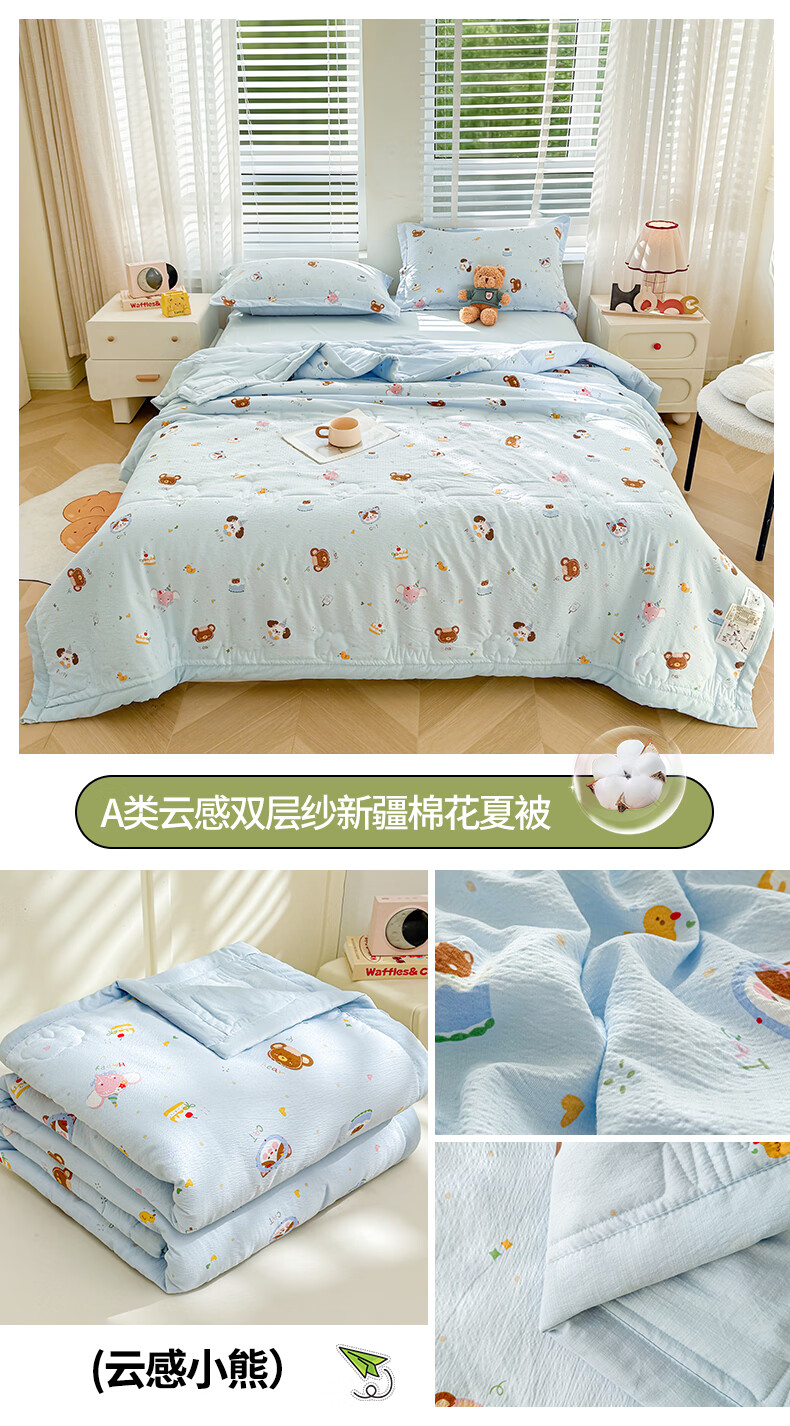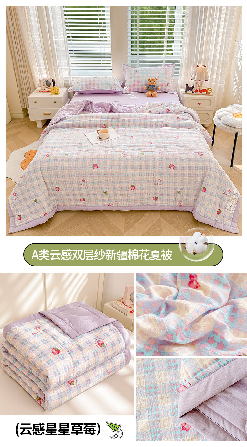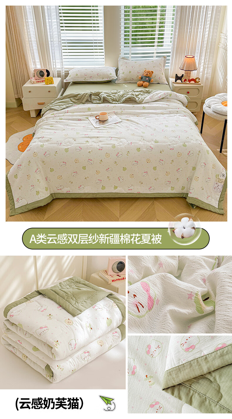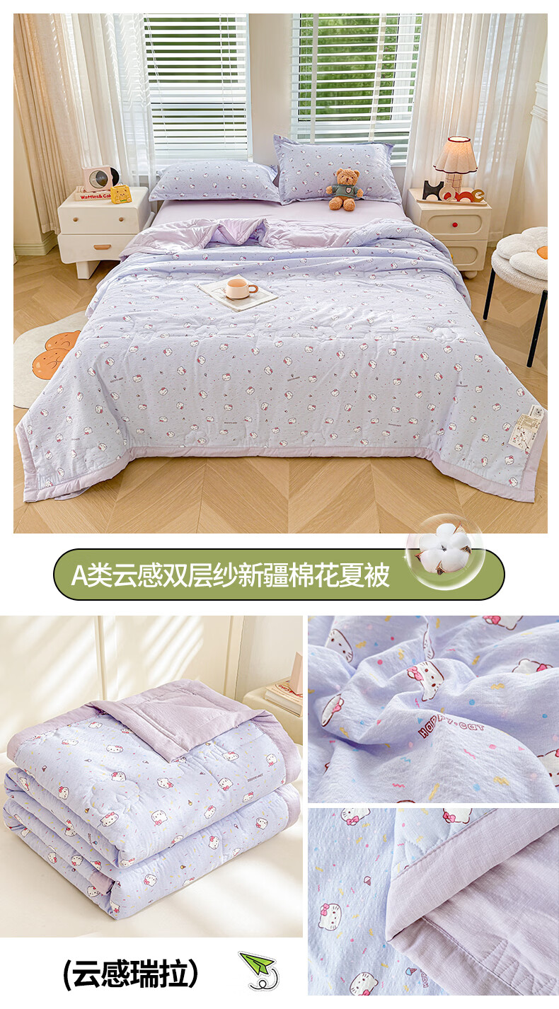 一默夏凉被空调被芯2026年A类新疆棉花夏被凉感被家纺春夏被芯薄被子 云感宝莉马 200x230cm