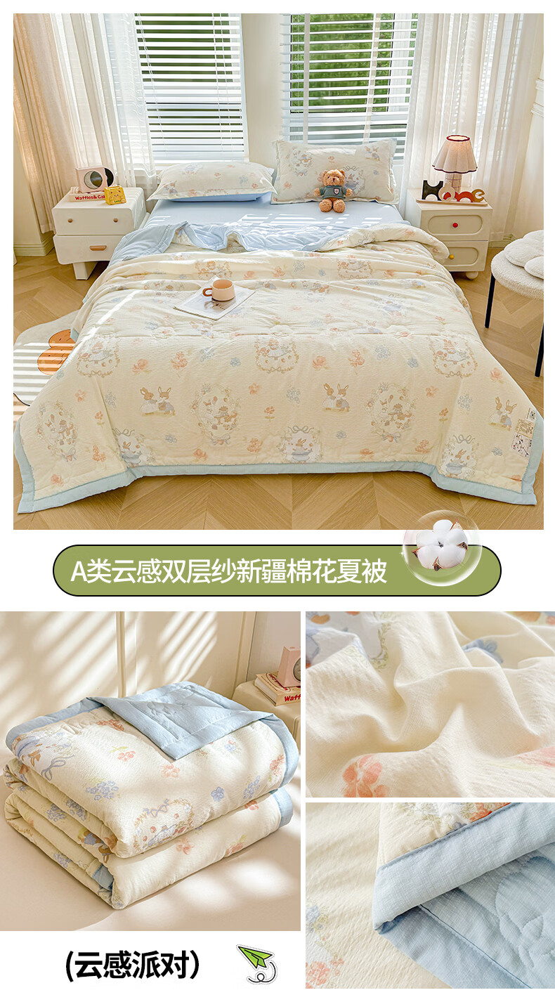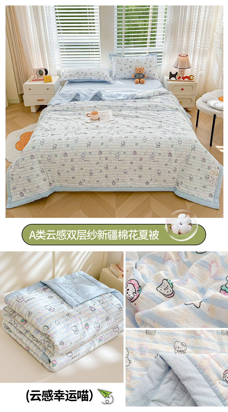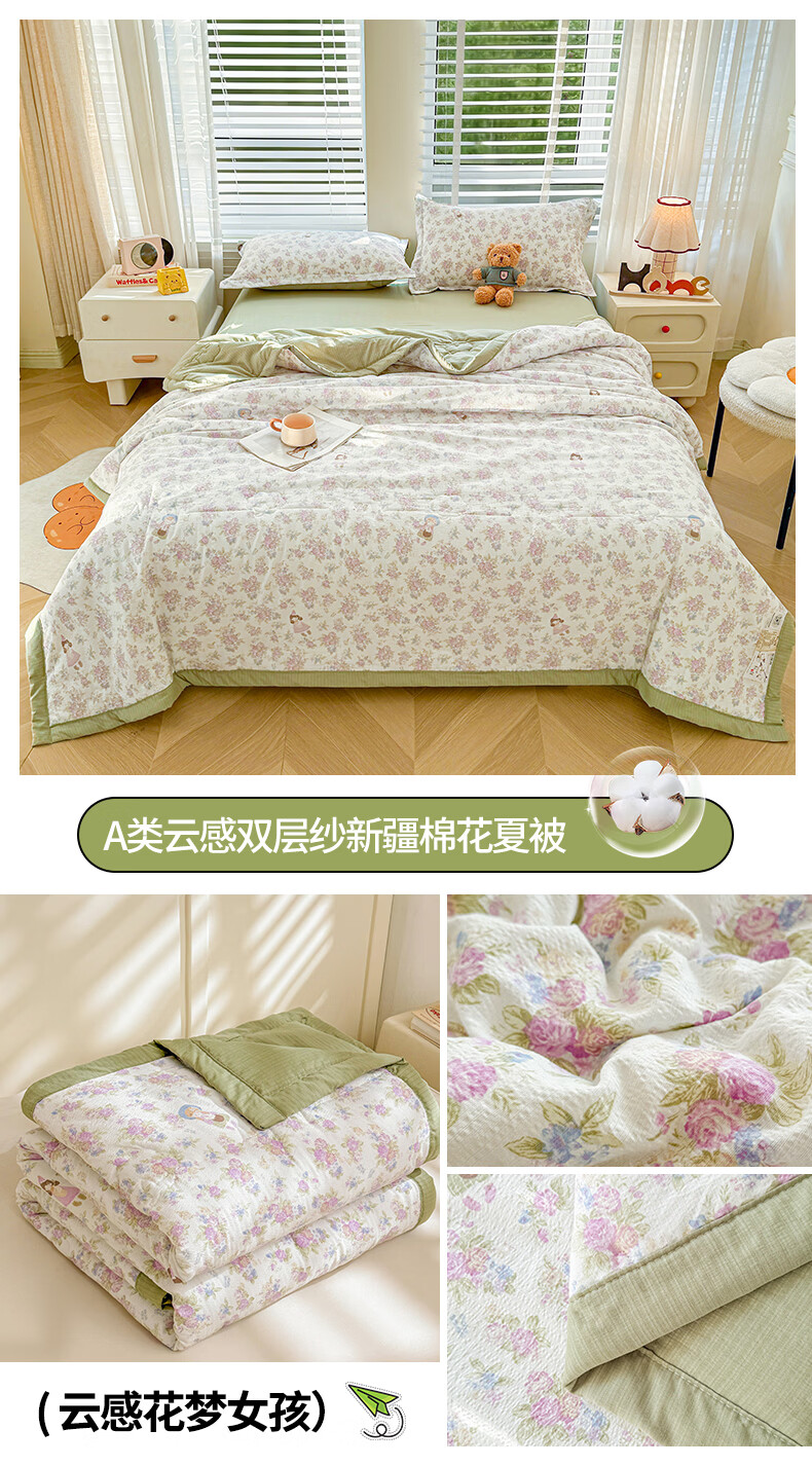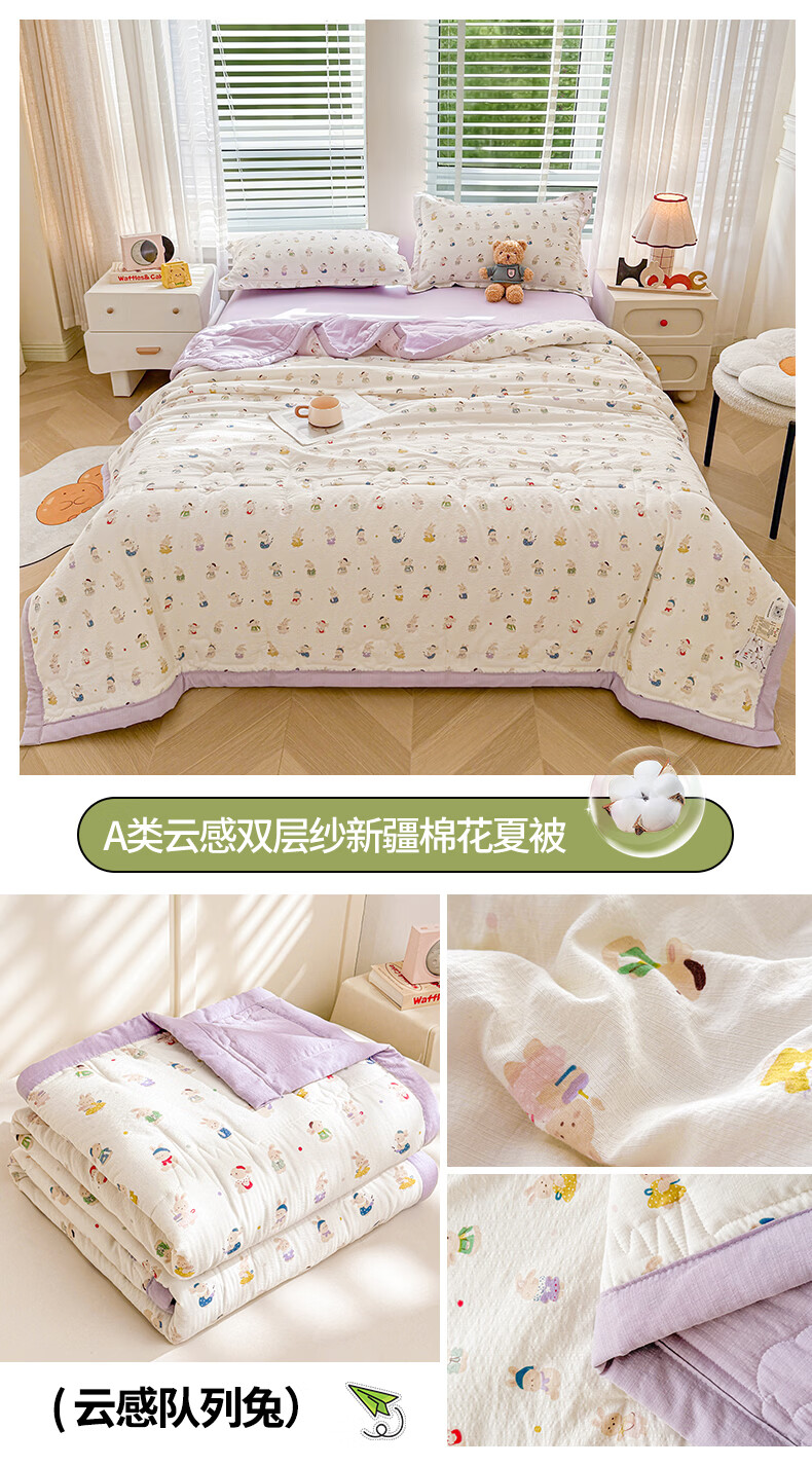 一默夏凉被空调被芯2026年A类新疆棉花夏被凉感被家纺春夏被芯薄被子 云感宝莉马 200x230cm