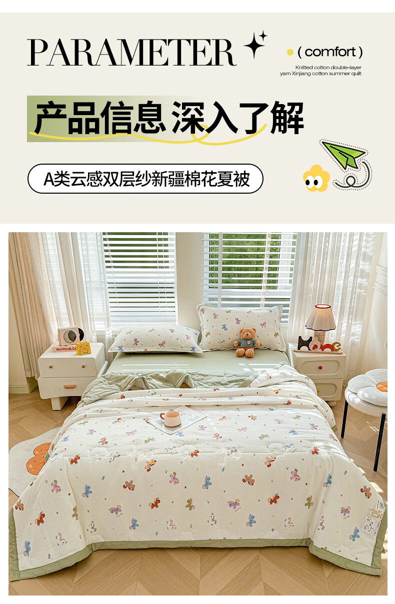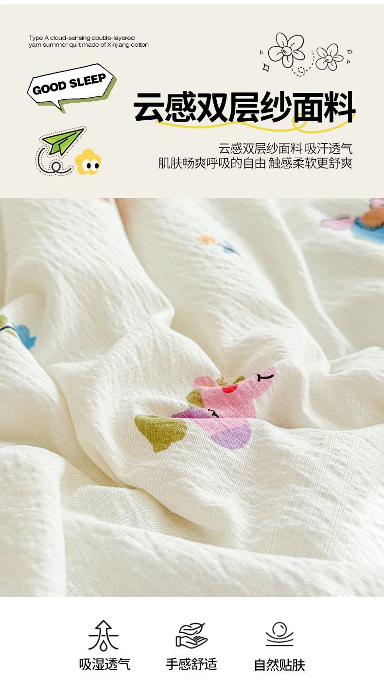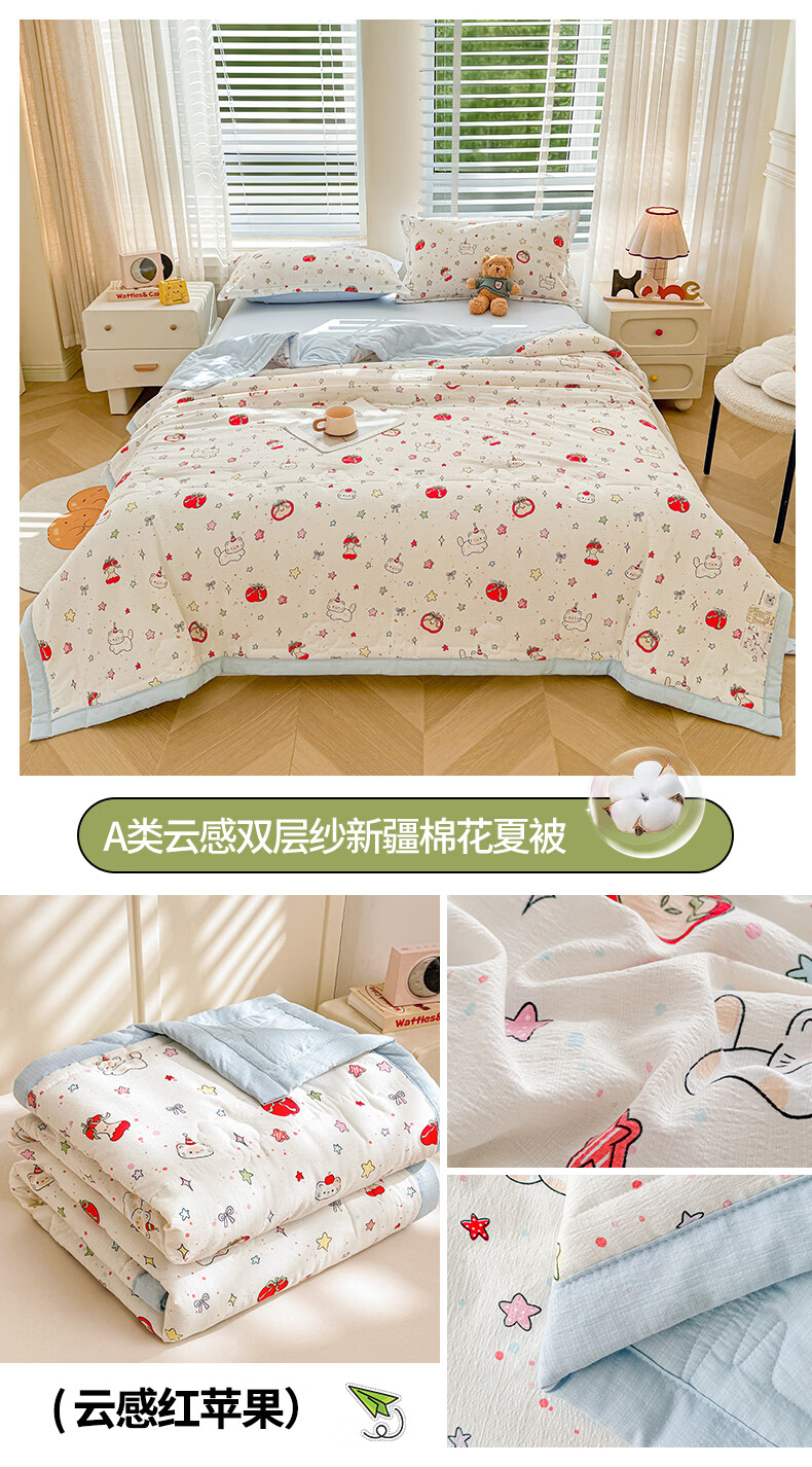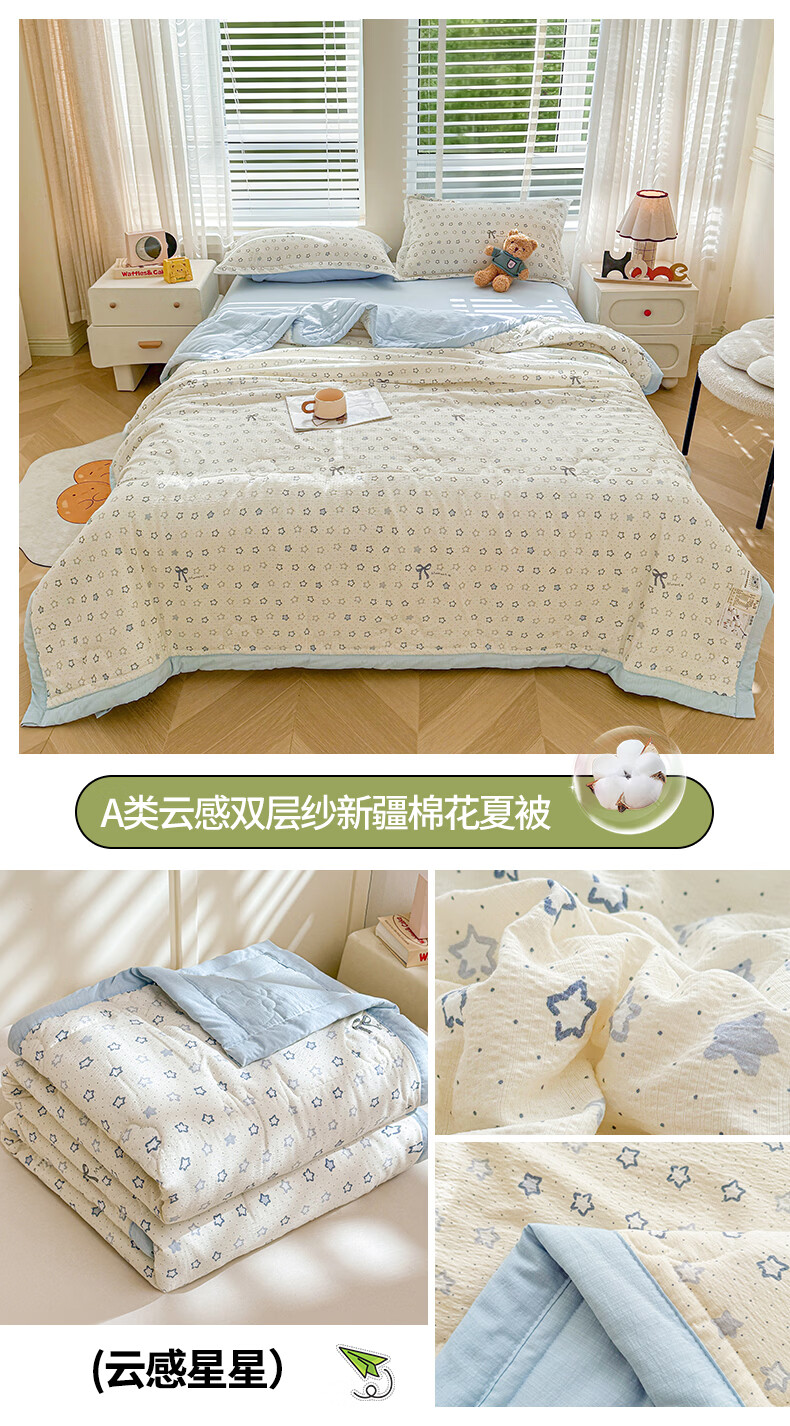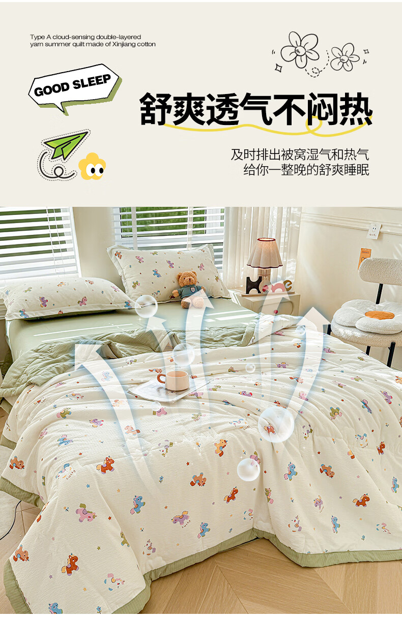 一默夏凉被空调被芯2026年A类新疆棉花夏被凉感被家纺春夏被芯薄被子 云感宝莉马 200x230cm