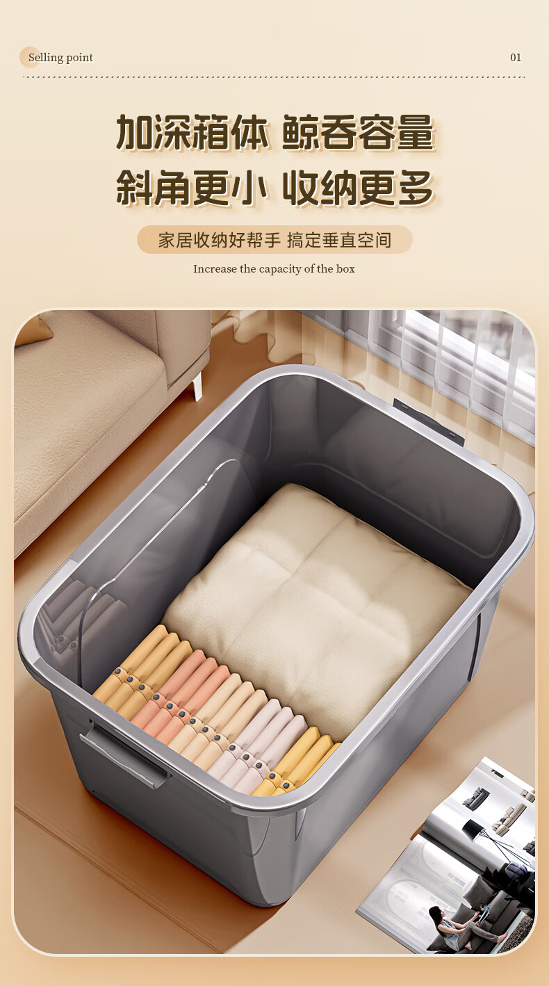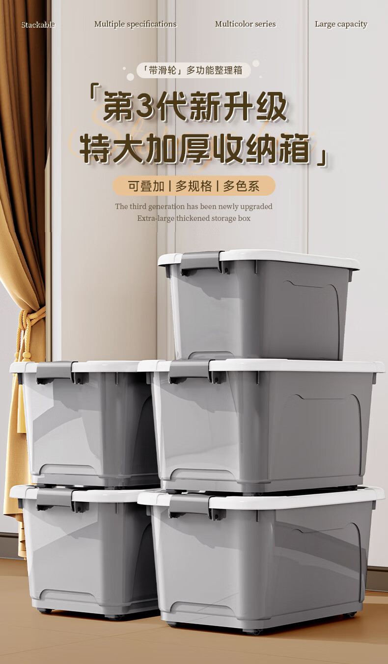 纳份爱塑料收纳箱特大号衣物衣服整理箱宿舍搬家打包箱车载杂物储物箱子 太空灰【新升级特大加厚】 【超值3只装】38*27*20