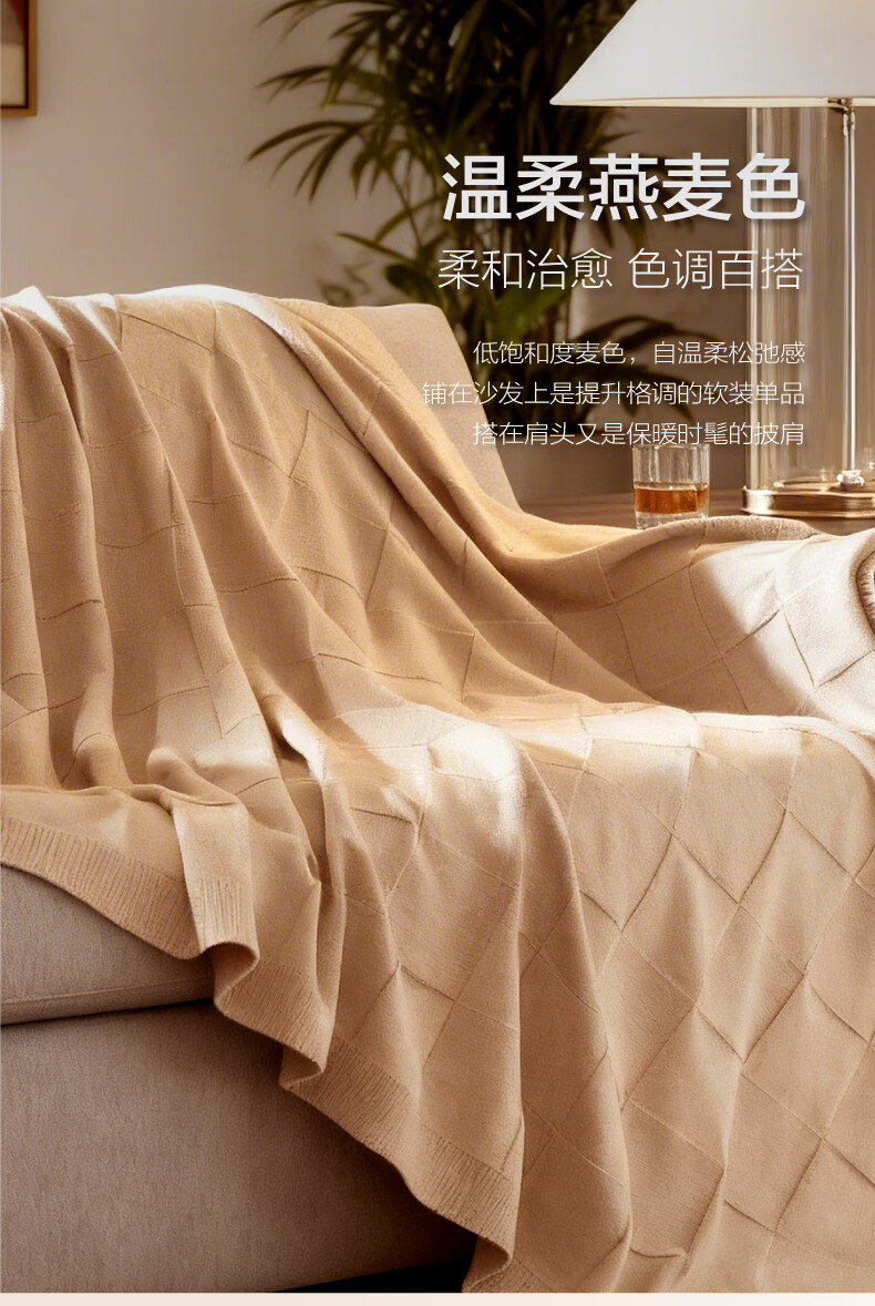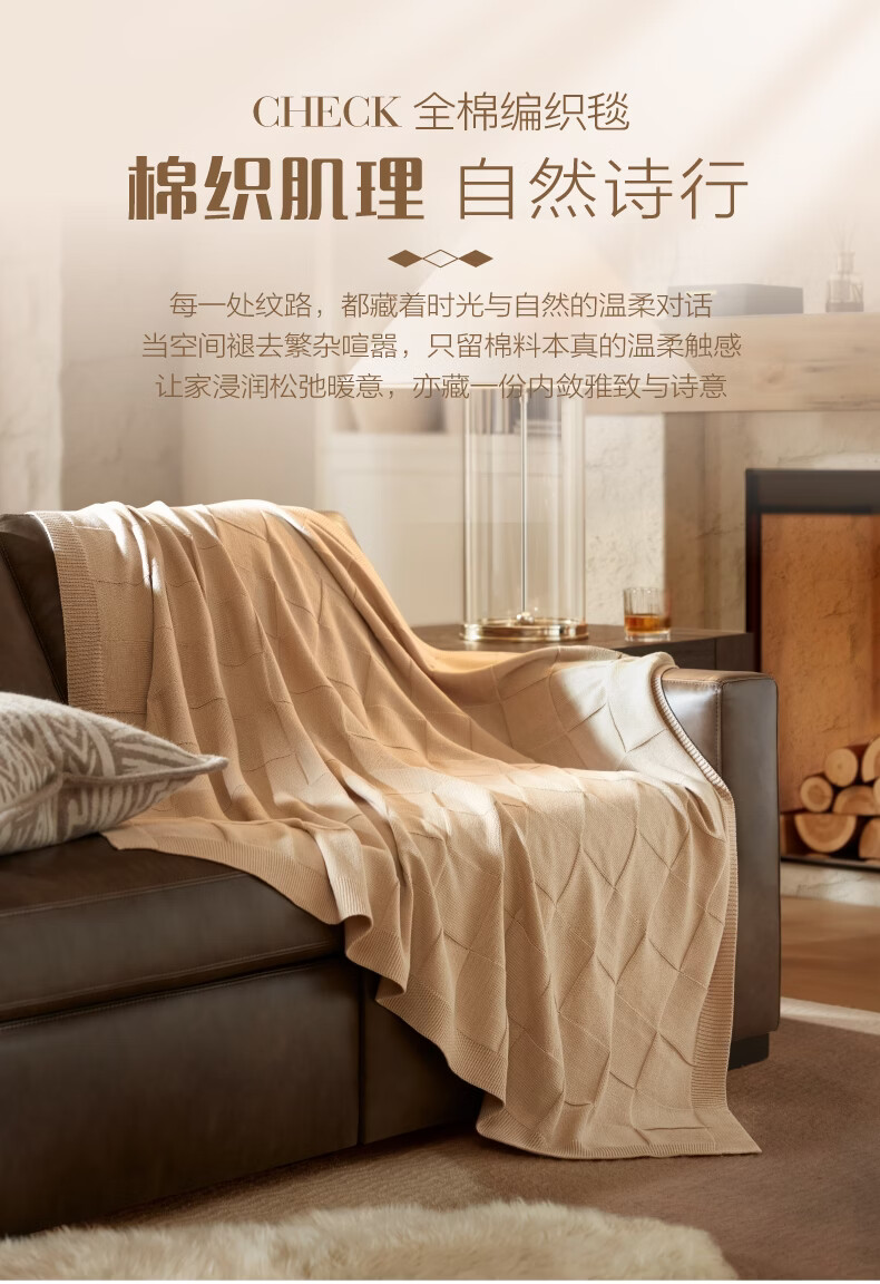 Harbor House全棉针织盖毯家居办公室沙发披毯午休毯露营毯时尚休闲睡眠毯子 Check 全棉编织披毯 152cm*127cm