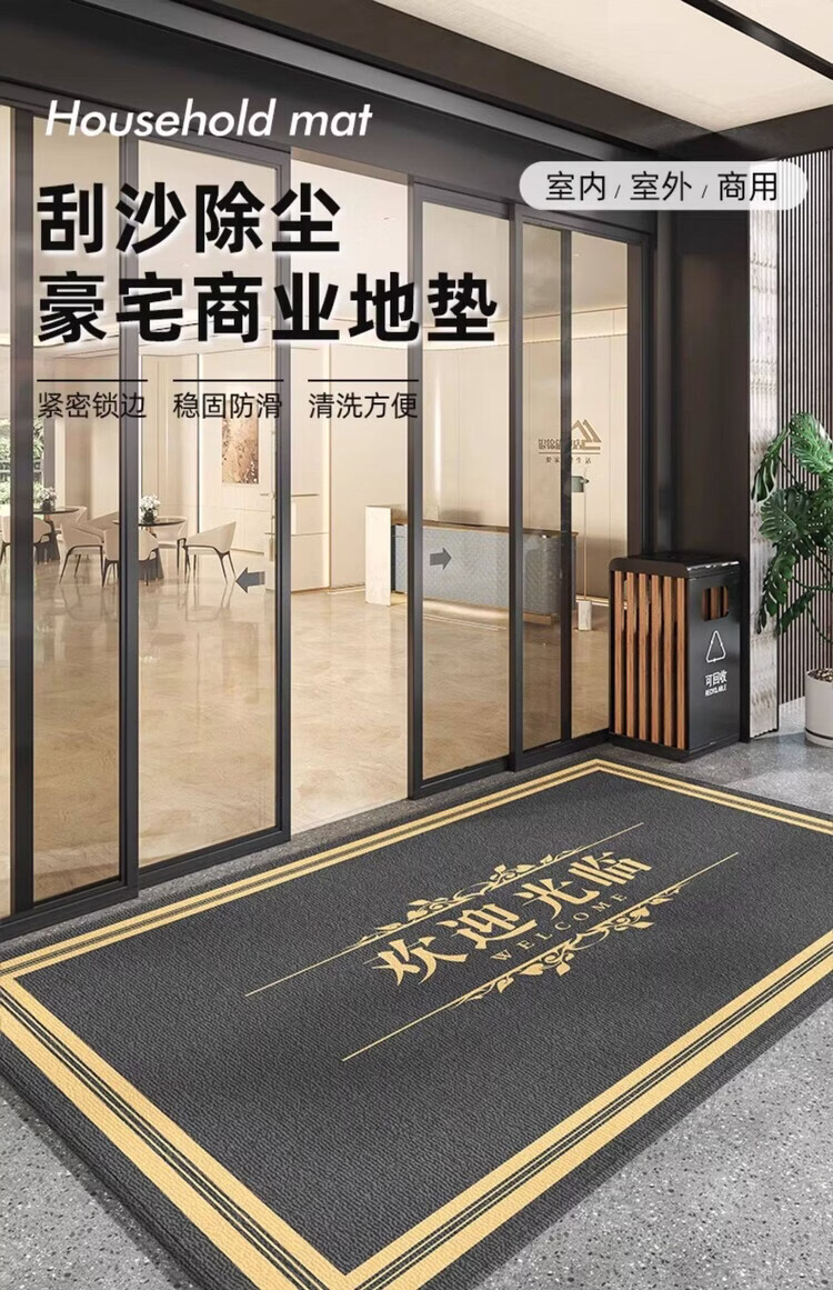 像素欢迎光临门垫商用酒店大门口防滑地垫入户门迎宾进门地毯定制logo 16620-欢迎光临灰 140cm*160cm(轻松好打理)