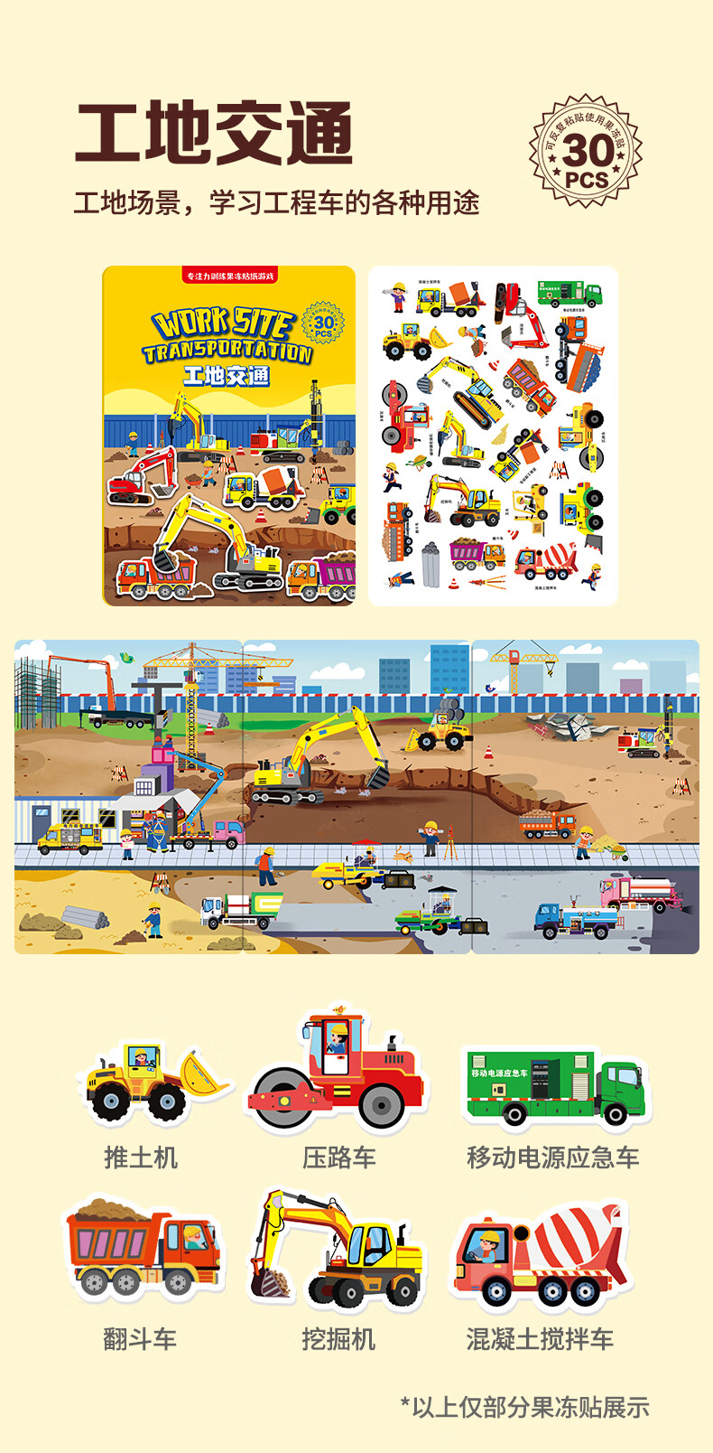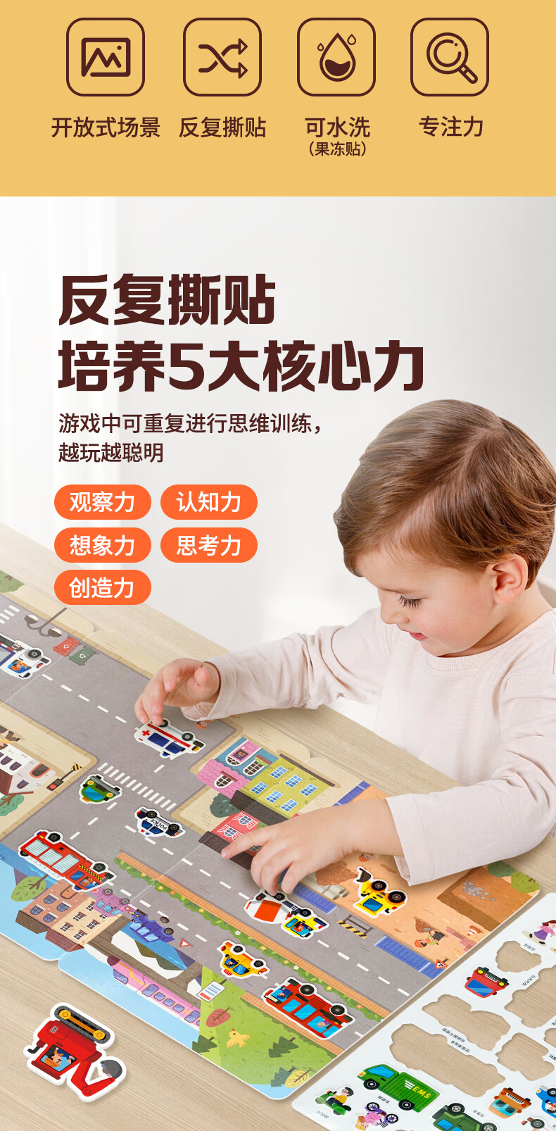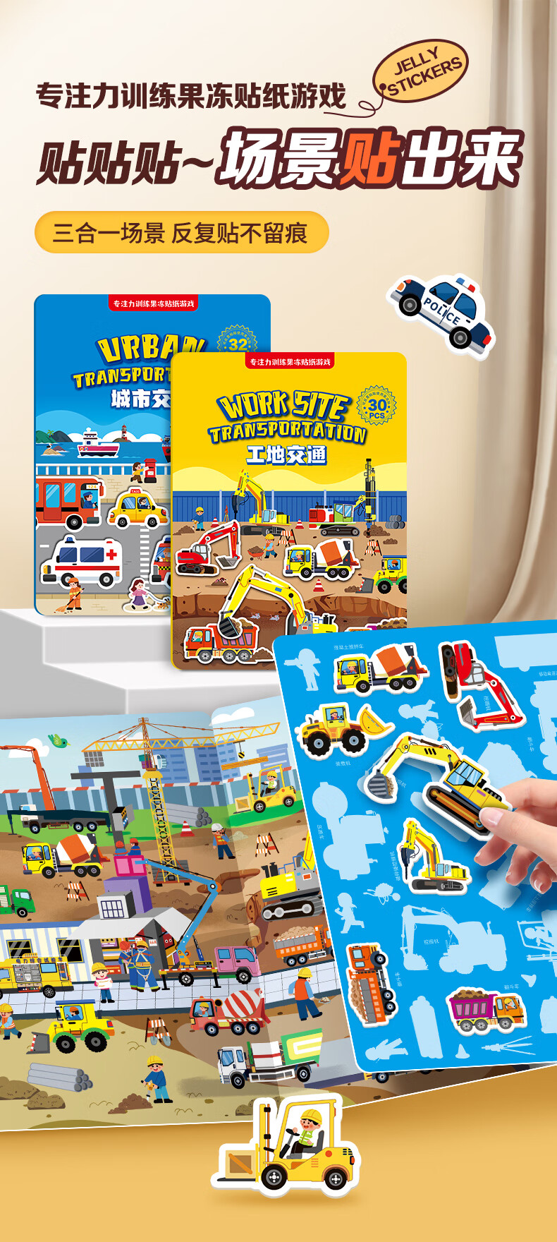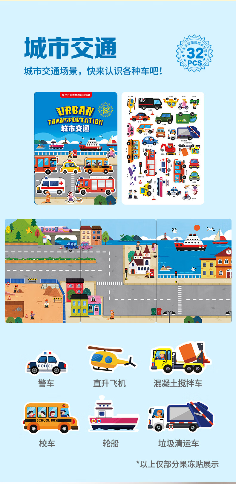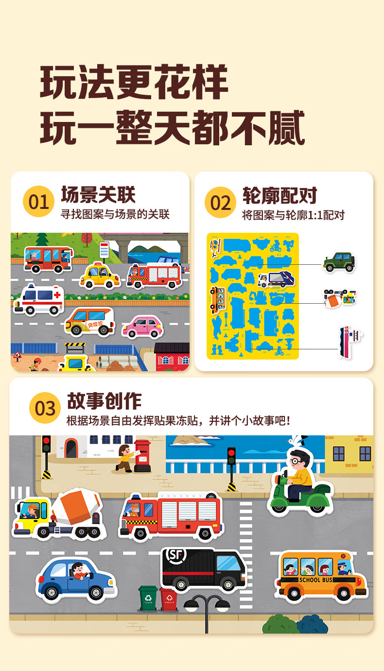 大眼小娃城市汽车35片 儿童果冻贴纸书贴画早教玩具3-6岁男女孩生日礼物