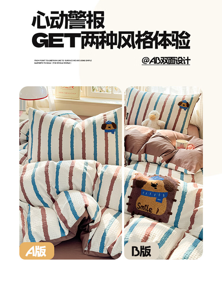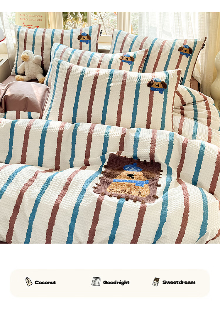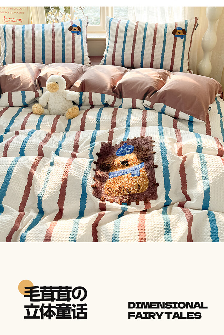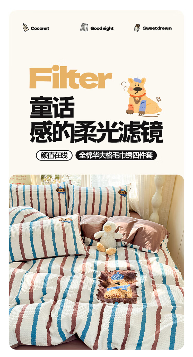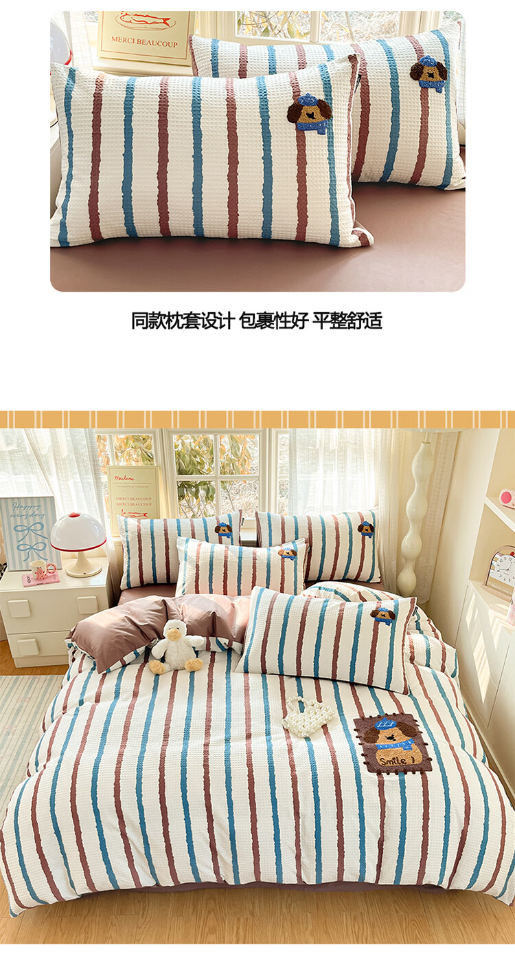 无印良品华夫格全棉毛巾绣被套四件套纯棉床单被罩学生宿舍三件套床上用品 光遇【100%纯棉 可水洗机洗】 1.8m 床单款 四件套-被套200x230cm