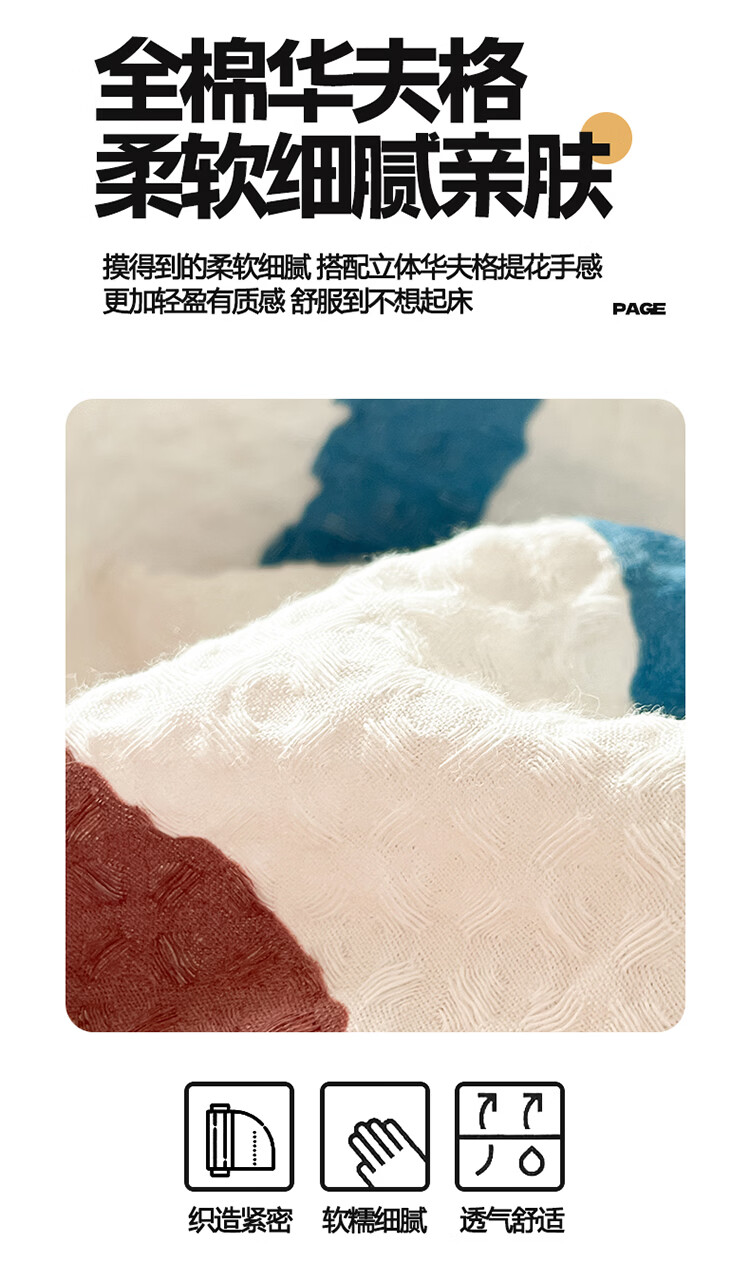 苏萱2026新款全棉纯棉华夫格夏被四件套夏季夏凉被空调被可机洗单双人 简森兰 单人夏被-150*200cm