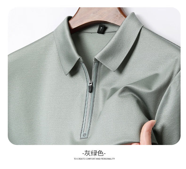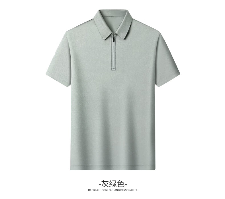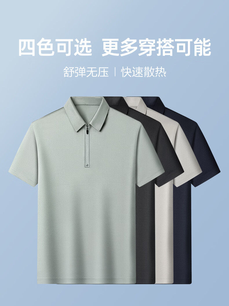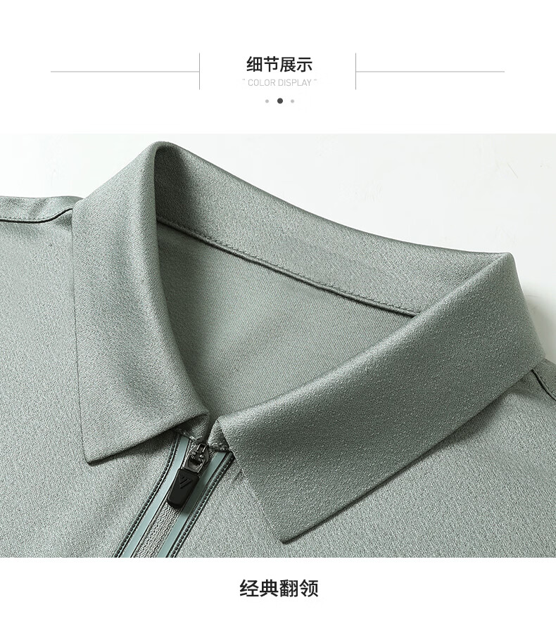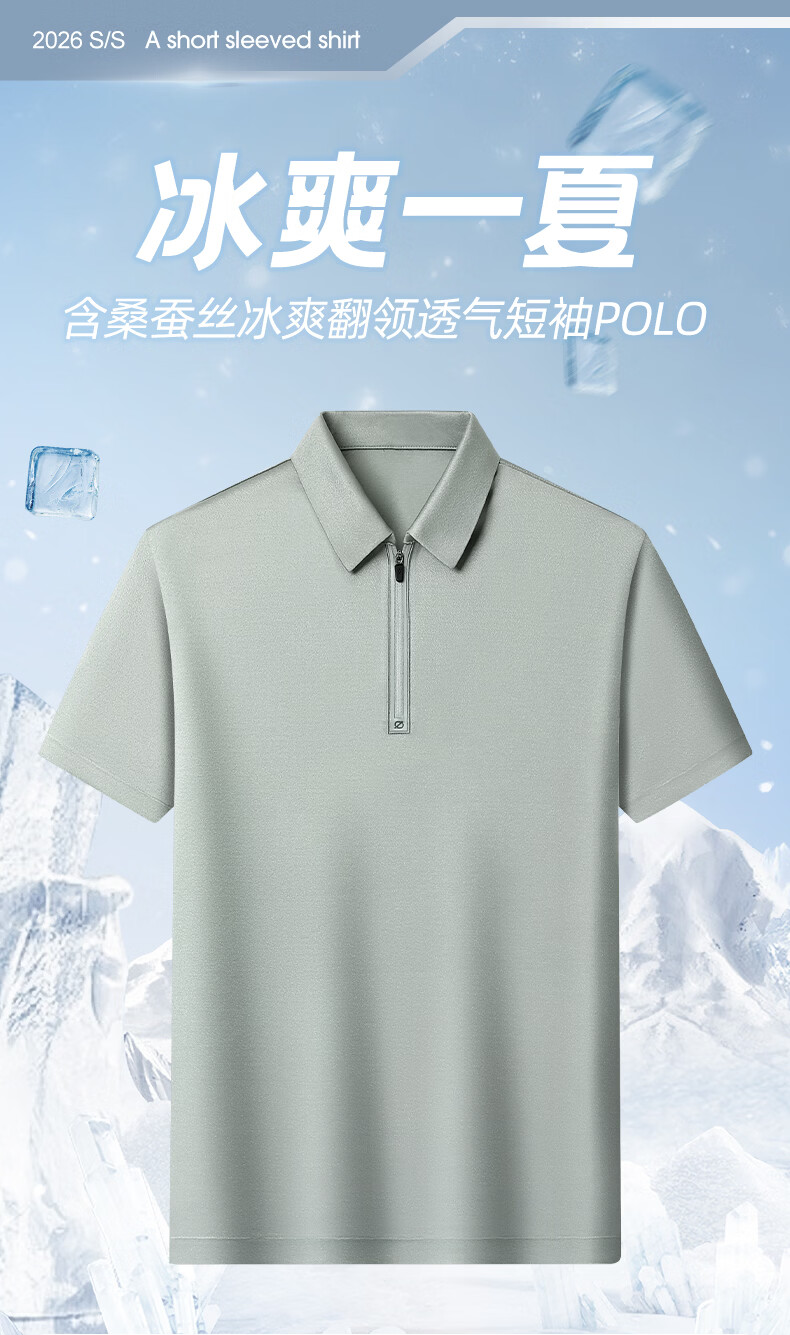 SHANSHAN杉杉【莱赛尔半拉链】短袖t恤男休闲百搭翻领POLO衫夏季新款 灰绿色 S /165