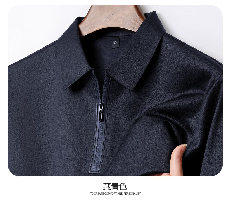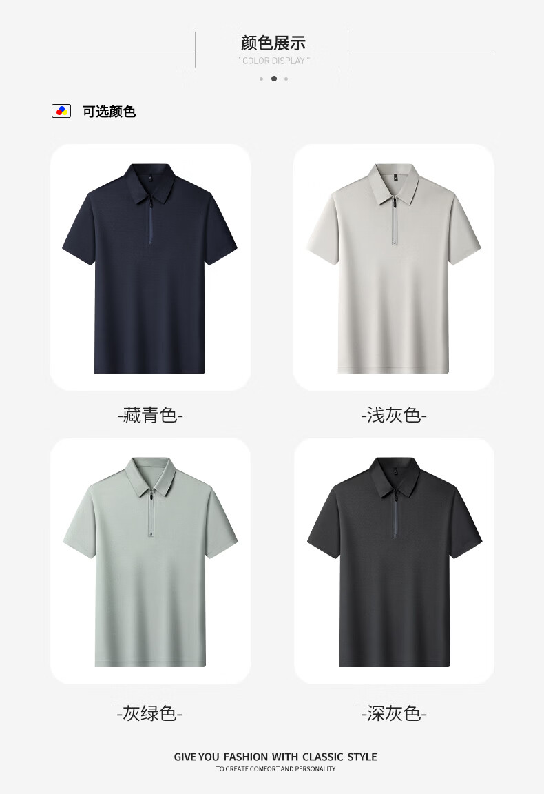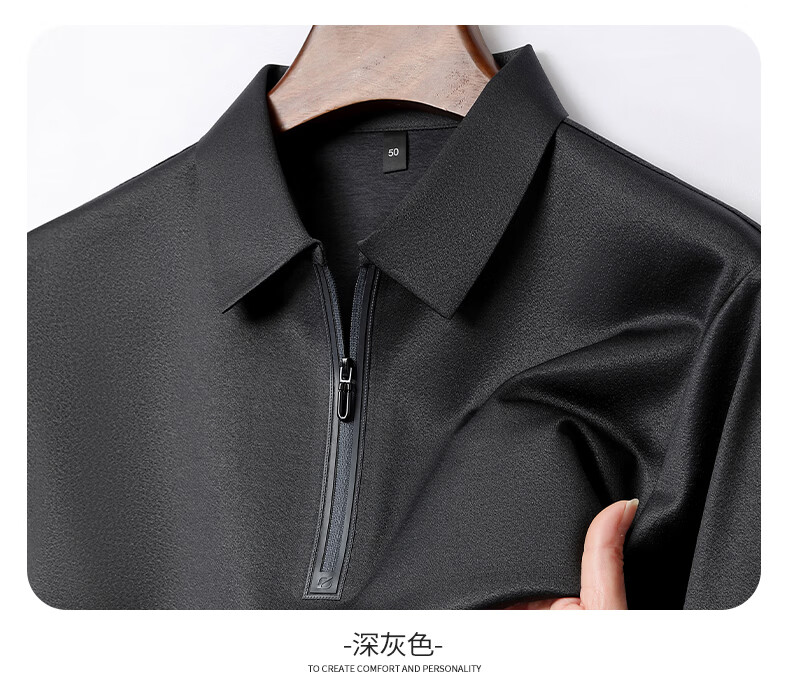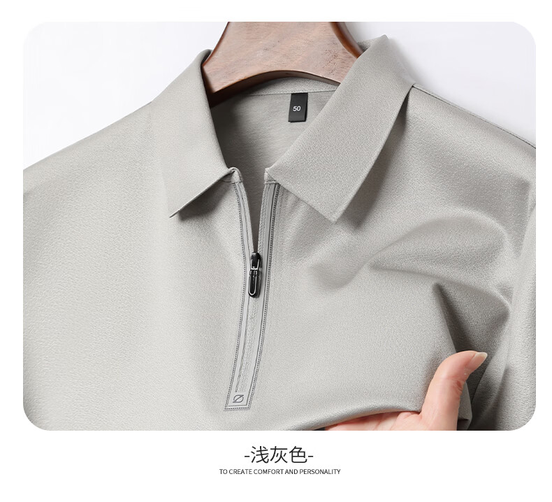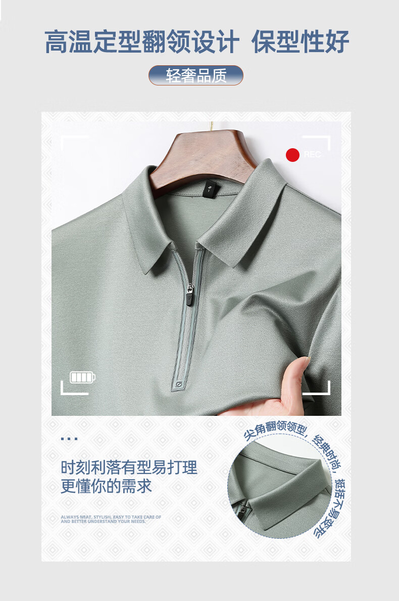 SHANSHAN杉杉【莱赛尔半拉链】短袖t恤男休闲百搭翻领POLO衫夏季新款 灰绿色 S /165