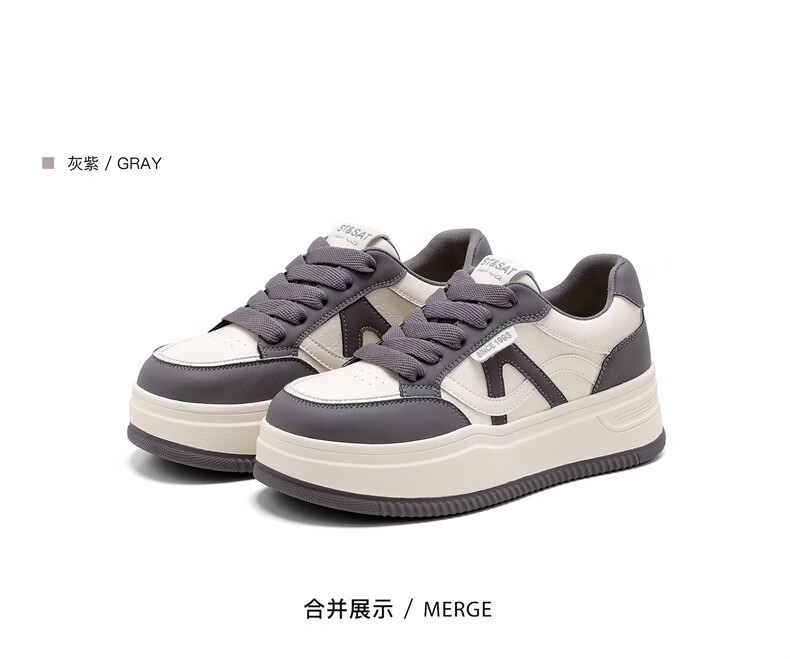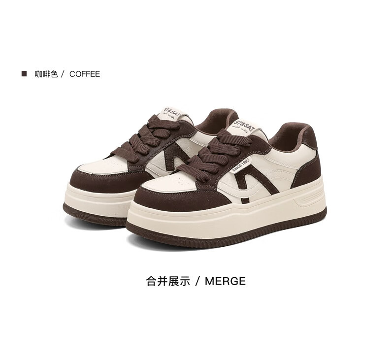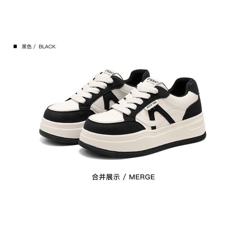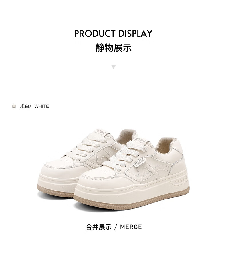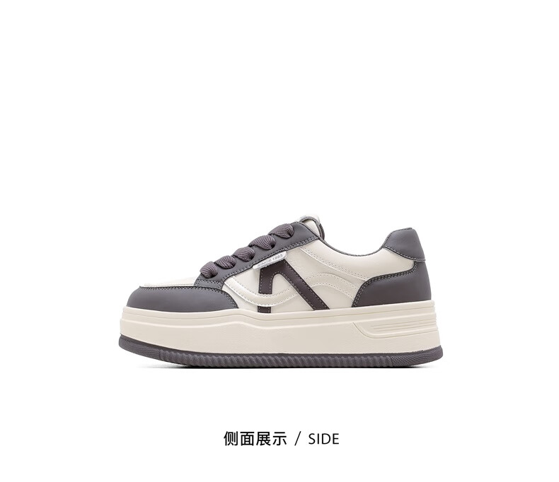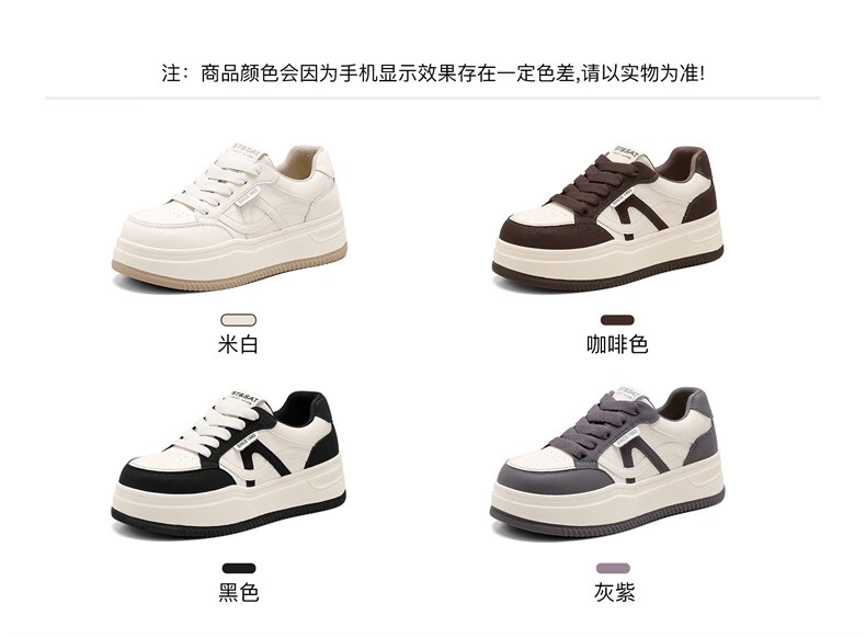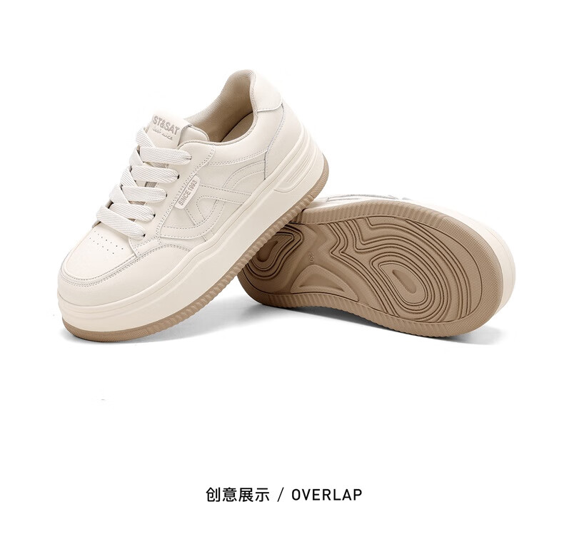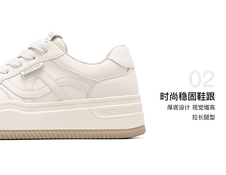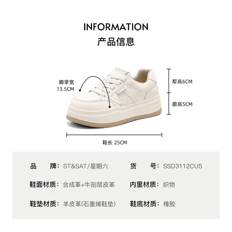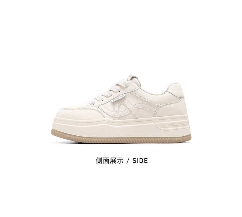 星期六小白鞋女款2025新款秋冬季厚底增高平底舒适休闲板鞋不累脚 米白色【增高5cm】 36