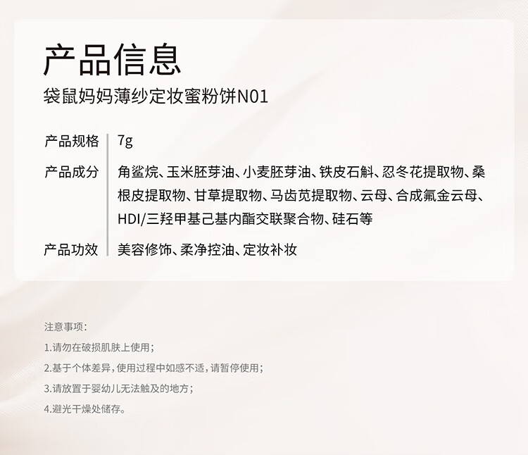 袋鼠妈妈准孕妇粉饼散粉柔焦控油定妆不拔干持久不脱妆薄纱定妆蜜粉饼N01