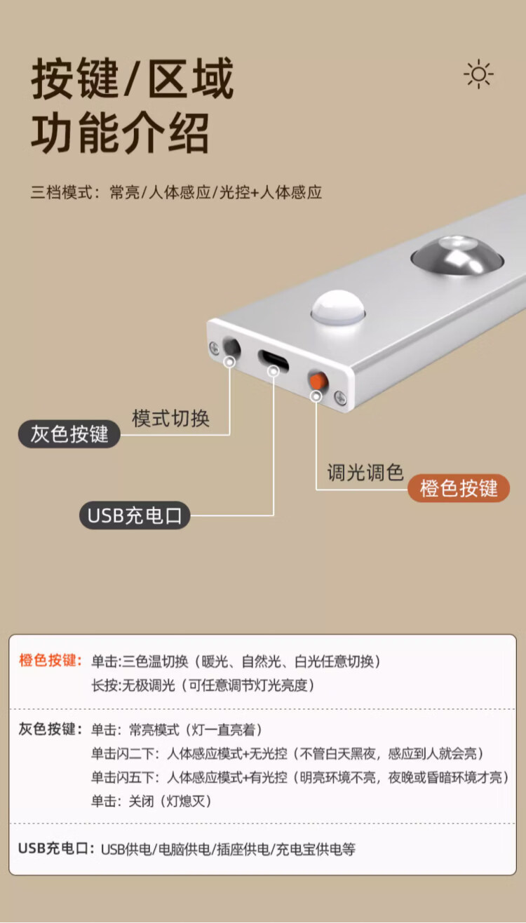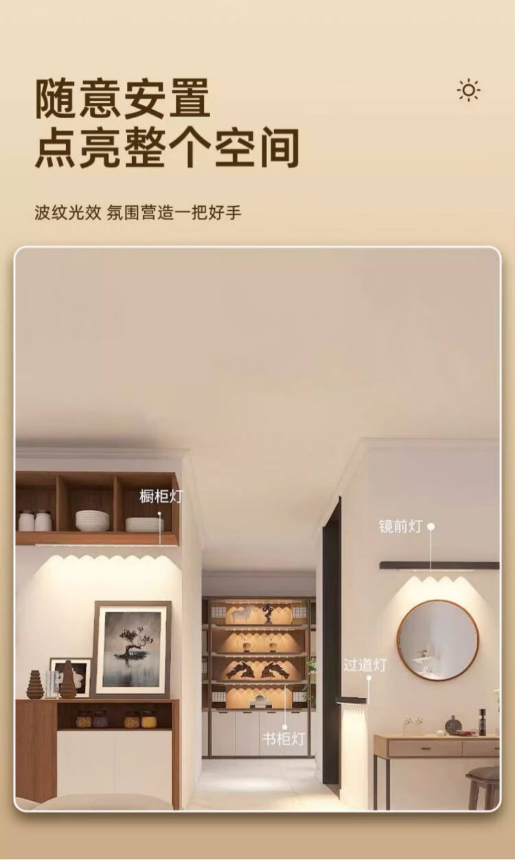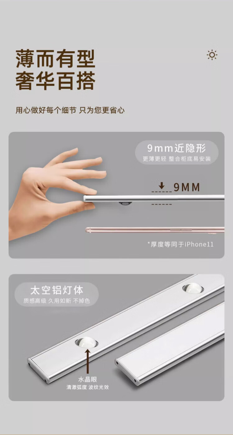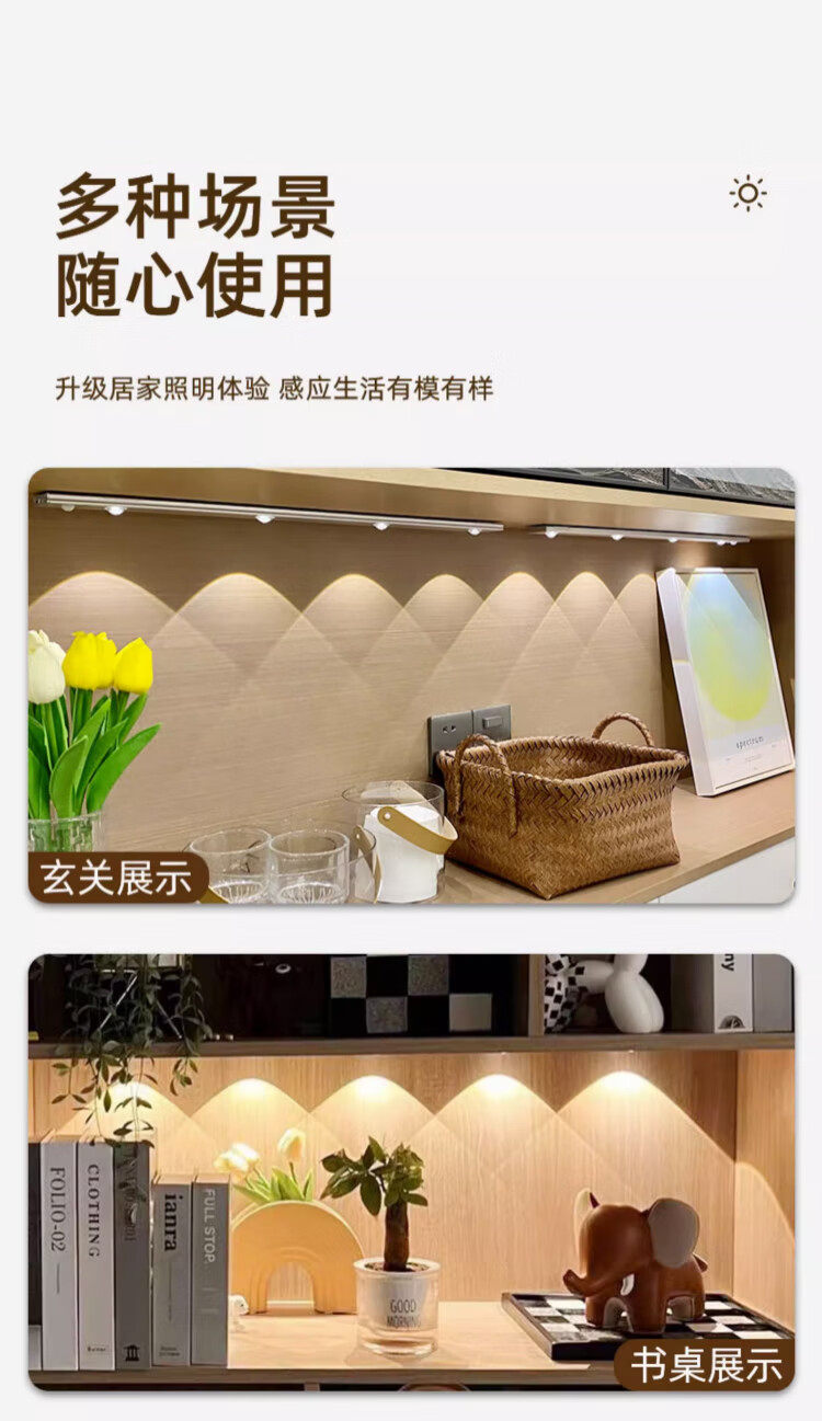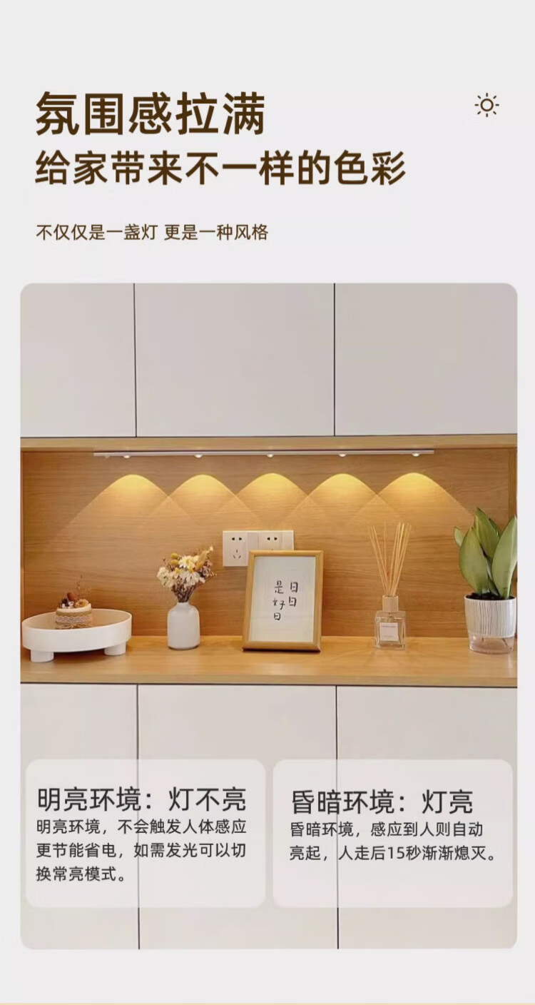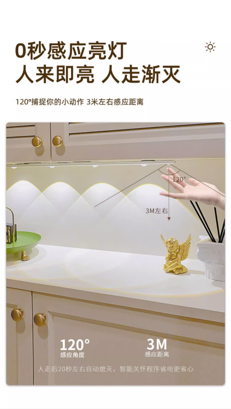 松潮(SONGCHAO)橱柜灯人体感应灯小夜灯衣柜酒柜猫眼玄关餐边柜灯带装饰氛围灯 猫眼灯配件 147cm人体感应+光敏+三色+光控