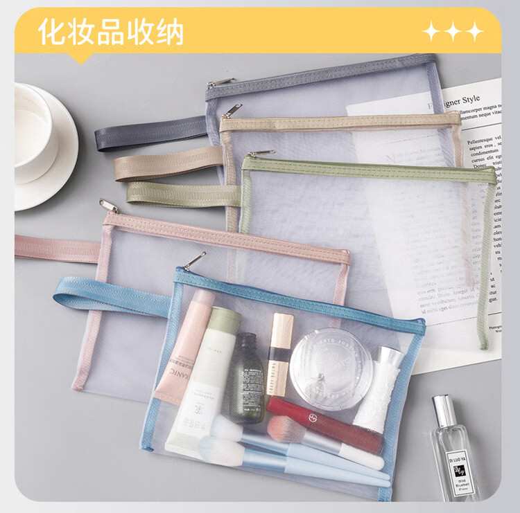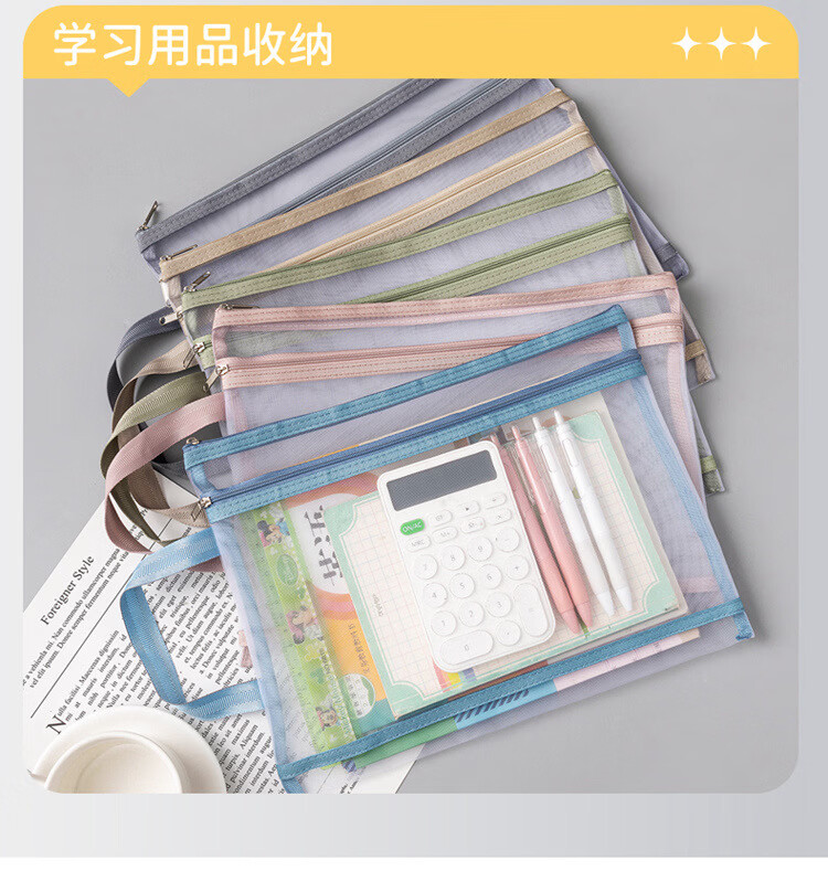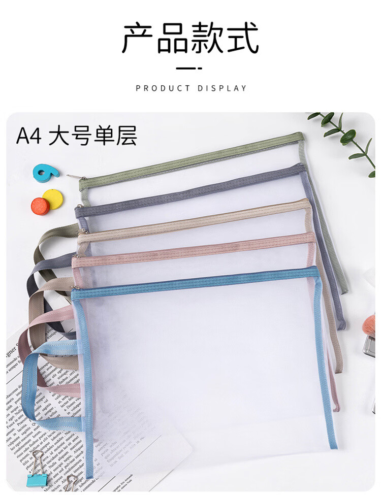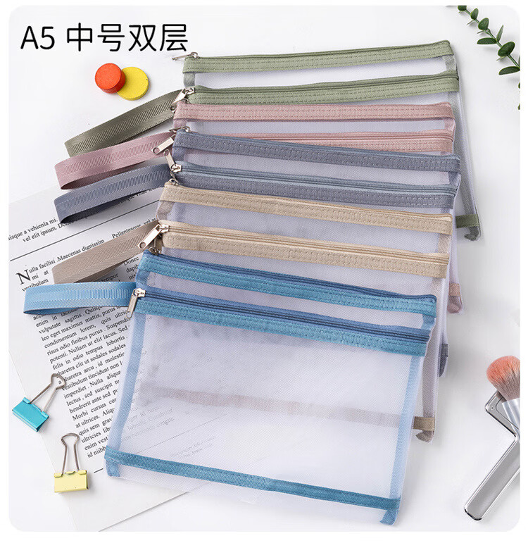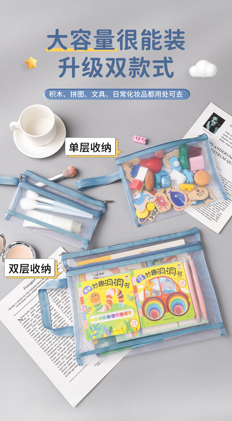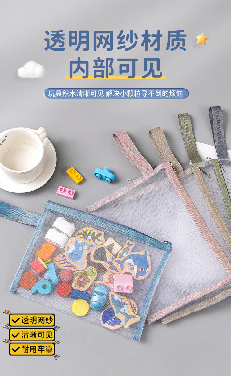 积木收纳袋拼图玩具分类整理神器网纱袋学生考试笔袋双层a4文件袋 A4单层5个
