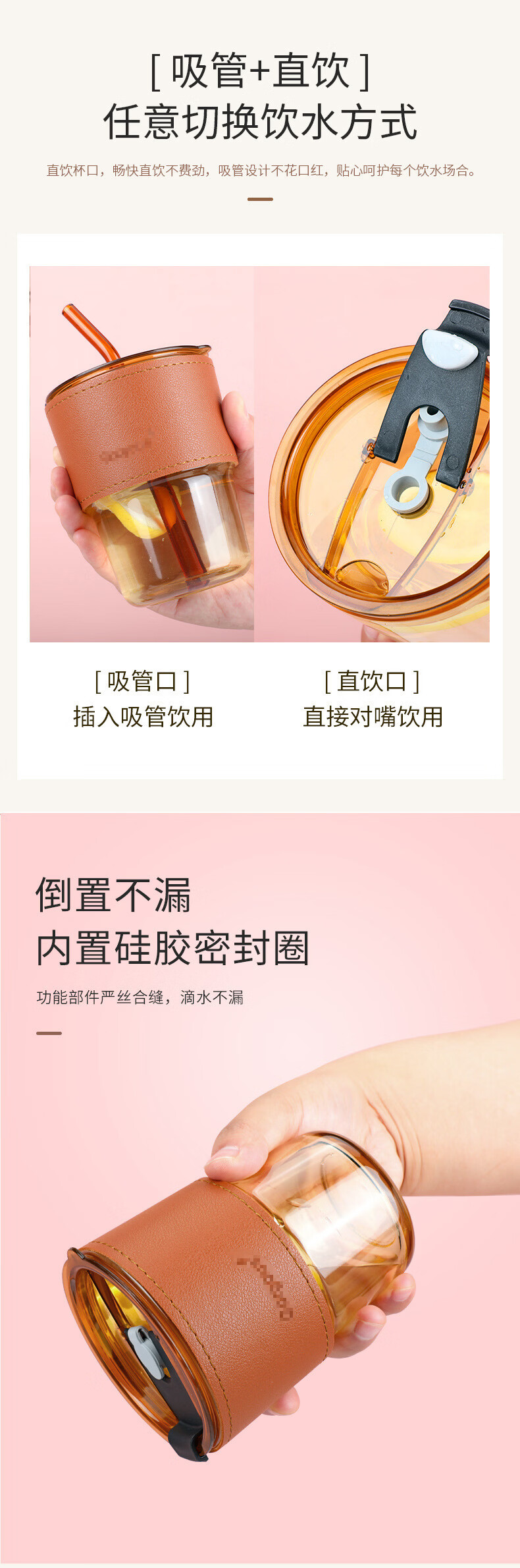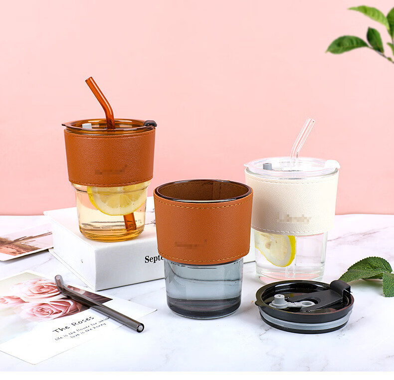 【厂家直发】竹节杯创意水杯家用玻璃杯办公室隔热吸管杯子ins风 竹节烟灰色(裸杯 约420ml