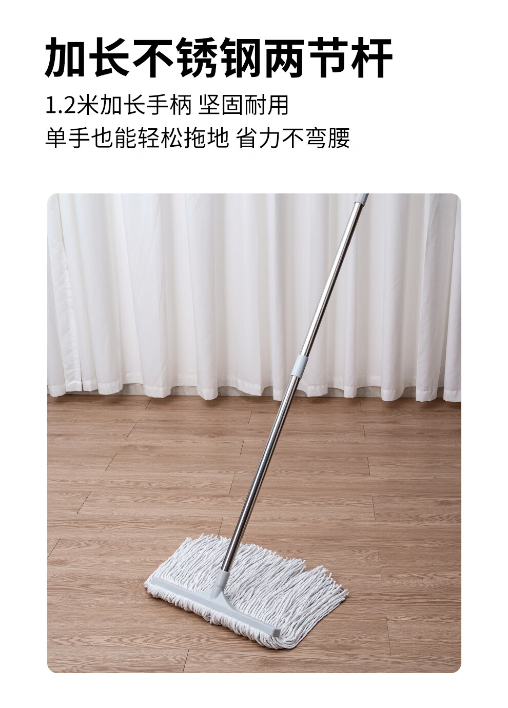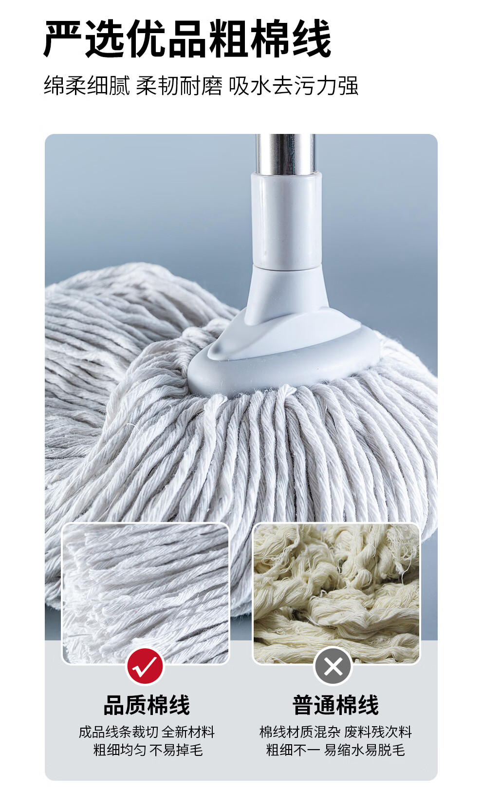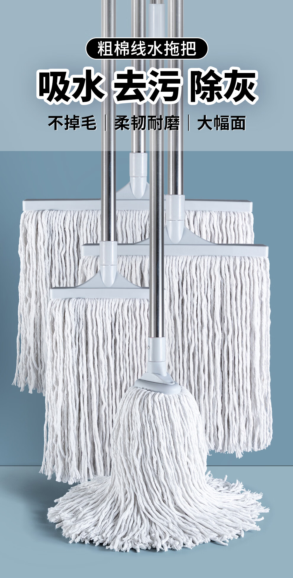 奕清良品加大棉线拖把老式墩布拖布头酒店办公室吸水拖把带桶免手洗拧水拖 【品牌尾货清仓】无纺布拖把(1杆2头)