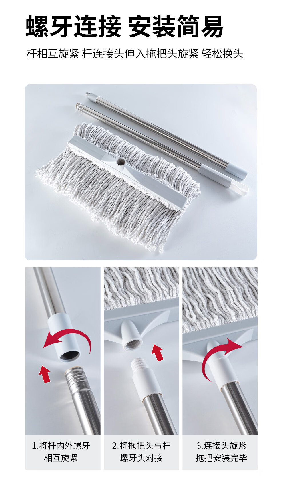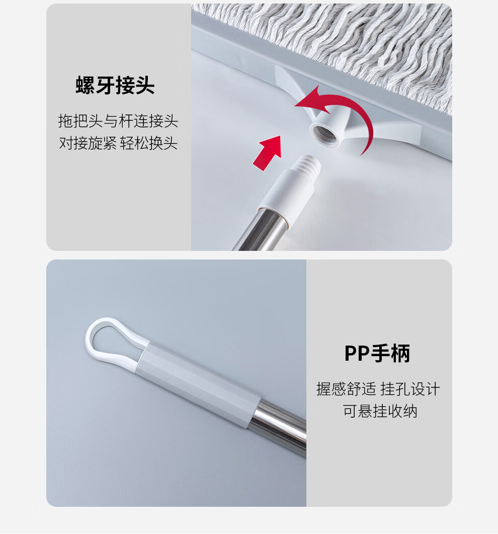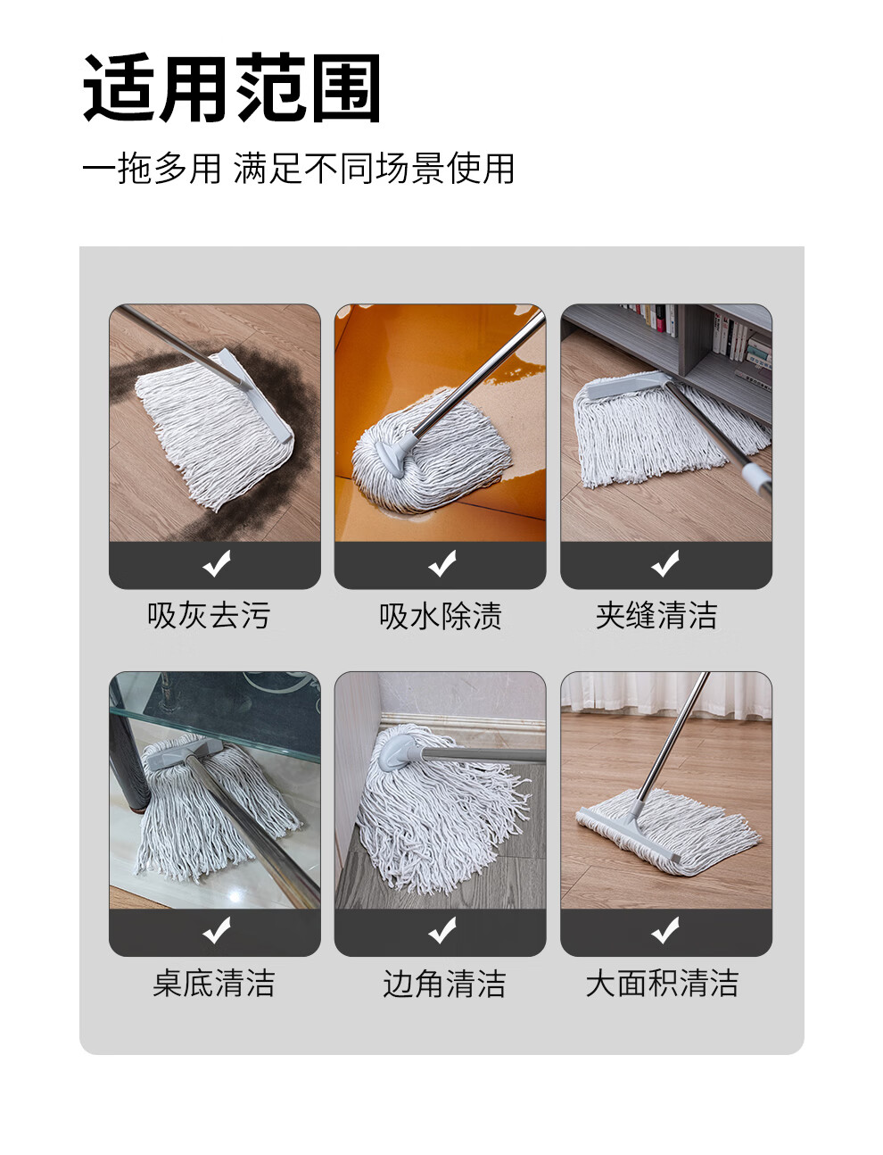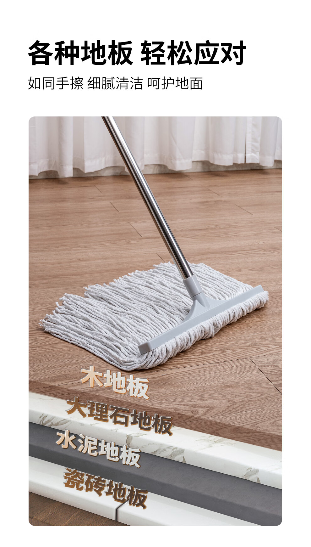 奕清良品加大棉线拖把老式墩布拖布头酒店办公室吸水拖把带桶免手洗拧水拖 【品牌尾货清仓】无纺布拖把(1杆2头)
