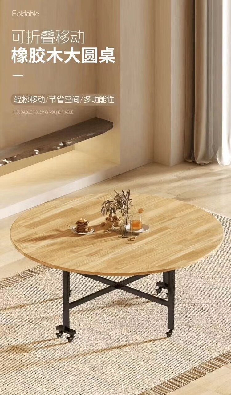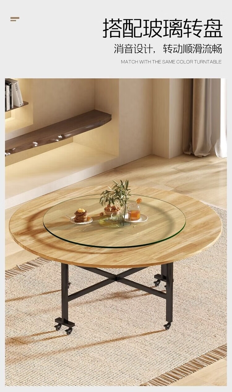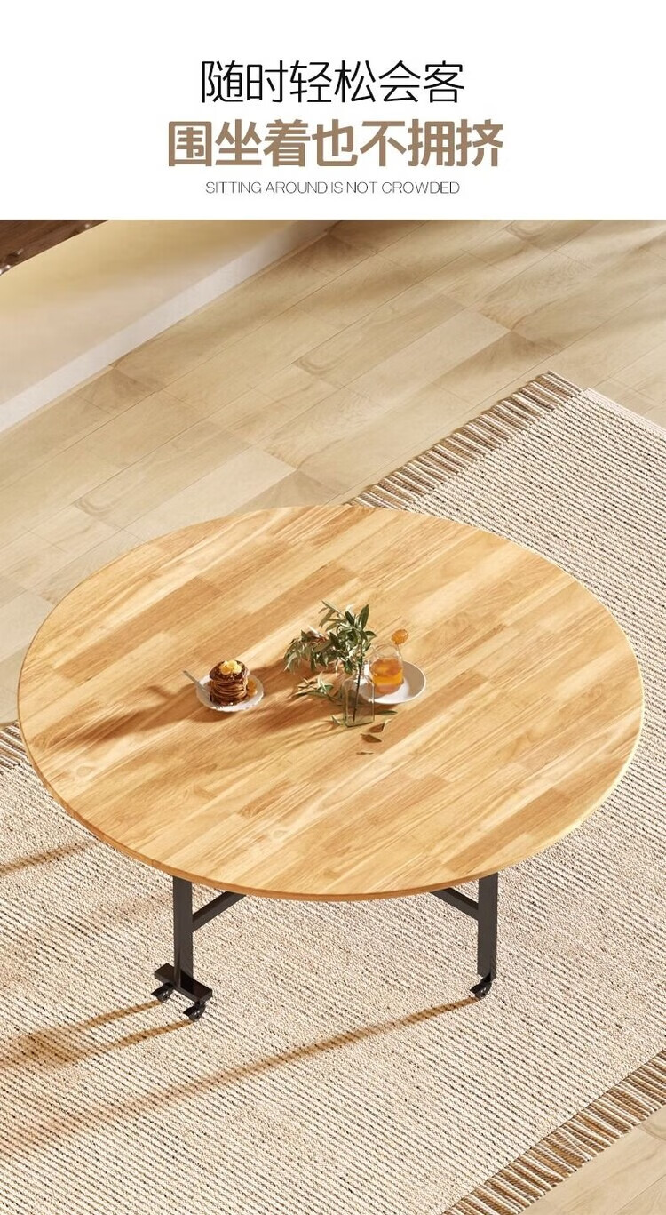 越灏实木折叠餐桌家用小户型新款简约吃饭圆桌子可折叠多功能移动饭桌 1.8米桌+1.2 转盘【14把圆凳】