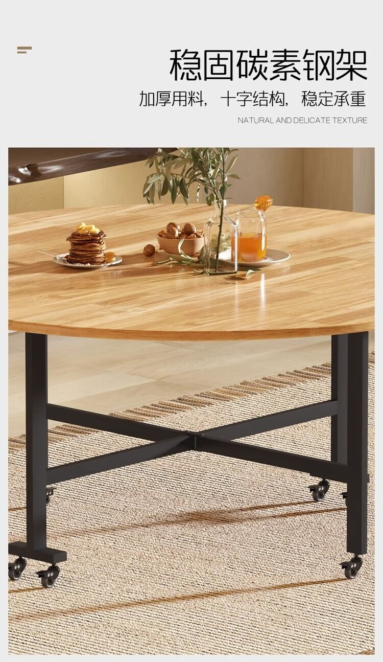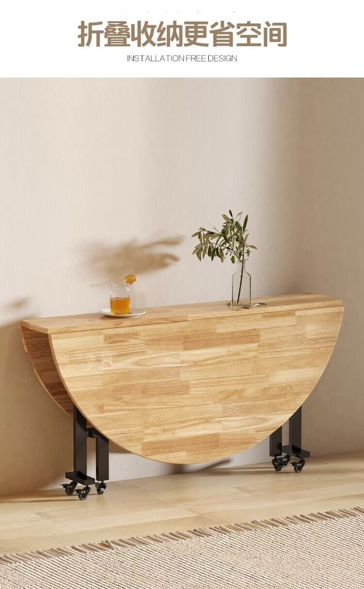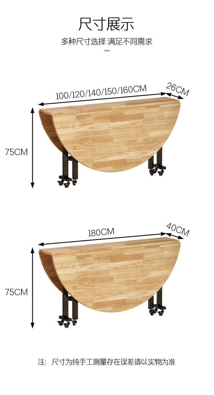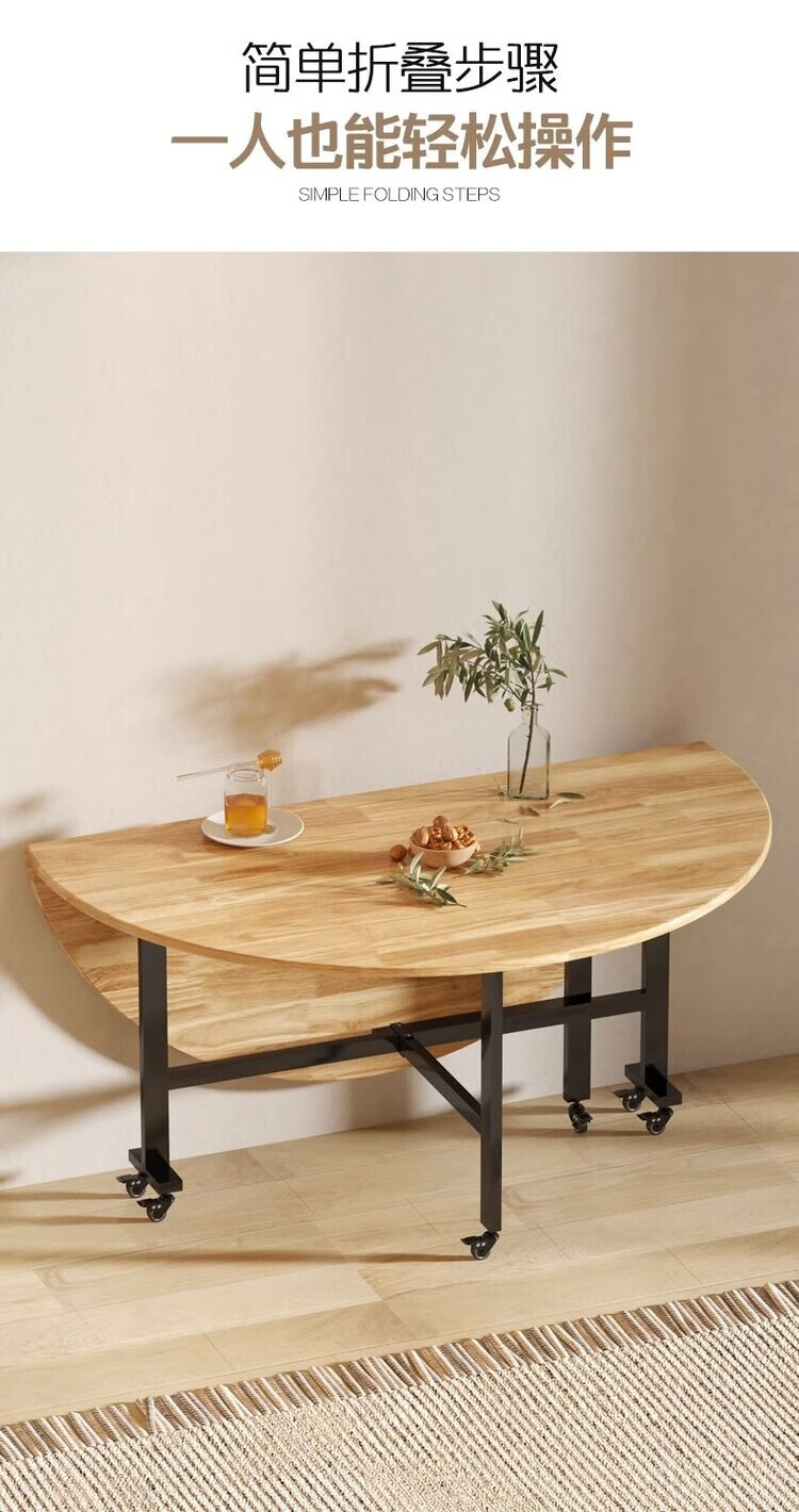 越灏实木折叠餐桌家用小户型新款简约吃饭圆桌子可折叠多功能移动饭桌 1.8米桌+1.2 转盘【14把圆凳】