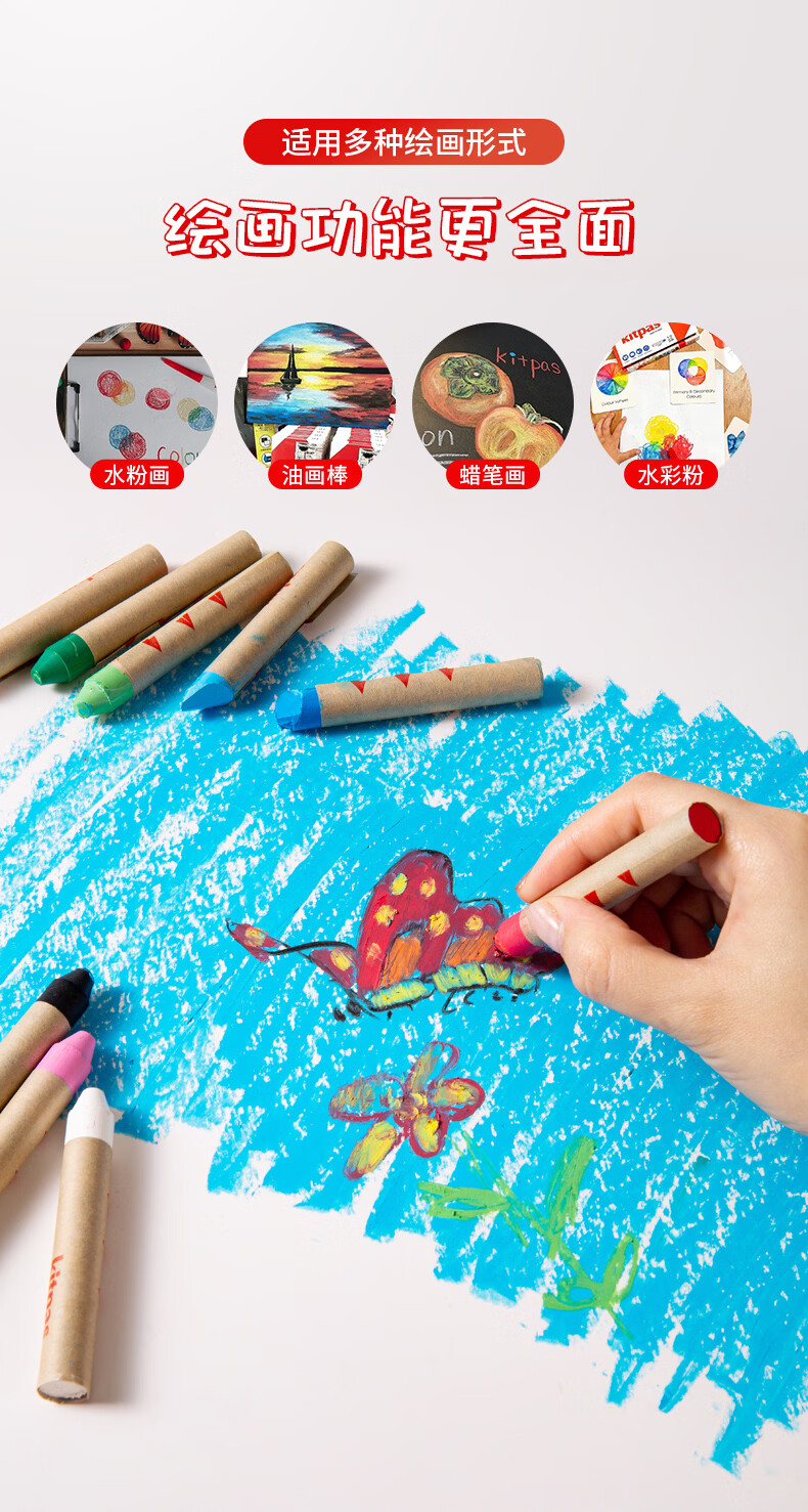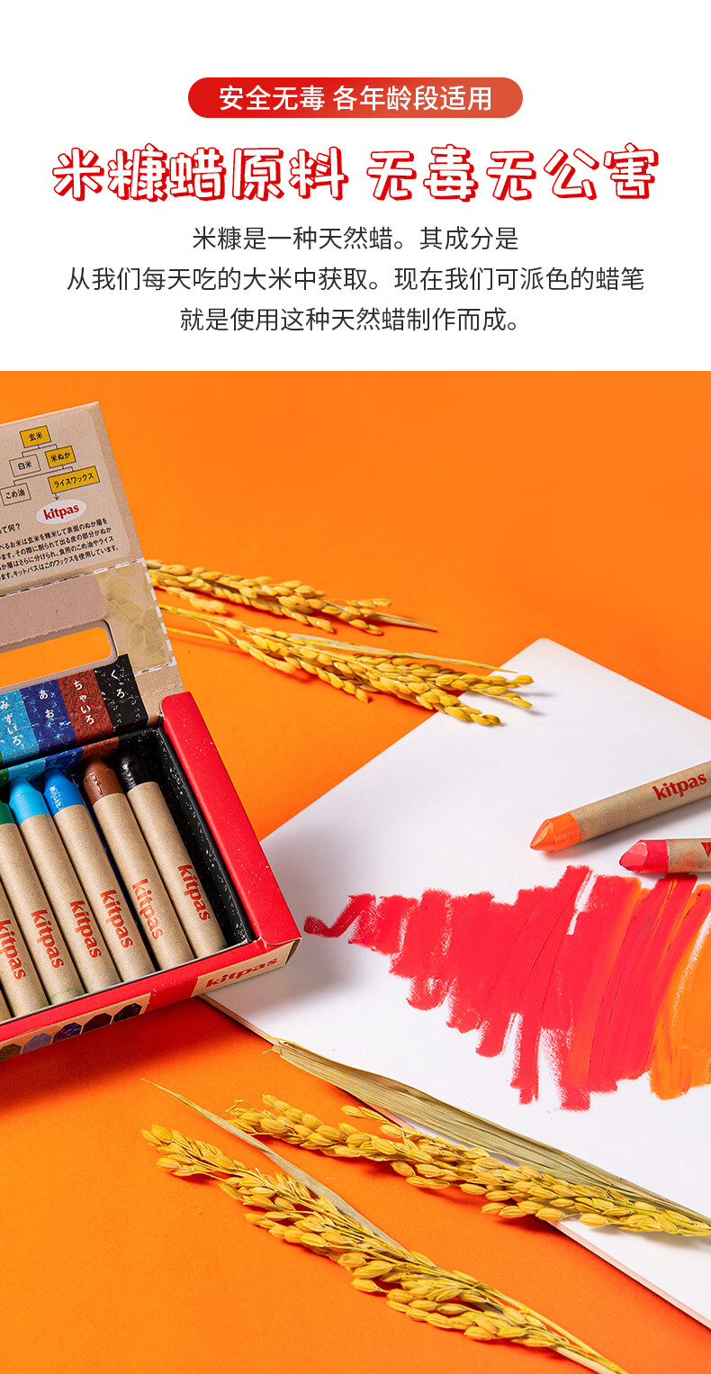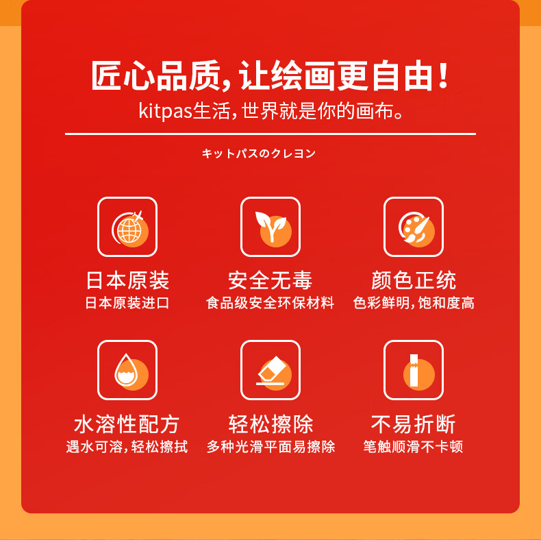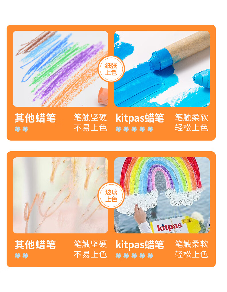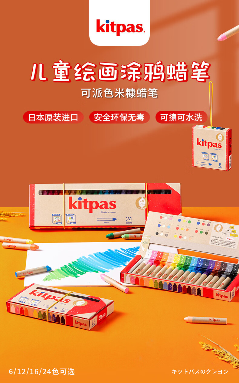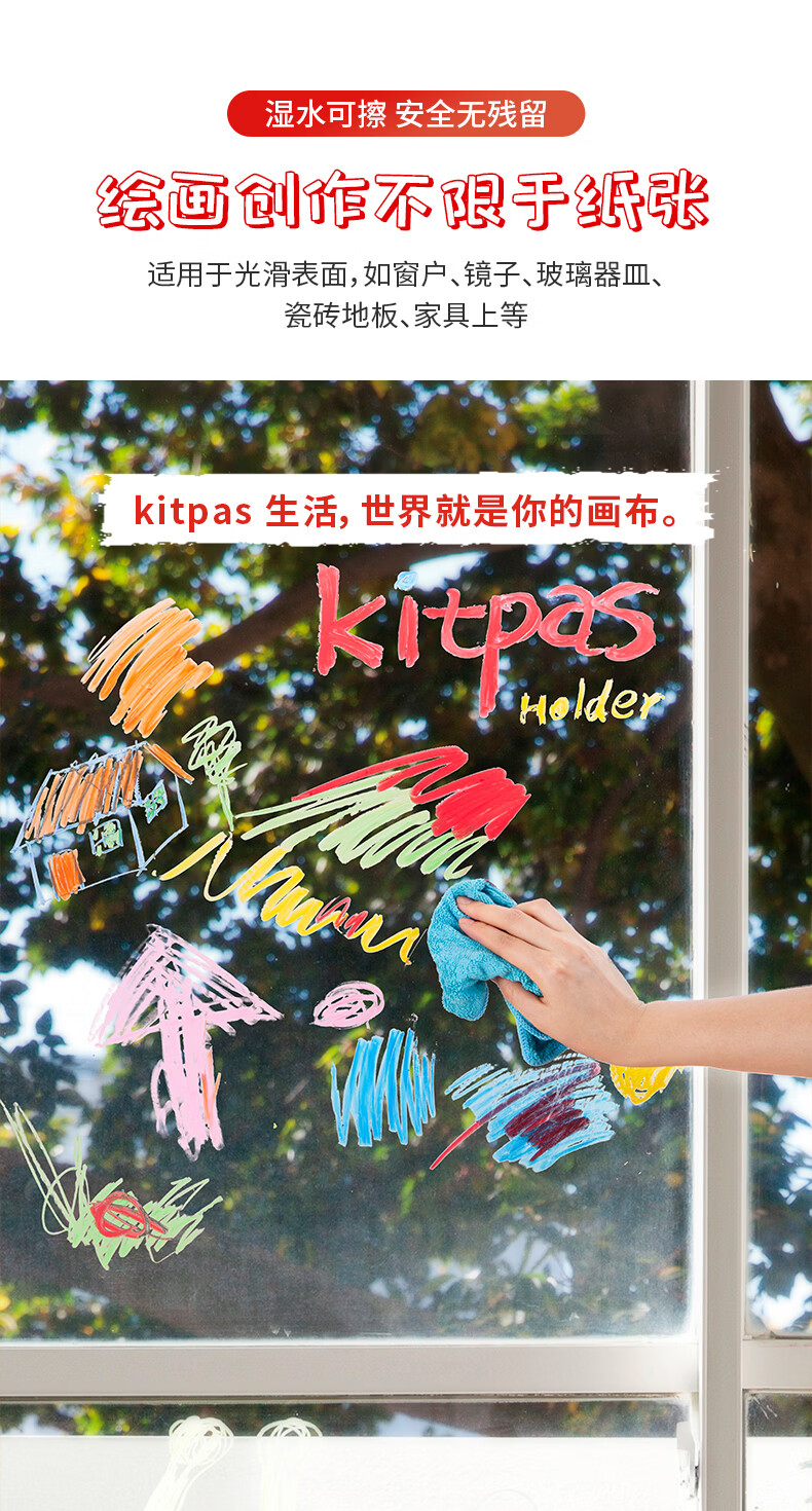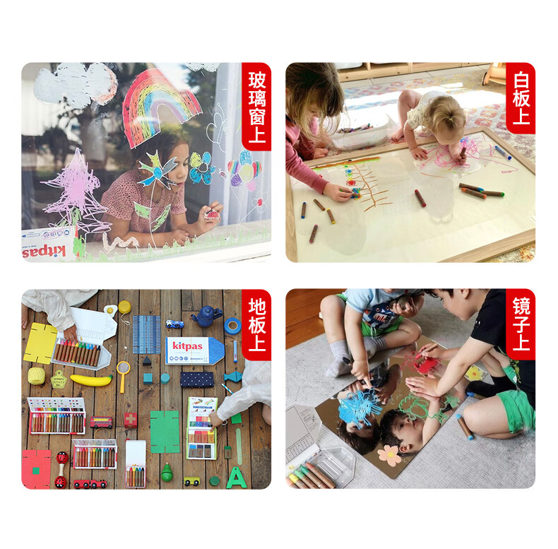 kitpas日本可派色米糠蜡笔安全无毒日本文具大赏第1名儿童幼儿园专用 A4黑白双面画板