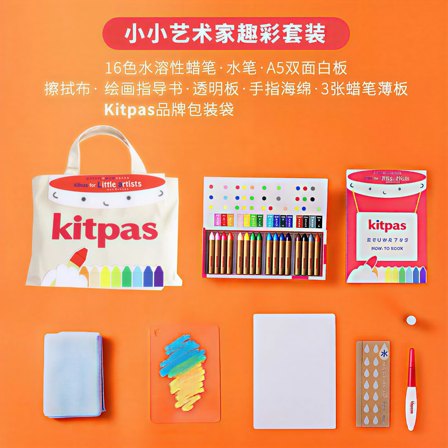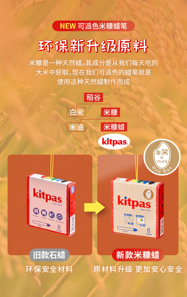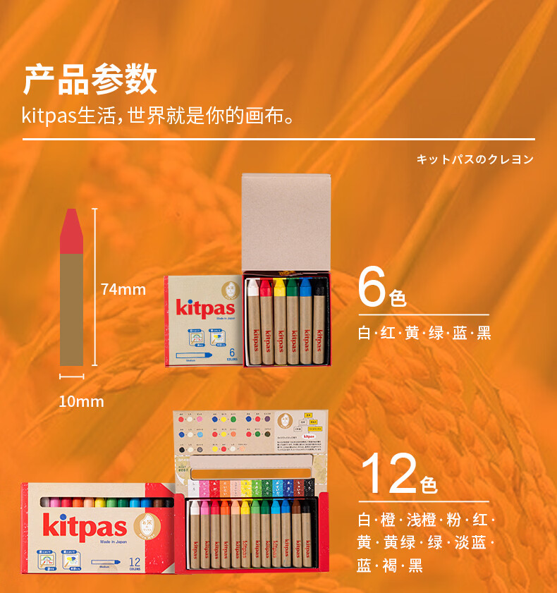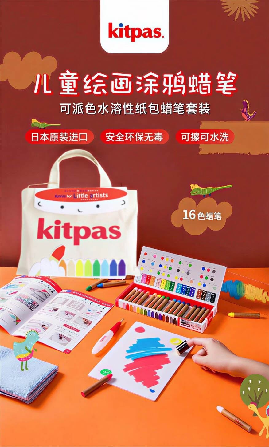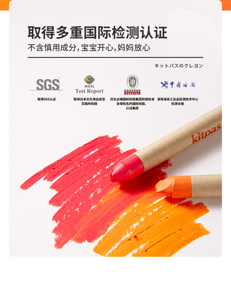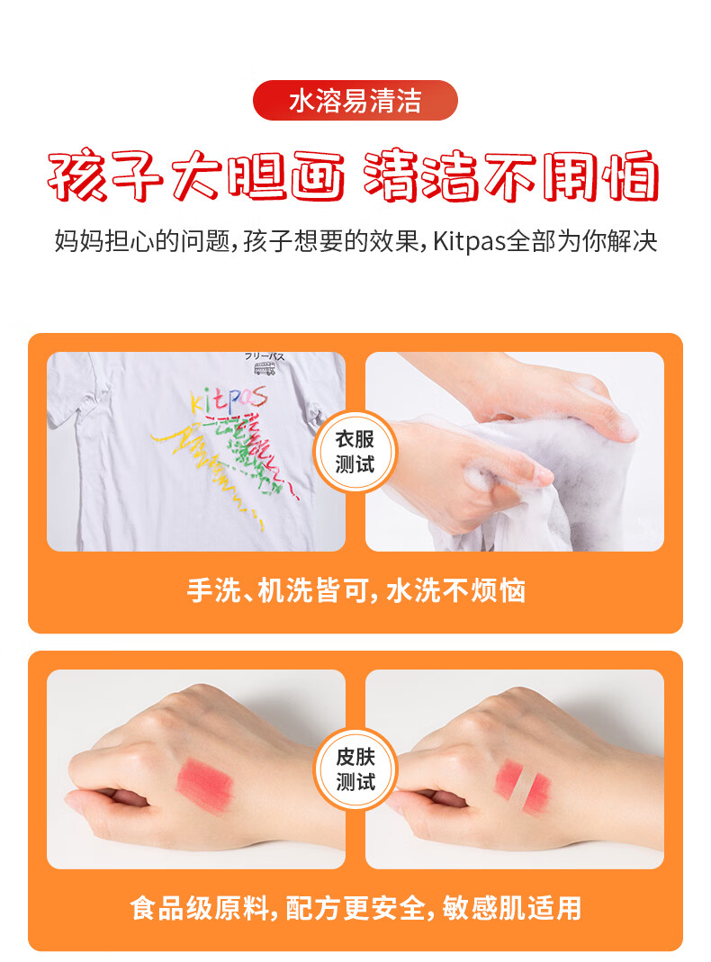 kitpas日本可派色米糠蜡笔安全无毒日本文具大赏第1名儿童幼儿园专用 A4黑白双面画板