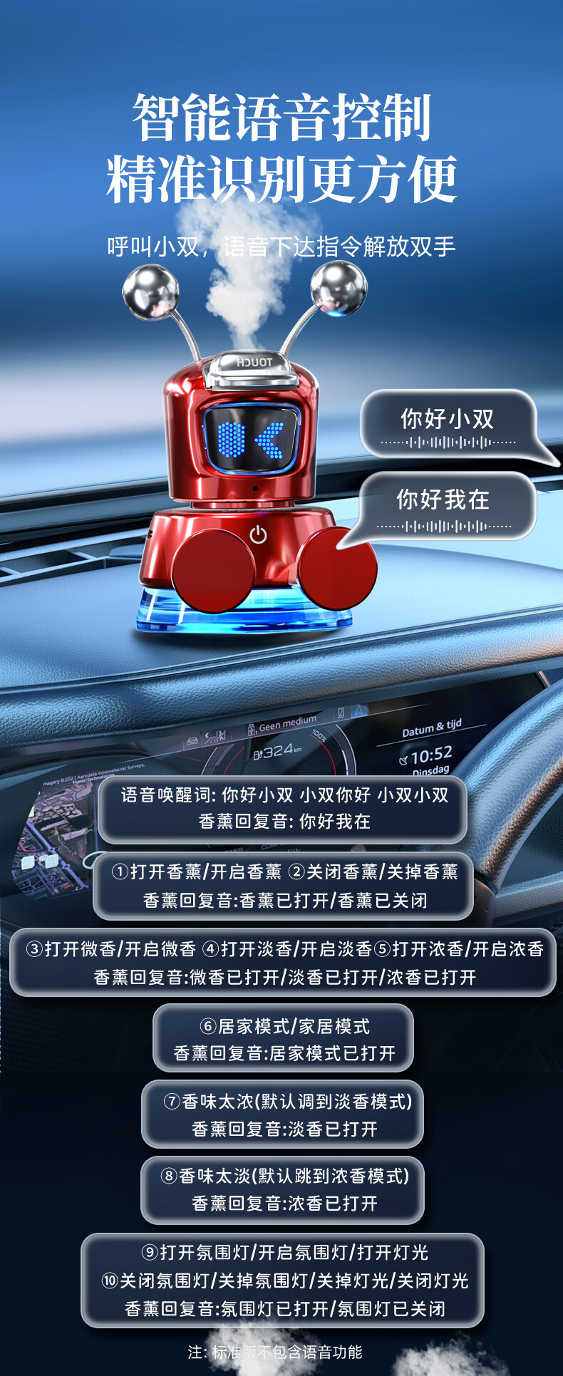 绿小双车载香薰机家用汽车香水除异味自动喷香氛机高档车载摆件生日礼物 AI智能声控炫酷黑【经典古龙】